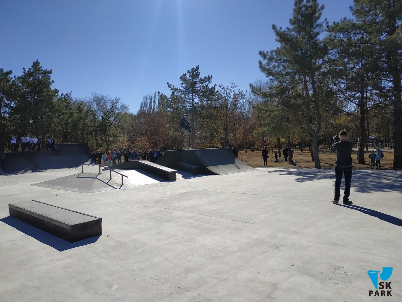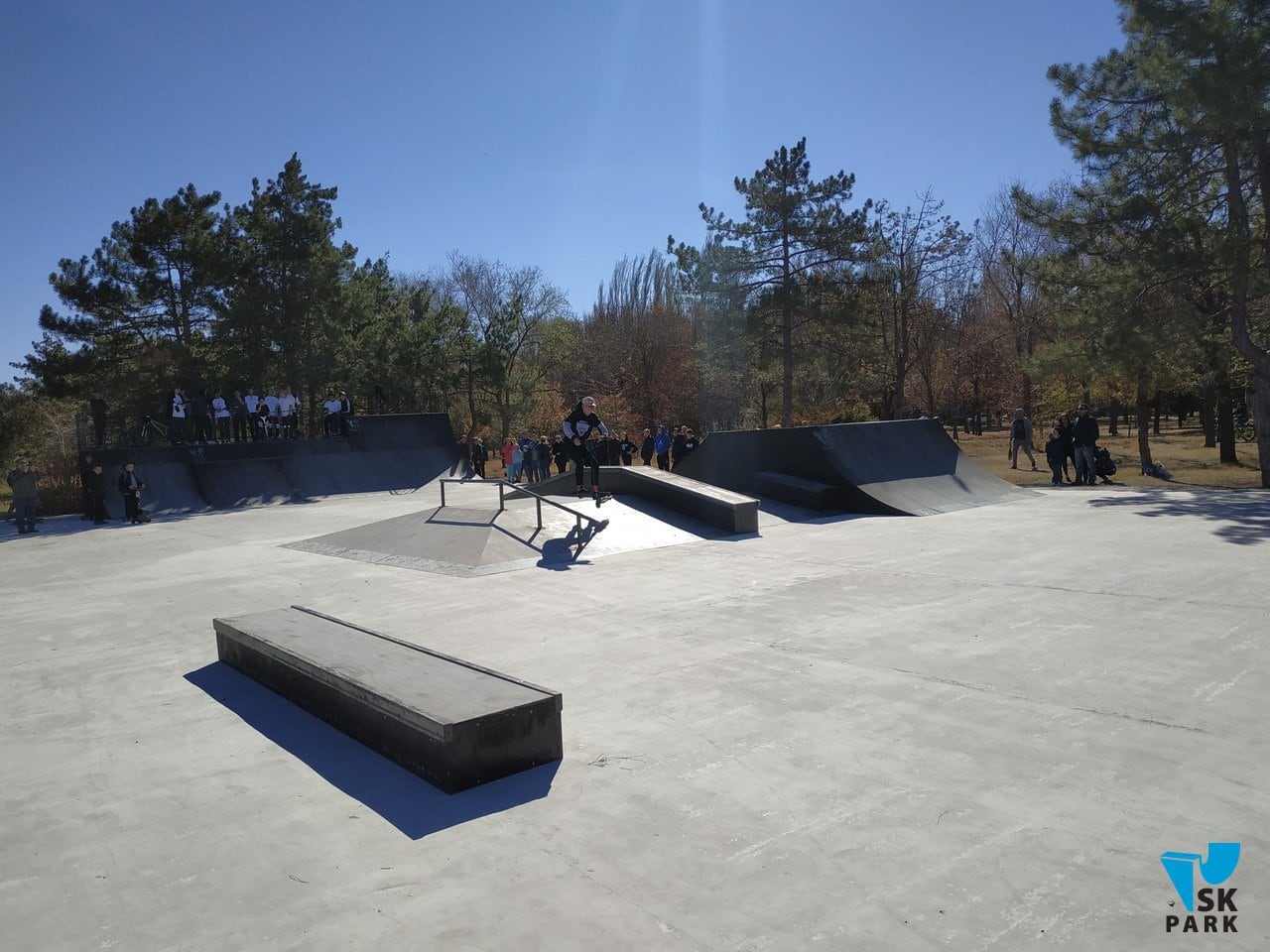 Новичкам скейт площадка придётся по вкусу: здесь есть оборудование для любых видов трюков: скольжения, прыжки, баланс. Скейтпарк довольно просторный и вместительный, что является явным плюсом для проведения соревнований и удобства зрителей (которых, кстати, собралось немало). Каждый участник мог использовать фигуры в соответствии с его навыками: за отведенное время можно было "обкатать" квотеры, фан-бокс с перилой и гранью, а также флэтовый граинд-бокс. Для любителей акробатики и полета был построен флай-бокс, где можно выполнять зрелищные трюки, зависнув в воздухе.