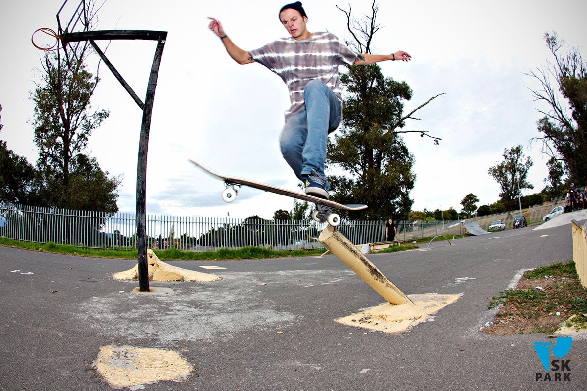 Пол-джем – это базовая фигура в скейт парке, повторяющая такой уличный элемент, как погнутый заградительный столб.