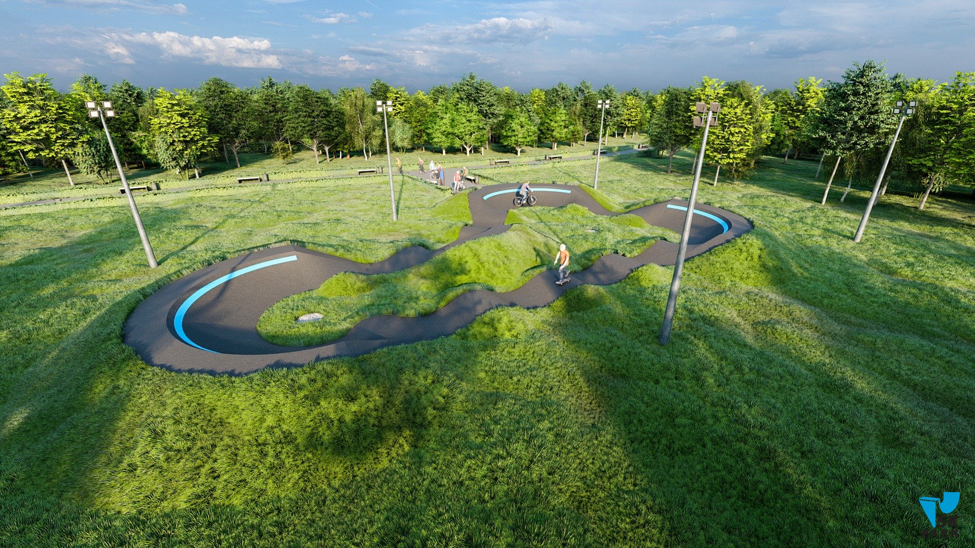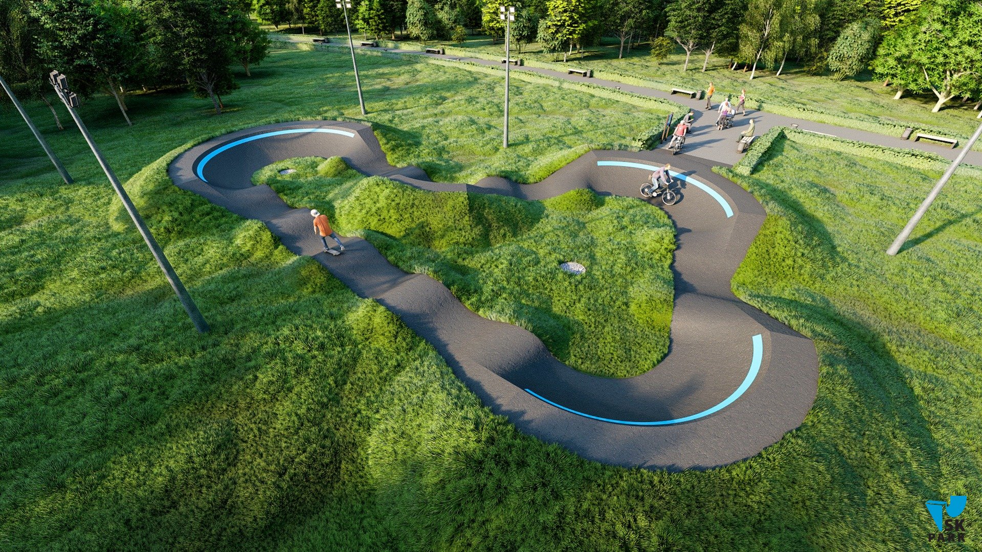 Профессиональный асфальтовый памптрек для катания на BMX и MTB , для райдеров с начальным, средним и профессиональным уровнем катания. Подходит для любого уровня райдеров, а также для тренировки спортсменов в олимпийской дисциплине «BMX race». Памптрек предусматривает 1 поворот на 180 градусов, 1 поворот на 115 градусов, 1 поворот на 110 градусов и 1 поворот на 45 градусов. Трасса позволяет проводить соревнования и показательные выступления в олимпийской дисциплине «BMX RACE». Асфальтовый памп трек, также позволяет кататься в дисциплинах скейтбординг, ролики, кик скутер