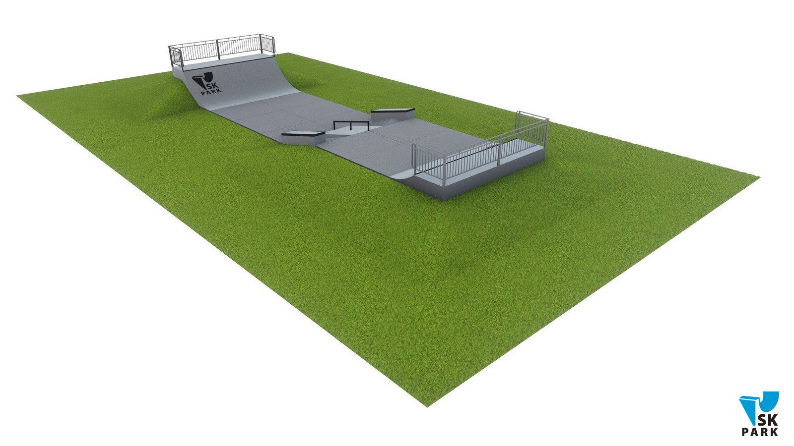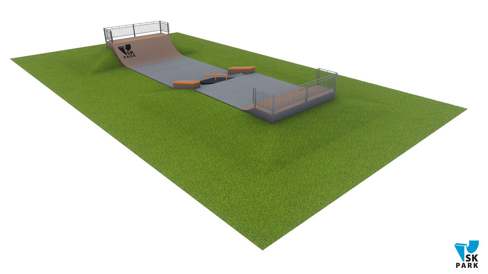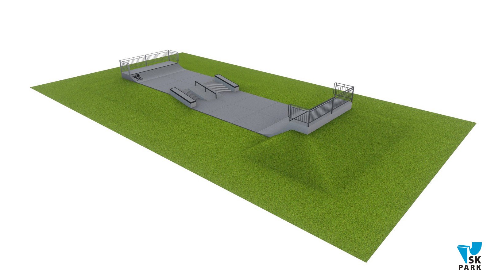 Данный проект бетонного скейт-парка ориентирован для катания на скейтборде, роликах, кик скутере для райдеров с начинающим уровнем. Площадка подойдет как для первых тренировок: обучение езде, разворотам, съездам и заездам на радиусные и наклонные поверхности, а также и для изучения базовых трюков – скольжений по перилам и парапетам (трюки из дисциплины «скейтбординг стрит»), и обучаться делать вылеты в радиусных разгонках (дисциплина «скейтбординг парк»).
