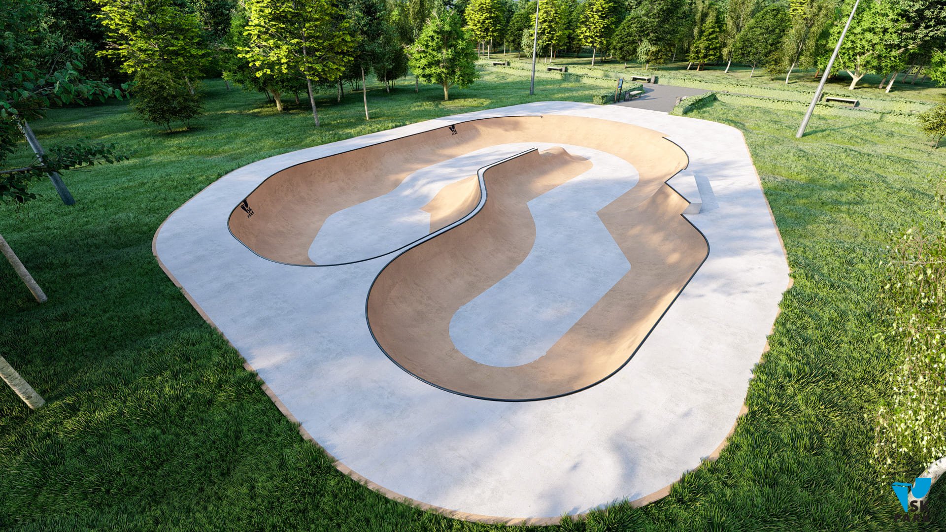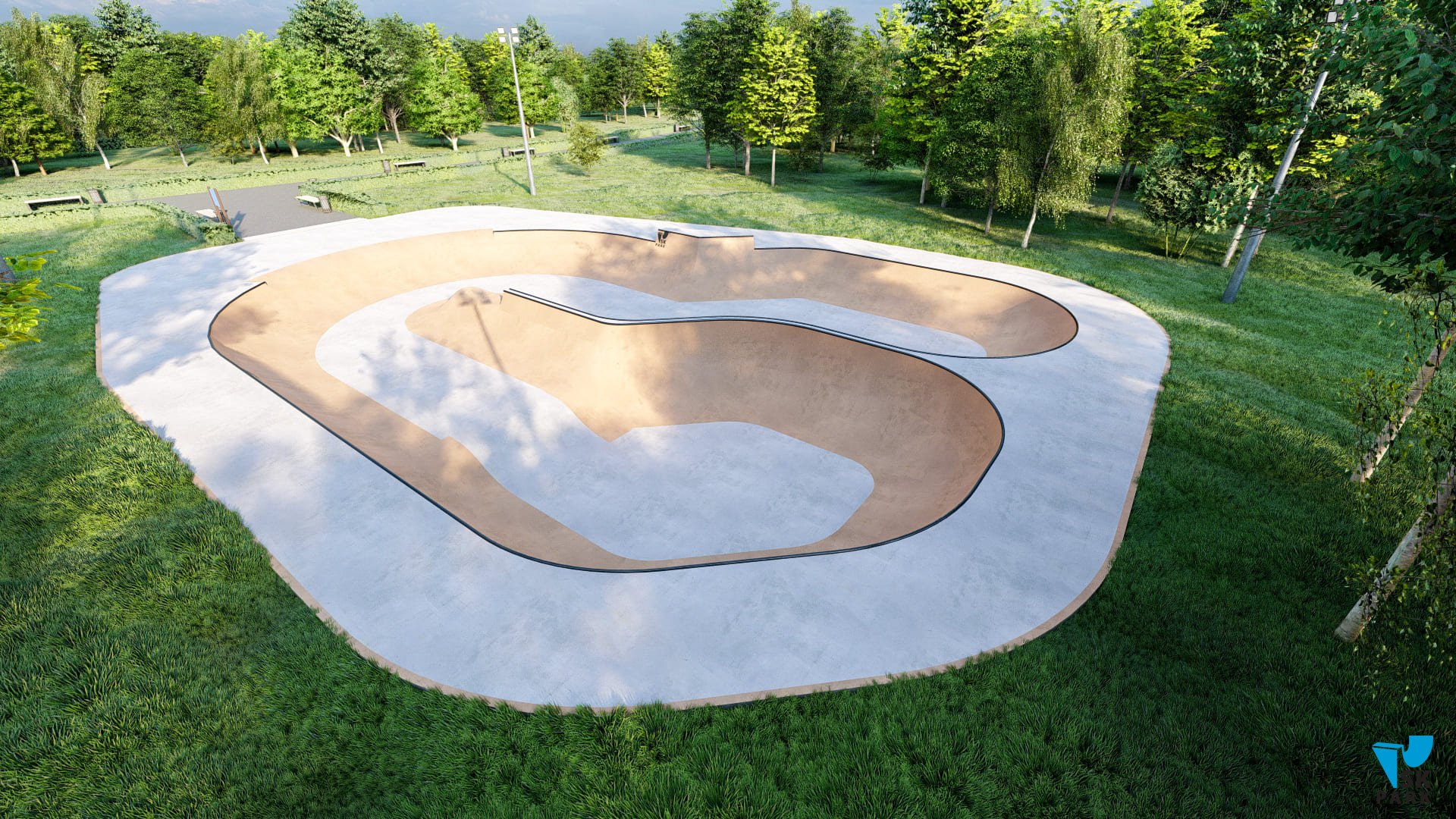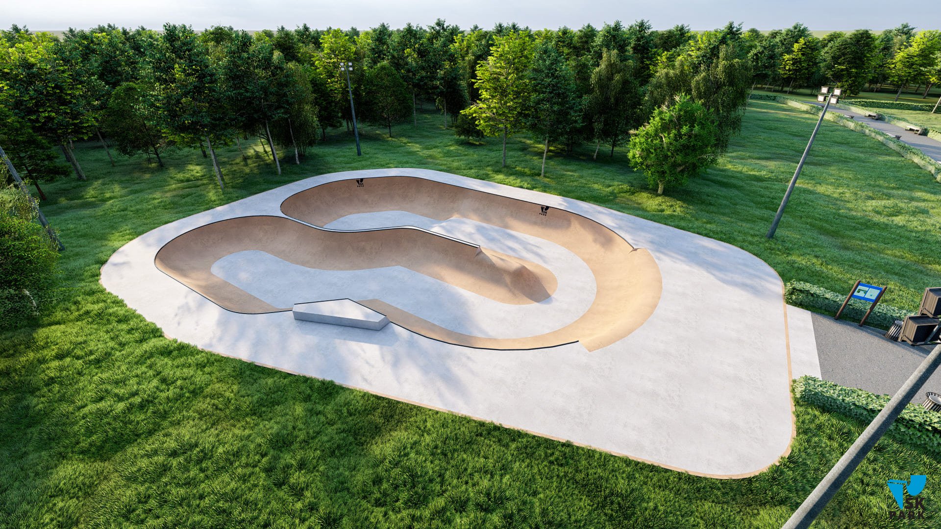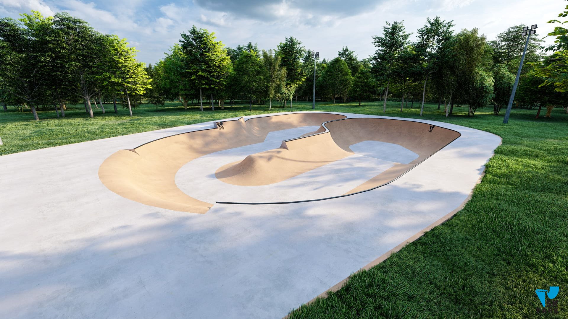 Боул имеет множество изгибов, которые помогут в катании спортсменам в дисциплине «Скейтбординг Парк» научиться набирать скорость и не сбавлять её во время проезда без дополнительных отталкиваний, выполнять «трансферные» прыжки из одной плоскости в другую, а также перелетать спайн.Боул имеет разную высоту, что позволяет разнообразить катание (выполнять скольжения и вылеты). Данная конструкция будет являться хорошим тренажером для райдеров олимпийской в дисциплине «Скейтбординг Парк». Также боул подойдёт начинающим экстремалам: развороты, езда по боулу, съезды и заезды в него – все эти базовые умения можно приобрести тренируясь в данном боуле. Также проектом предусмотрена такая конструкция как «ролл ин», позволяющая удобно заезжать в боул, что дает возможность набрать больше скорости. «Ролл ин», также служит и удобным выездом из боула.