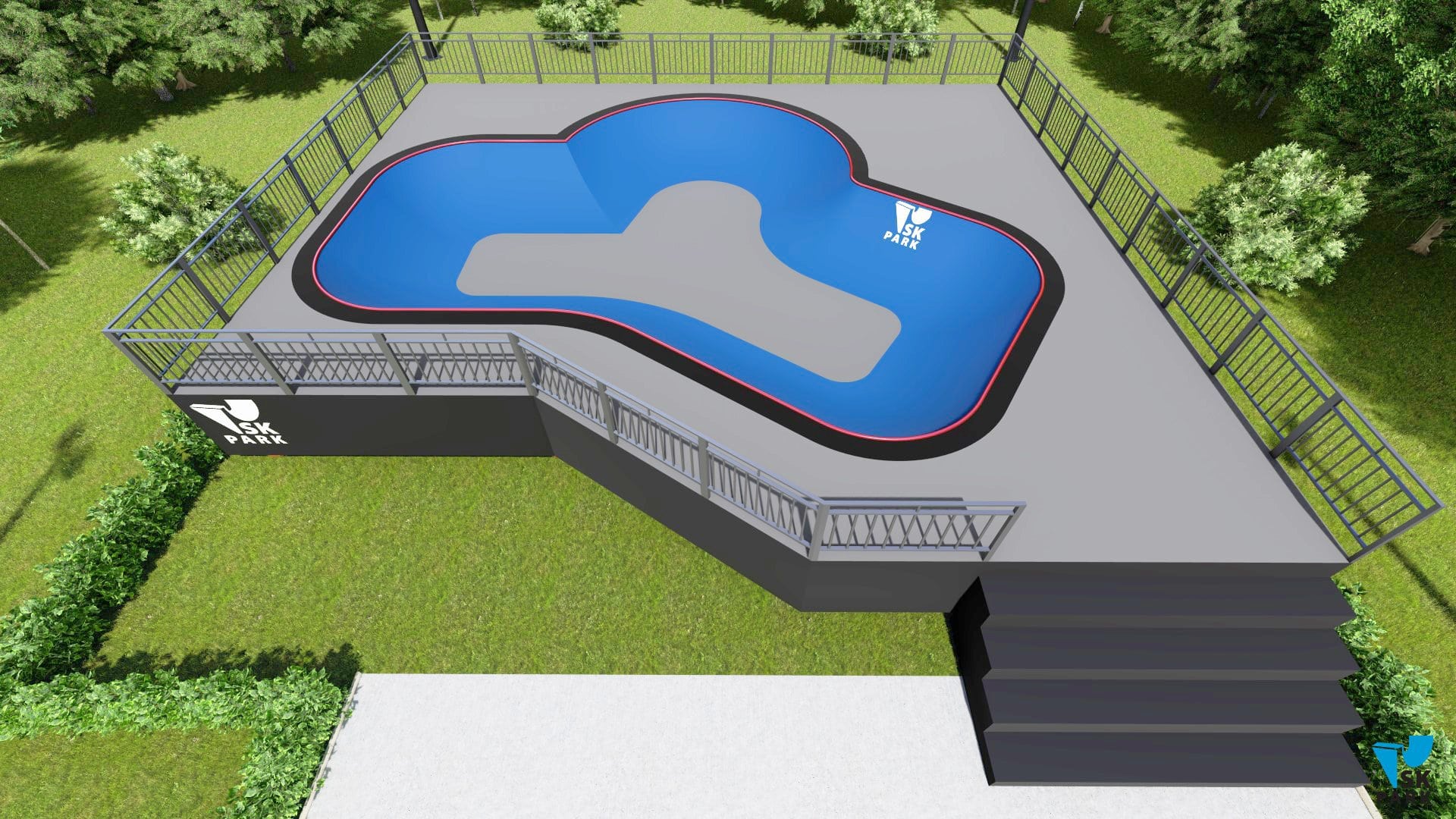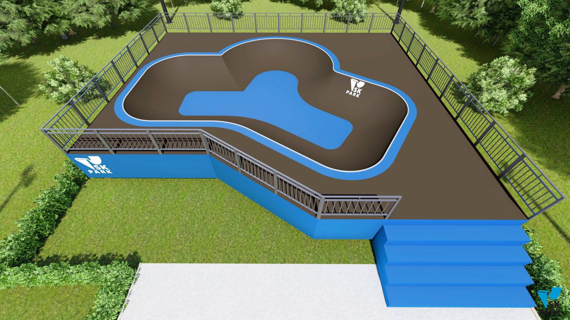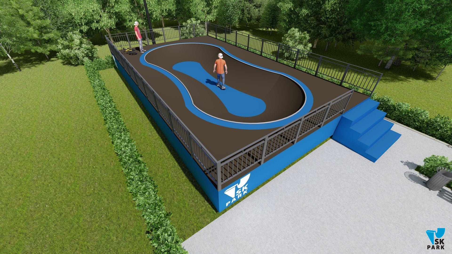 Проект боула ориентирован преимущественно для катания на скейтборде, для райдеров с начинающим и средним уровнем катания. В боуле предусмотрены 3 секции, что придает ему функциональность. Имеется возможность кататься по кругу и поперек, а также делать скольжения по коупингу, небольшие вылеты и трансферные прыжки. Оборудование для скейтпарка, также подойдет для катания на роликах, ВМХ и кик скутере. Проект пула полностью отвечает всем требованиям райдеров и подходит для тренировок спортсменов в олимпийской дисциплине «skateboarding». В данном боуле возможно проведение соревнований и показательных выступлений. Хорошее решение как в дополнении к другим фигурам в скейтпарке, а также как отдельно стоящий спортивный объект.