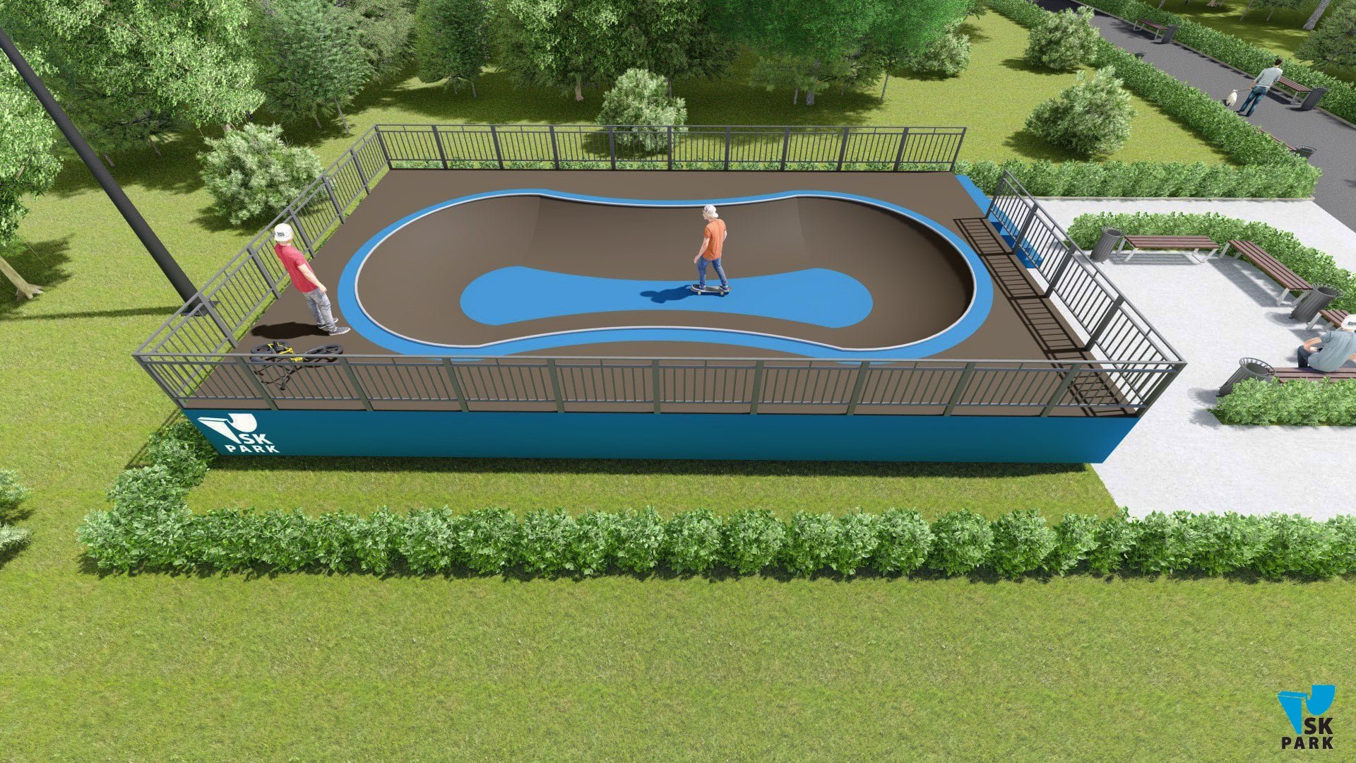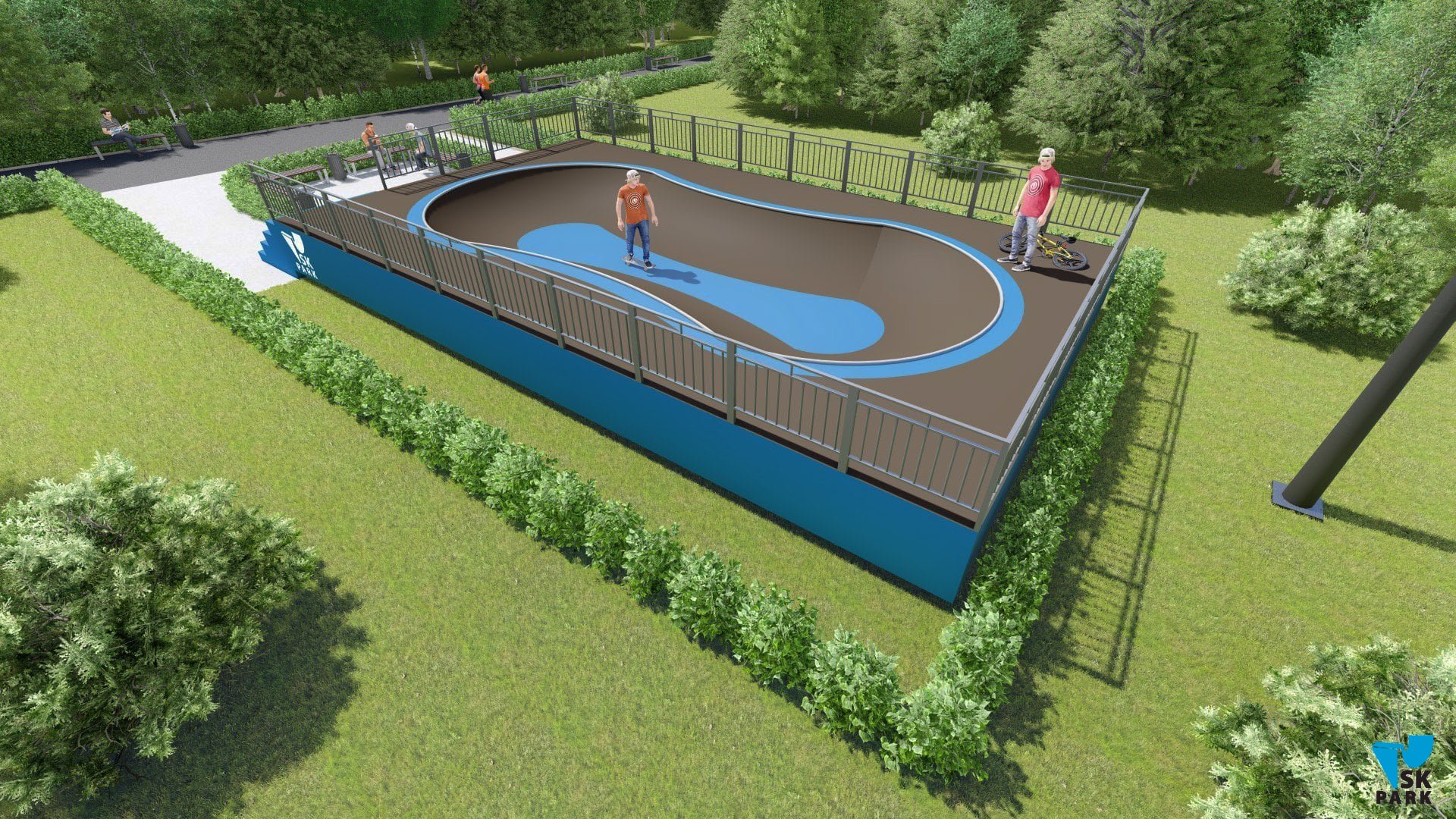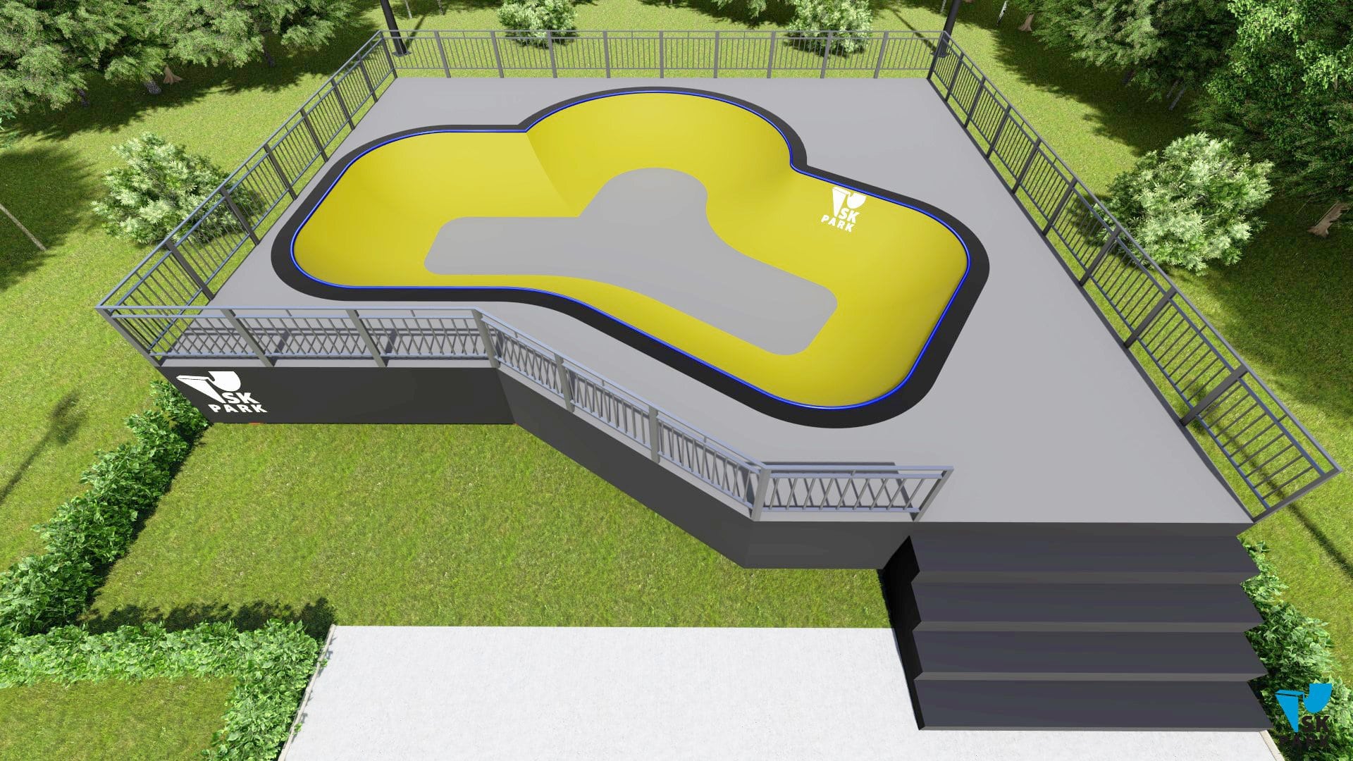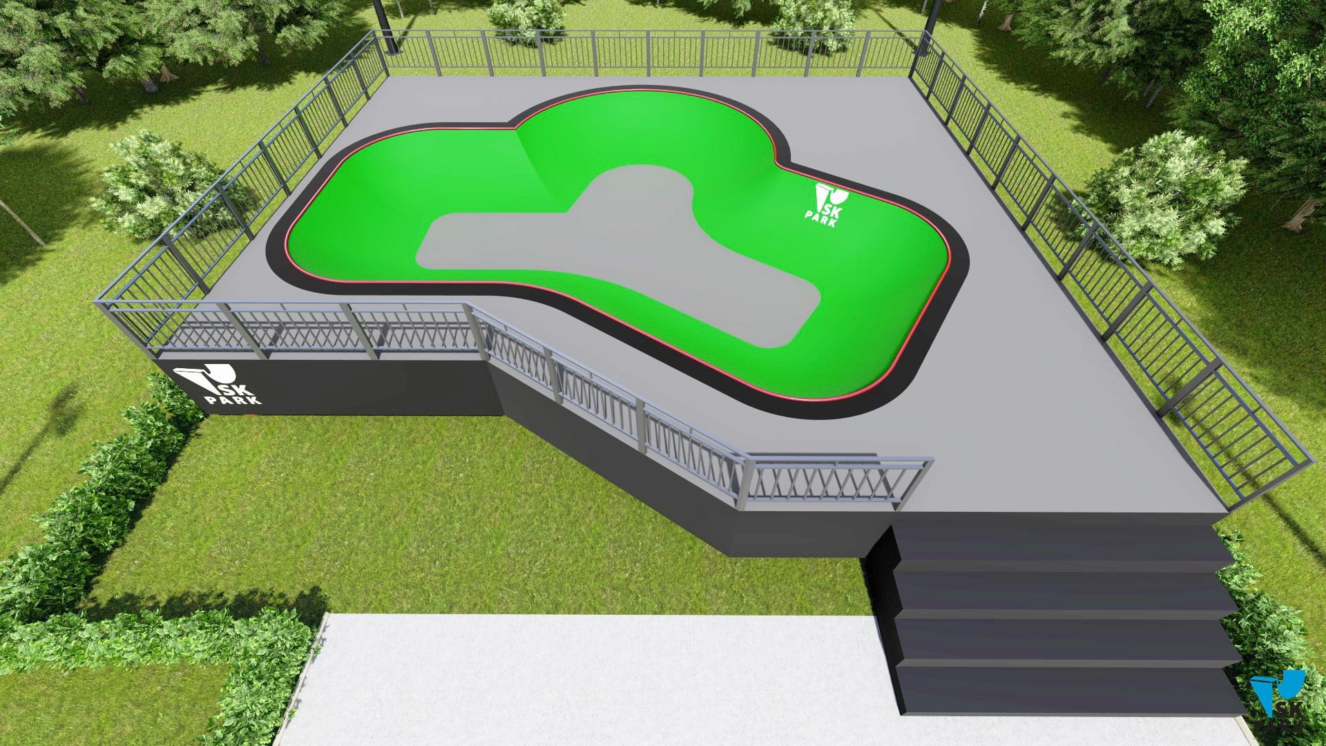 Проект боула ориентирован преимущественно для катания на скейтборде, для райдеров с начинающим и средним уровнем катания. В боуле предусмотрены 3 секции, что придает ему функциональность. Имеется возможность кататься по кругу и поперек, а также делать скольжения по коупингу, небольшие вылеты и трансферные прыжки. Оборудование для скейтпарка, также подойдет для катания на роликах, ВМХ и кик скутере. Проект пула полностью отвечает всем требованиям райдеров и подходит для тренировок спортсменов в олимпийской дисциплине «skateboarding». В данном боуле возможно проведение соревнований и показательных выступлений. Хорошее решение как в дополнении к другим фигурам в скейтпарке, а также как отдельно стоящий спортивный объект.