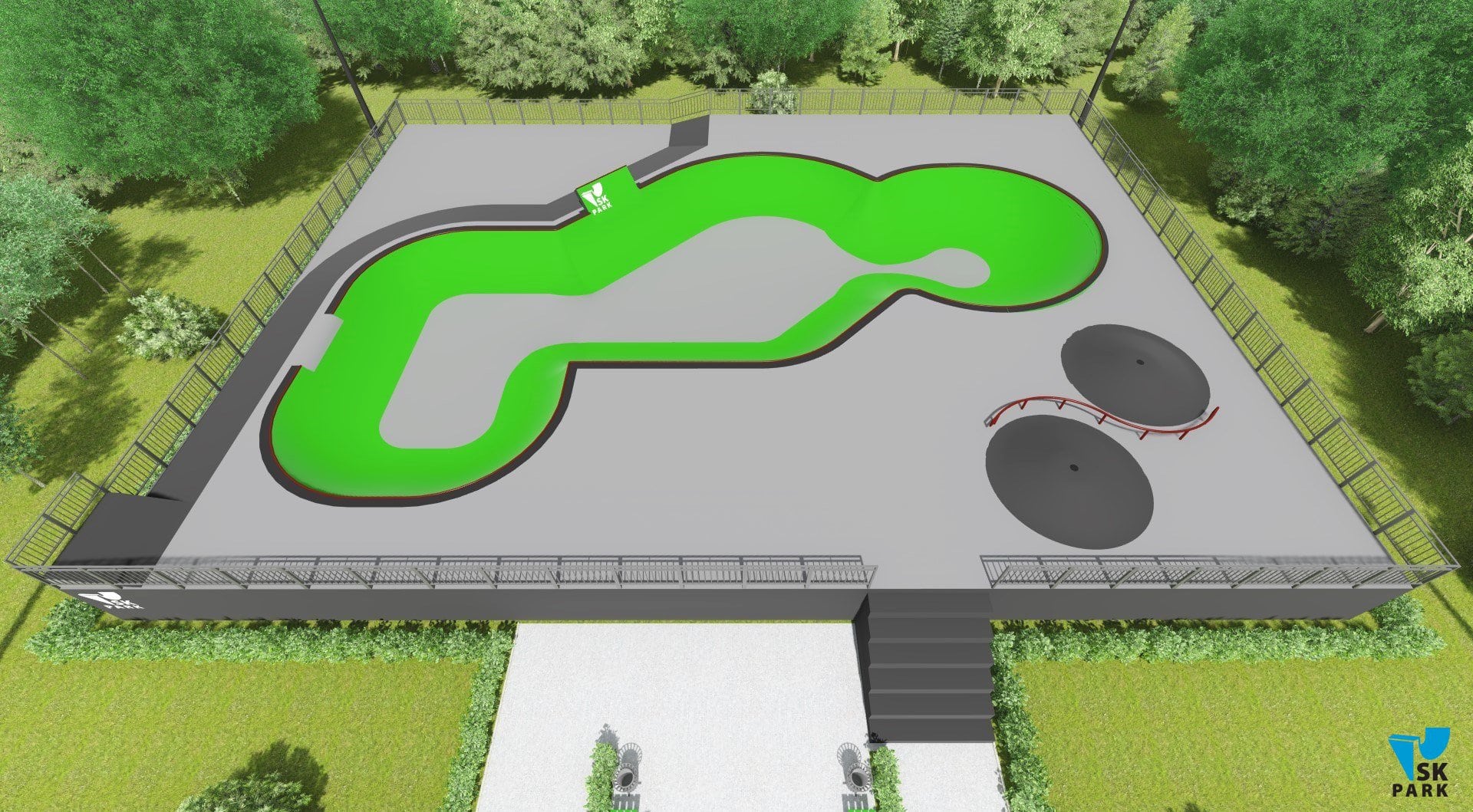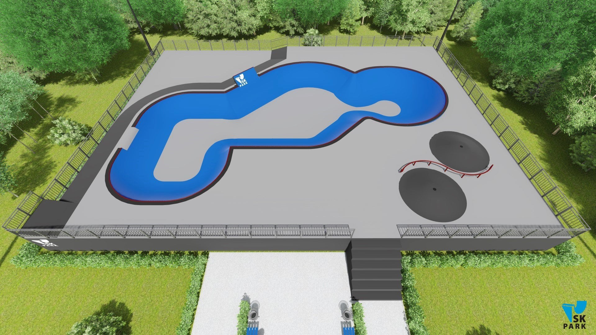 Проект ориентирован для катания во всех дисциплинах, для райдеров с начинающим, средним и профессиональным уровнем катания. Боул состоит из трех чаш разного размера и высоты, что увеличивает количество вариаций проезда в нем и позволяет райдерам делать зрелищные трюки на большой скорости. В боуле имеется возможность кататься по кругу и поперек, а также делать скольжения по коупингам и выполнять различные вылеты и трансферные прыжки. На столе пула присутствуют две кочки, кикер и «S» рейл, для тренировок начинающих райдеров. Проект пула полностью отвечает всем требованиям райдеров и подходит для тренировок спортсменов в олимпийских дисциплинах «skateboarding» и «BMX». В данном боуле возможно проведение соревнований и показательных выступлений во всех дисциплинах.