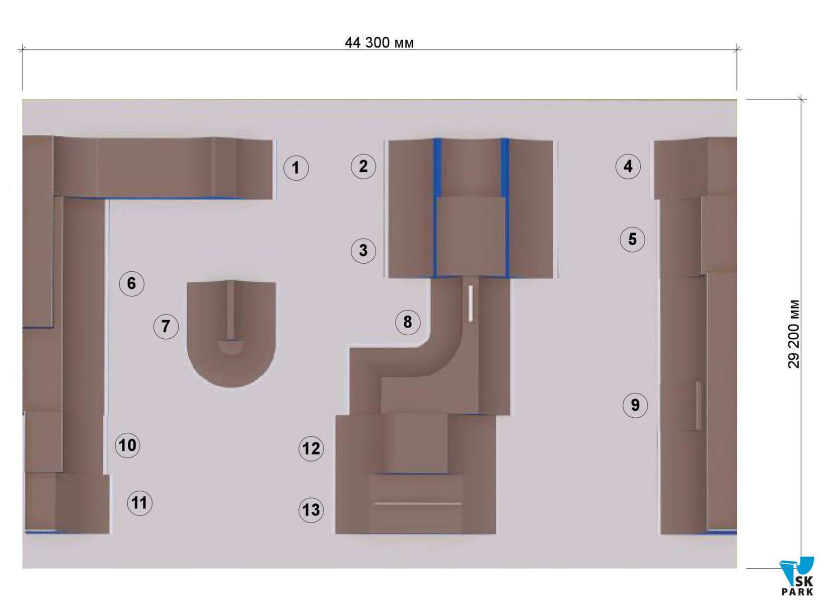 Проект BMX парка может подлежать корректировке в зависимости от площади, геометрии и любых других особенностей объекта.