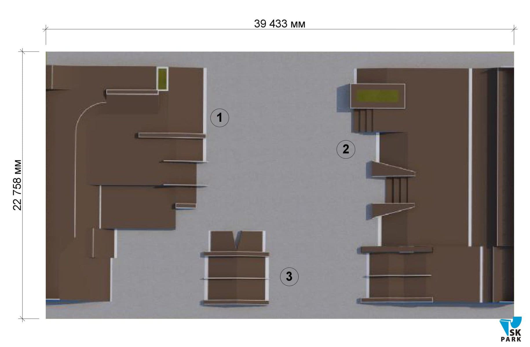 Проект скейт парка может подлежать корректировке в зависимости от площади, геометрии и любых других особенностей объекта.