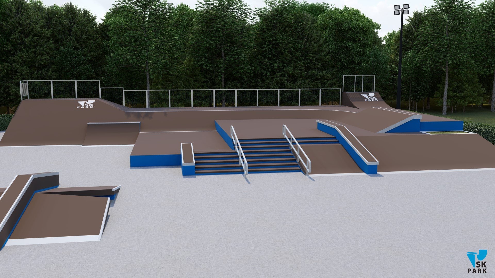 Дополнительно в скейтпарке компания «SK PARK» рекомендует установку следующего оборудования: