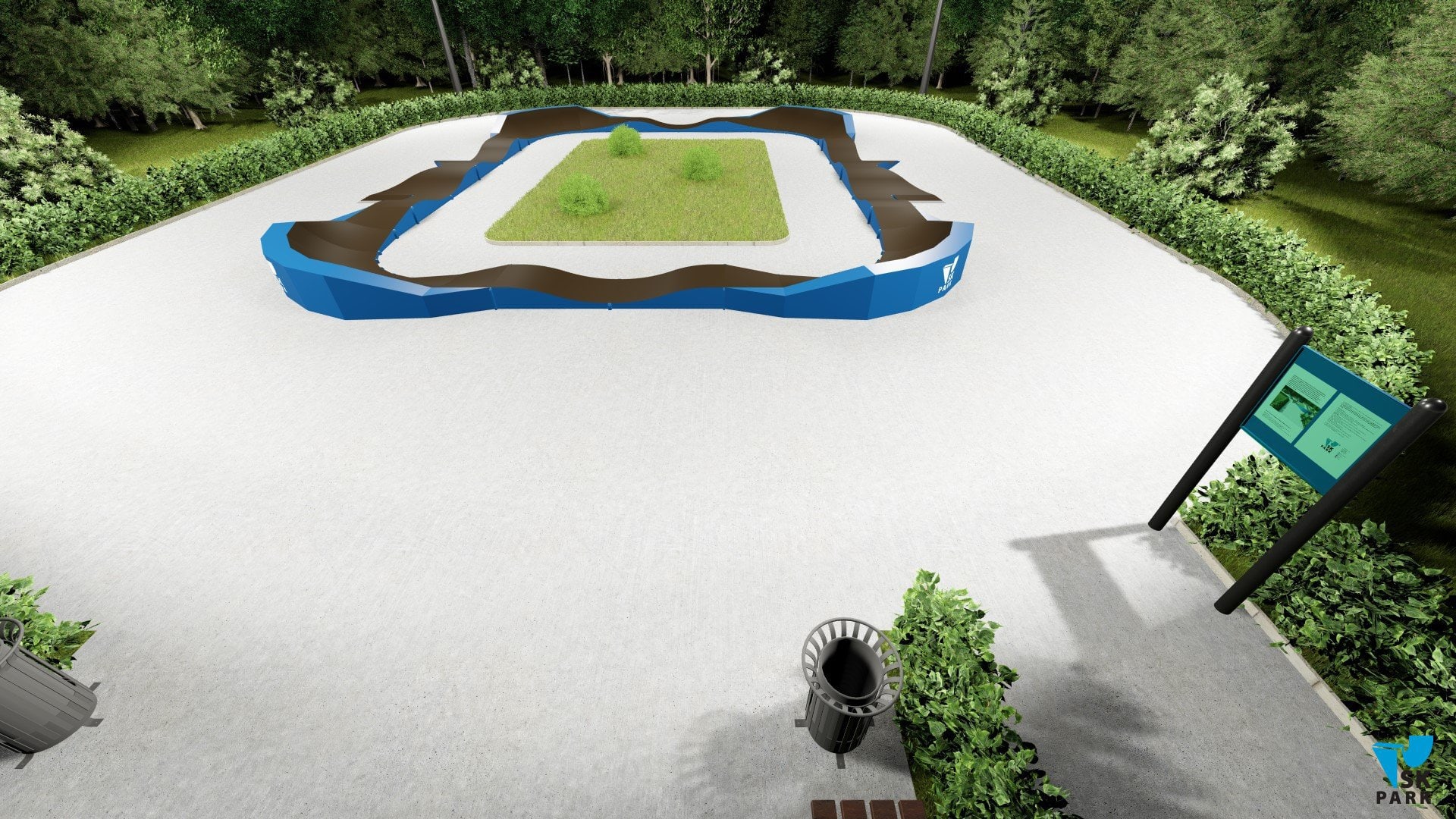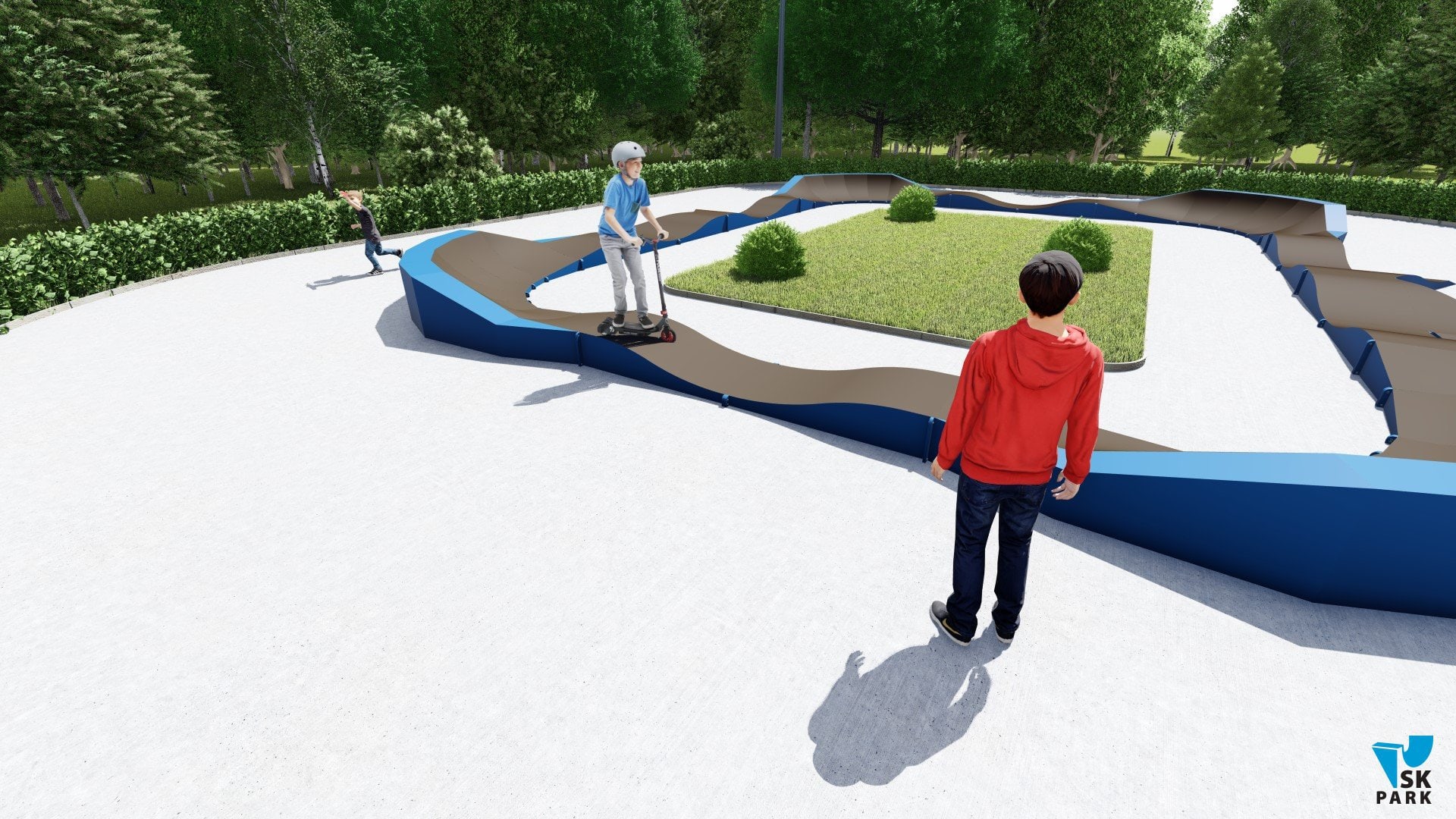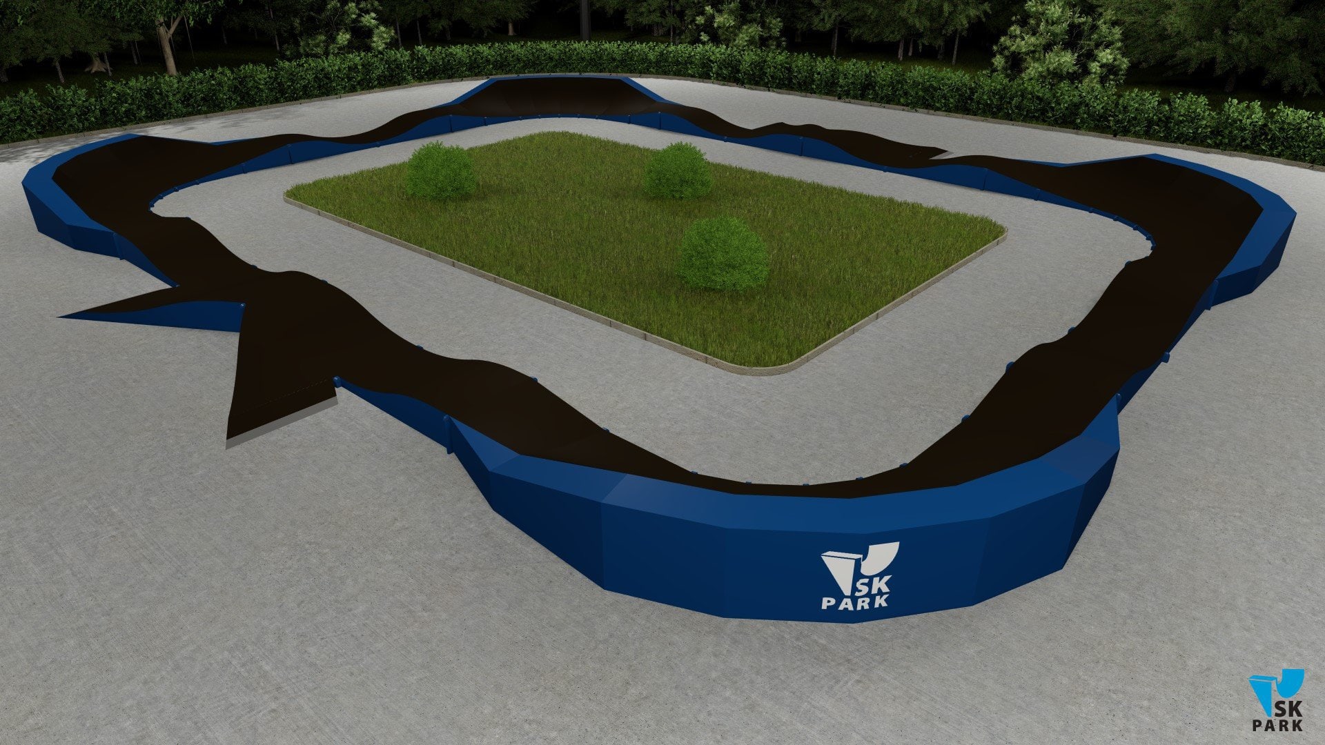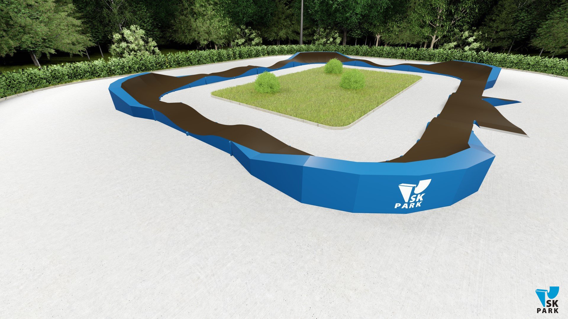 Памп трек отлично подойдет для установки на территории коттеджного поселка,загородного участка, образовательного учреждения, а также для любых других объектов обладающих подходящей площадью.