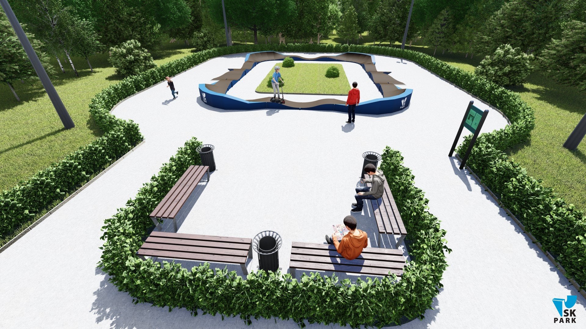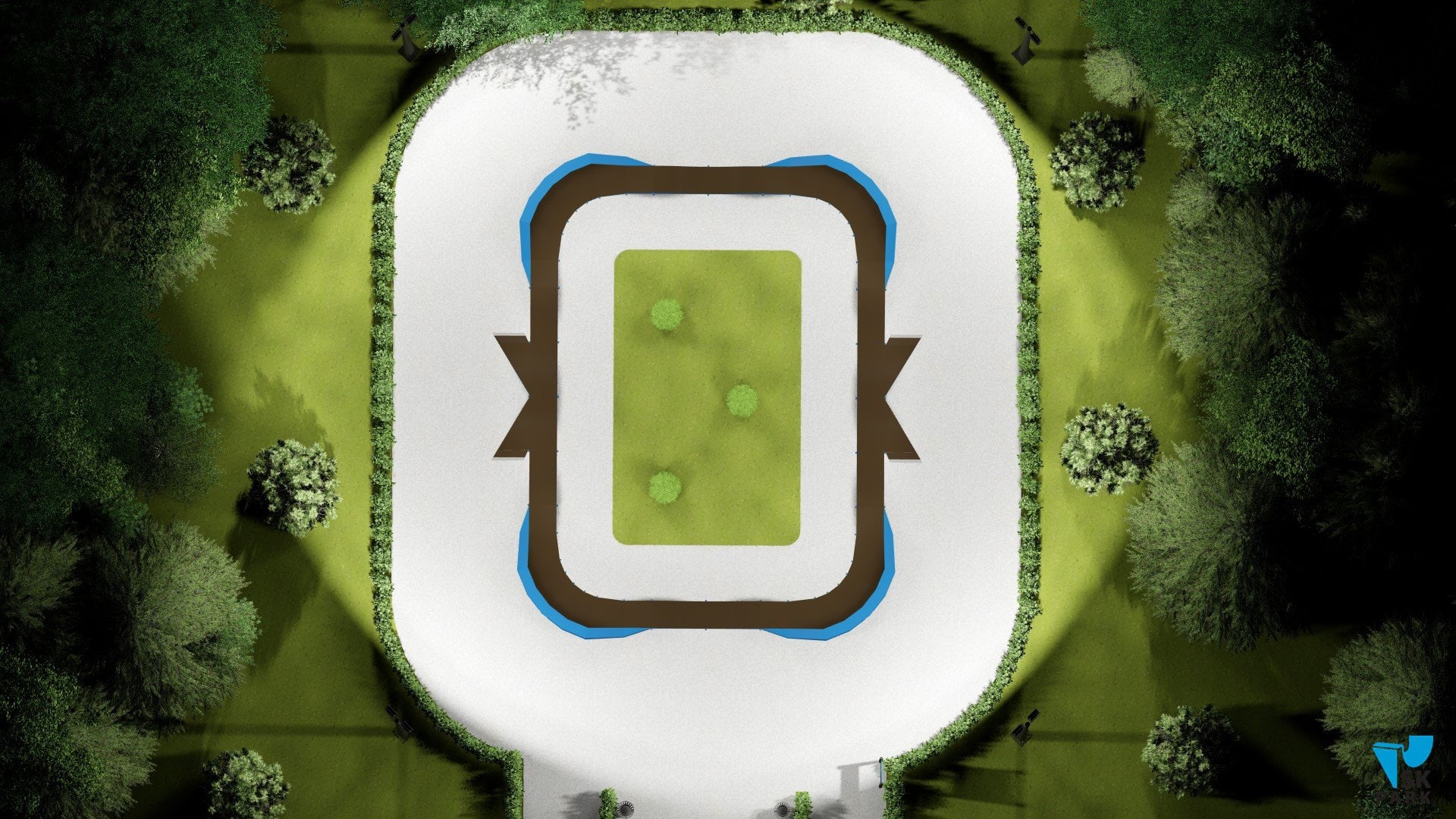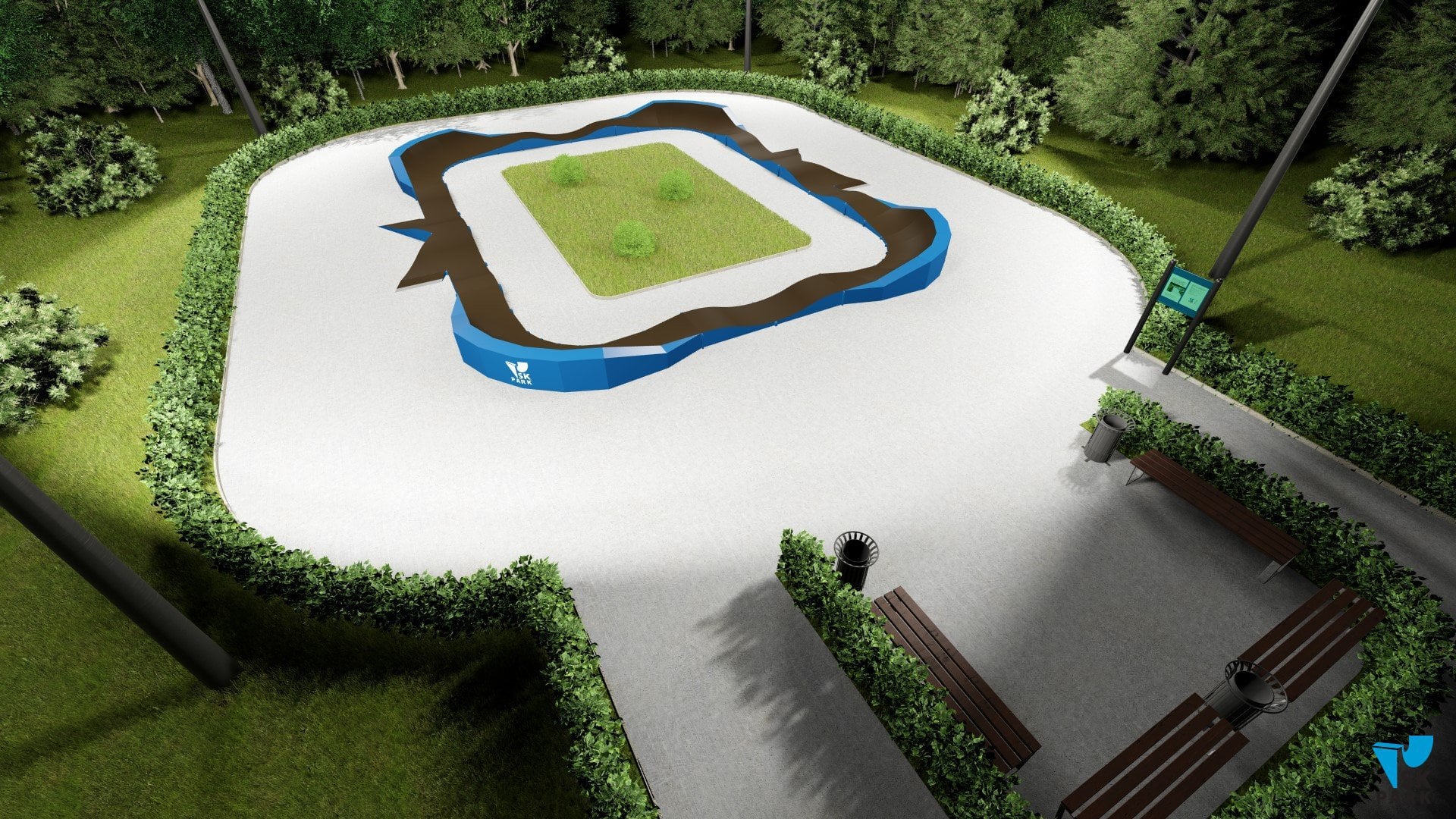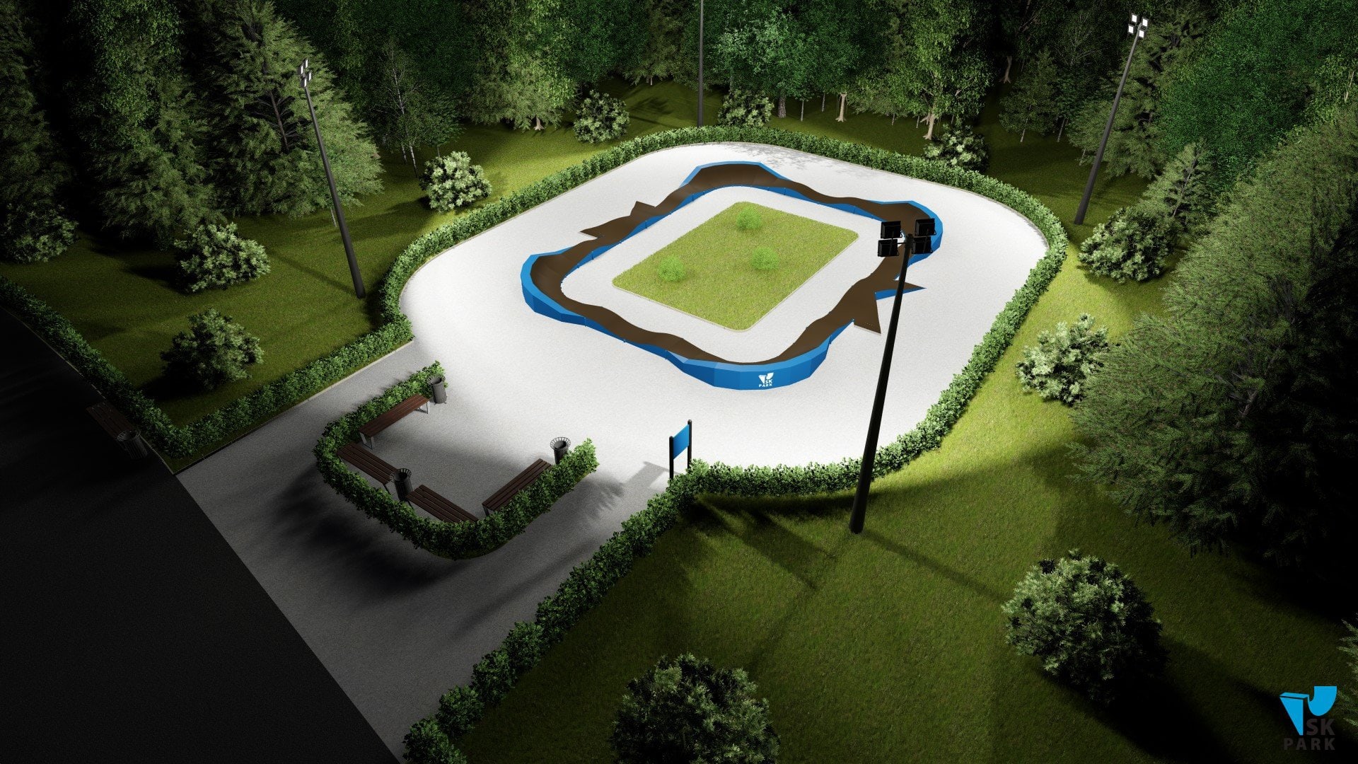 Памп трек отлично подойдет для установки на территории коттеджного поселка,загородного участка, образовательного учреждения, а также для любых других объектов обладающих подходящей площадью.