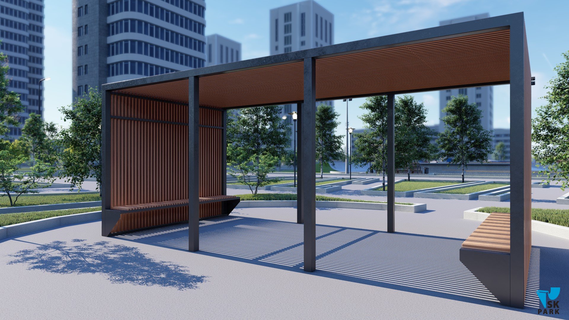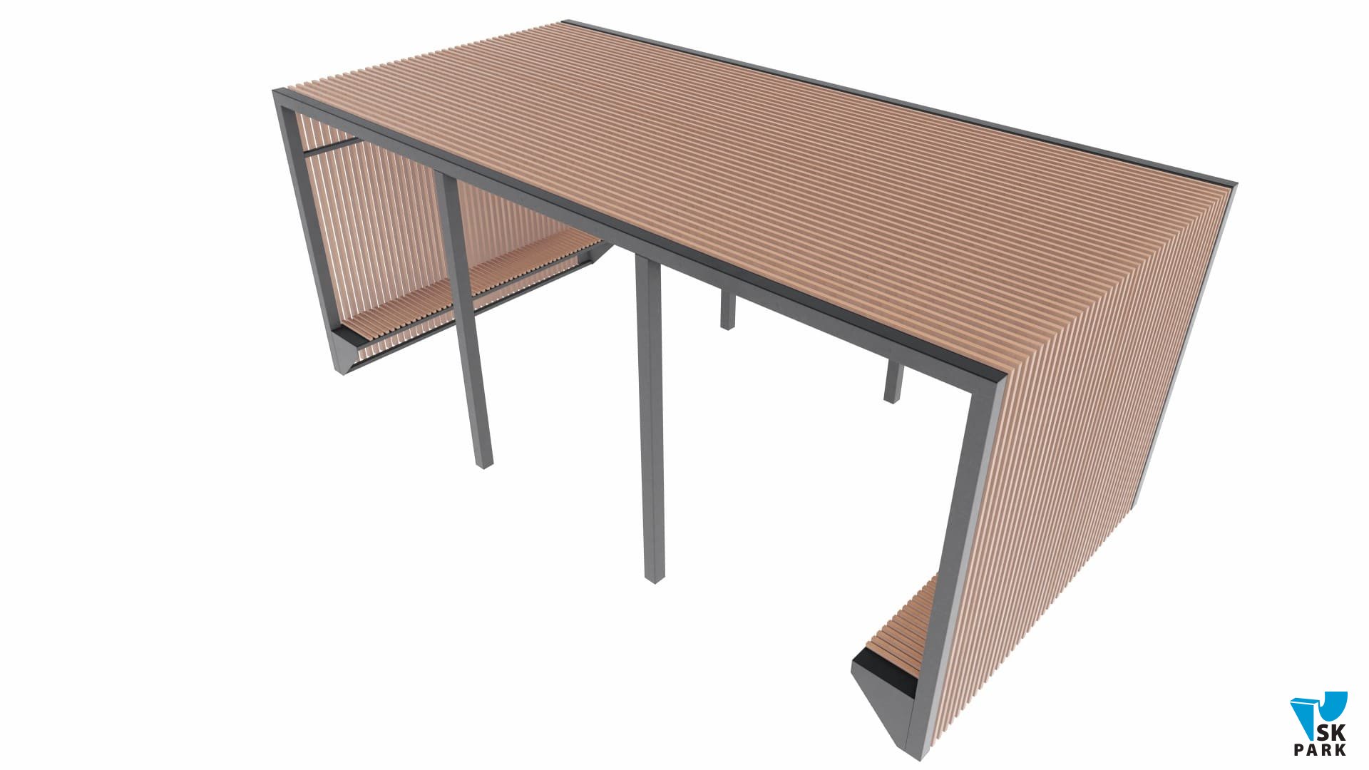 Навес парковый из натурального дерева обеспечит теневую защиту для отдыхающих и создаст эстетический, современный вид зоны для отдыха. Конструкцию дополняют встроенные деревянные лавочки на металлическом каркасе. Навесы широко используются в благоустройстве городских парков, набережных, открытых солнцу площадей, дворов, скверов и других объектах общественного пространства.