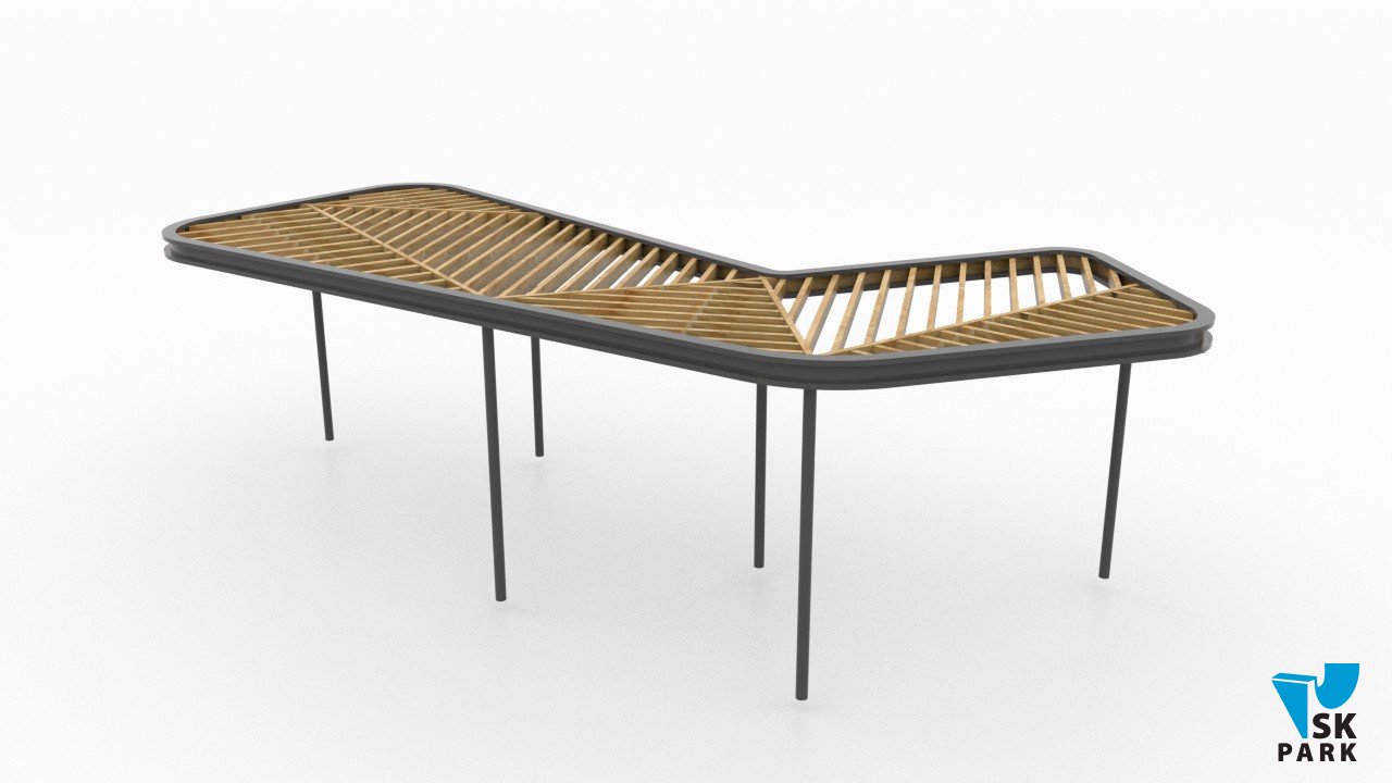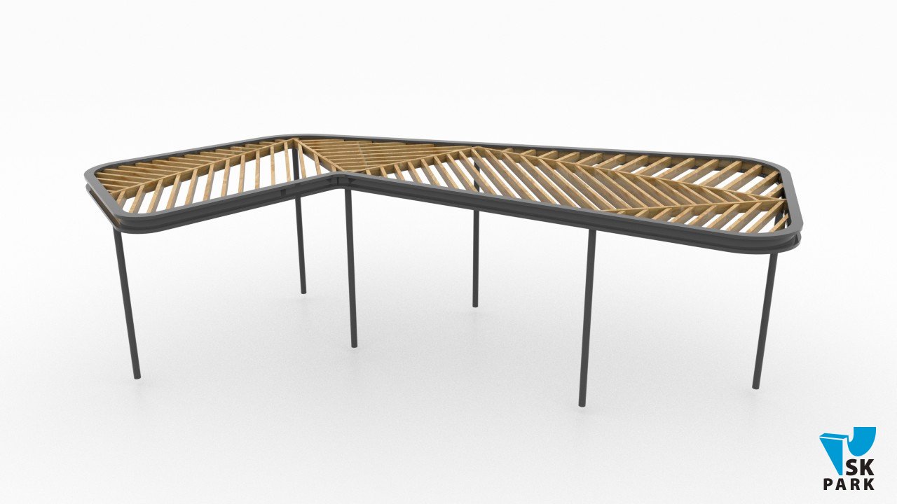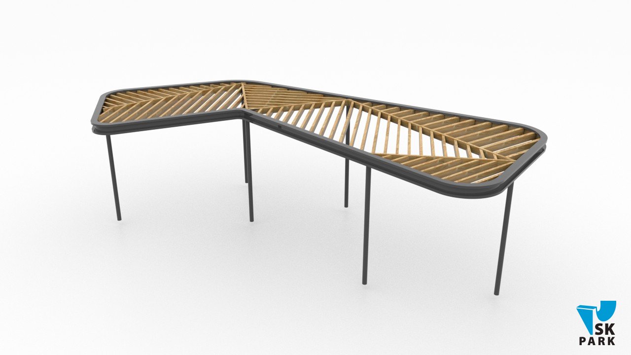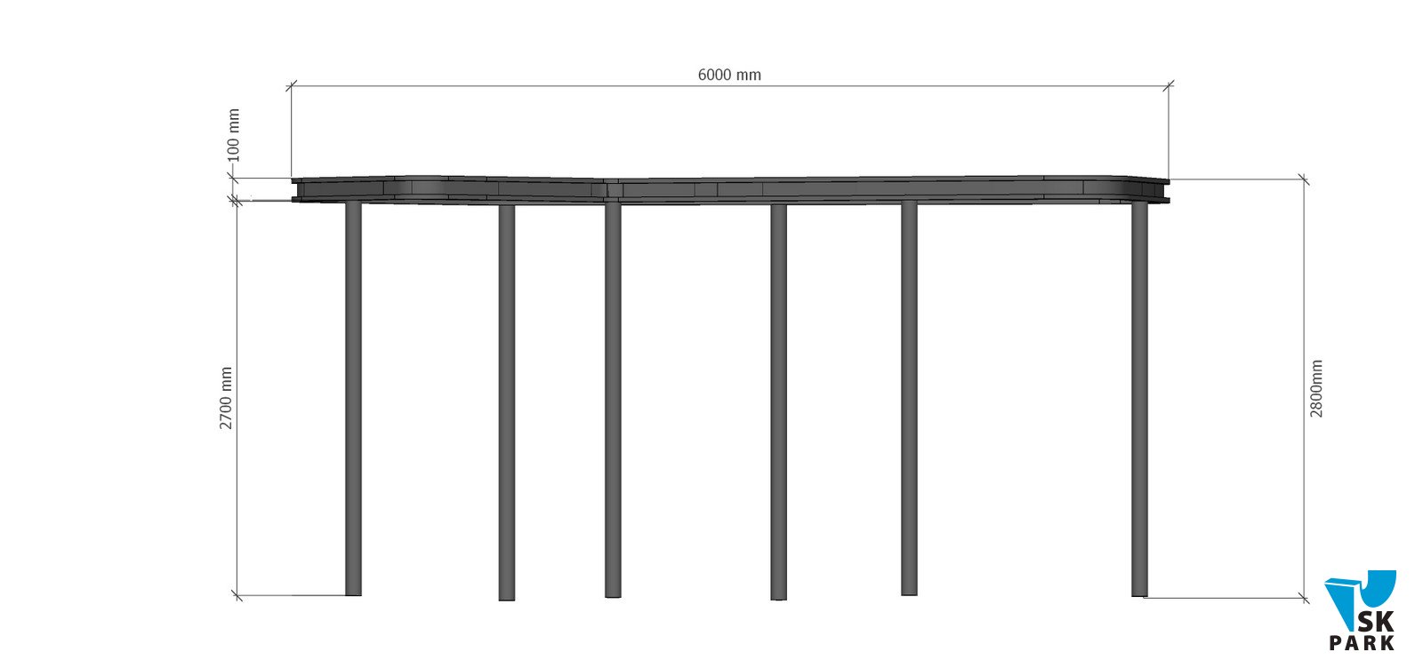 Конструкция перголы состоит из шести металлических стоек произведенных из стальной трубы диаметром 108мм, теневого навеса состоящего из металлического каркаса и деревянной решетки, произведенной из досок размером 90мм на 30мм.