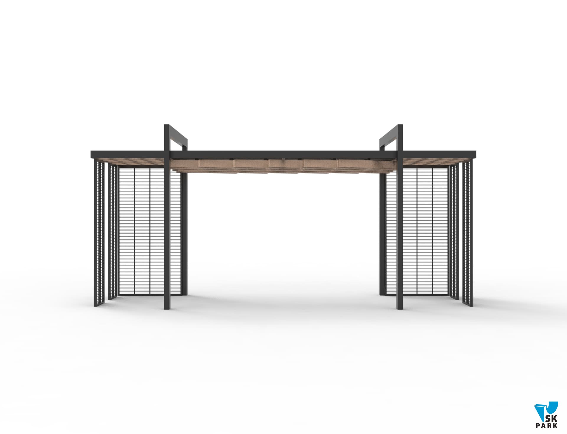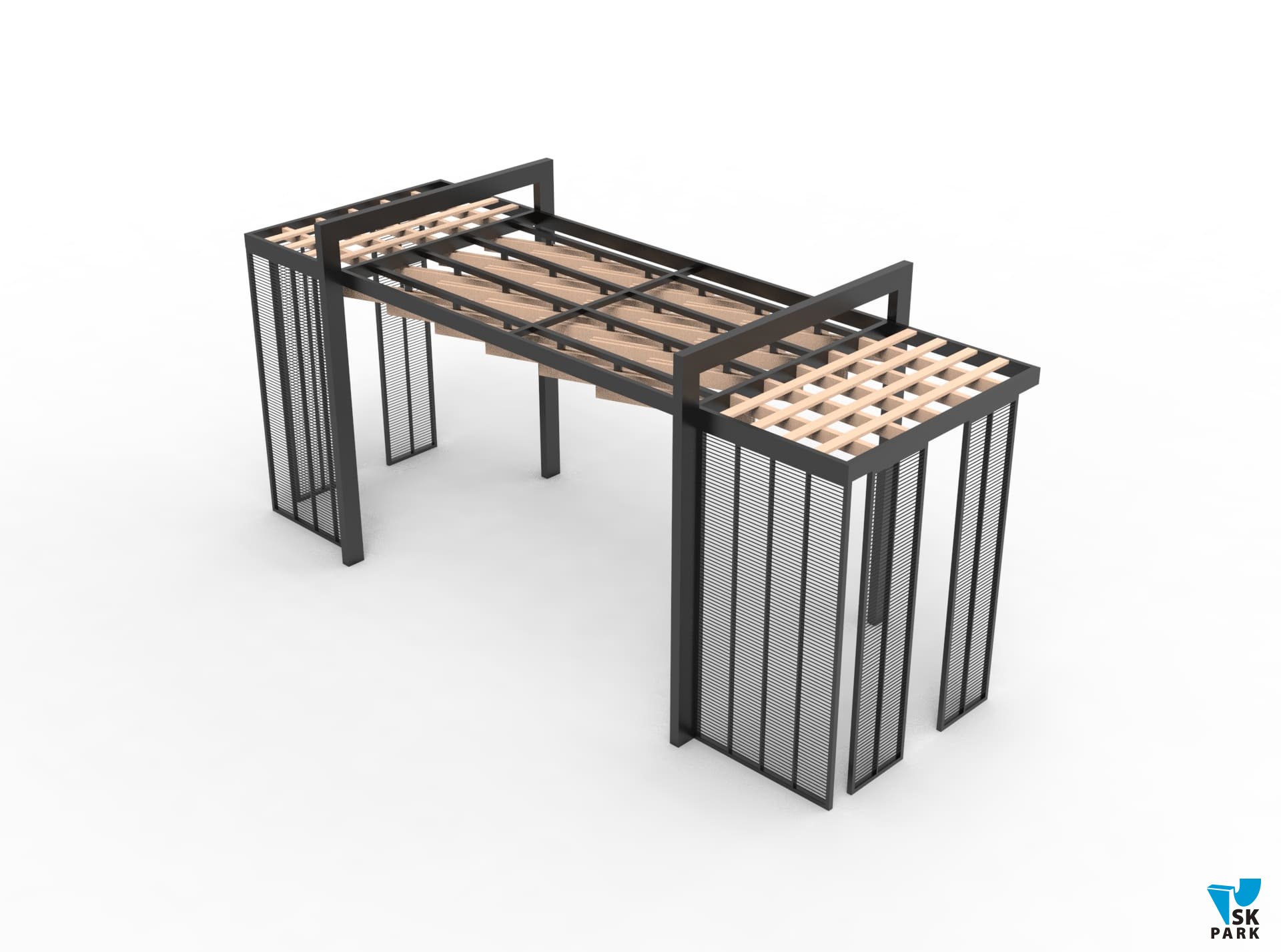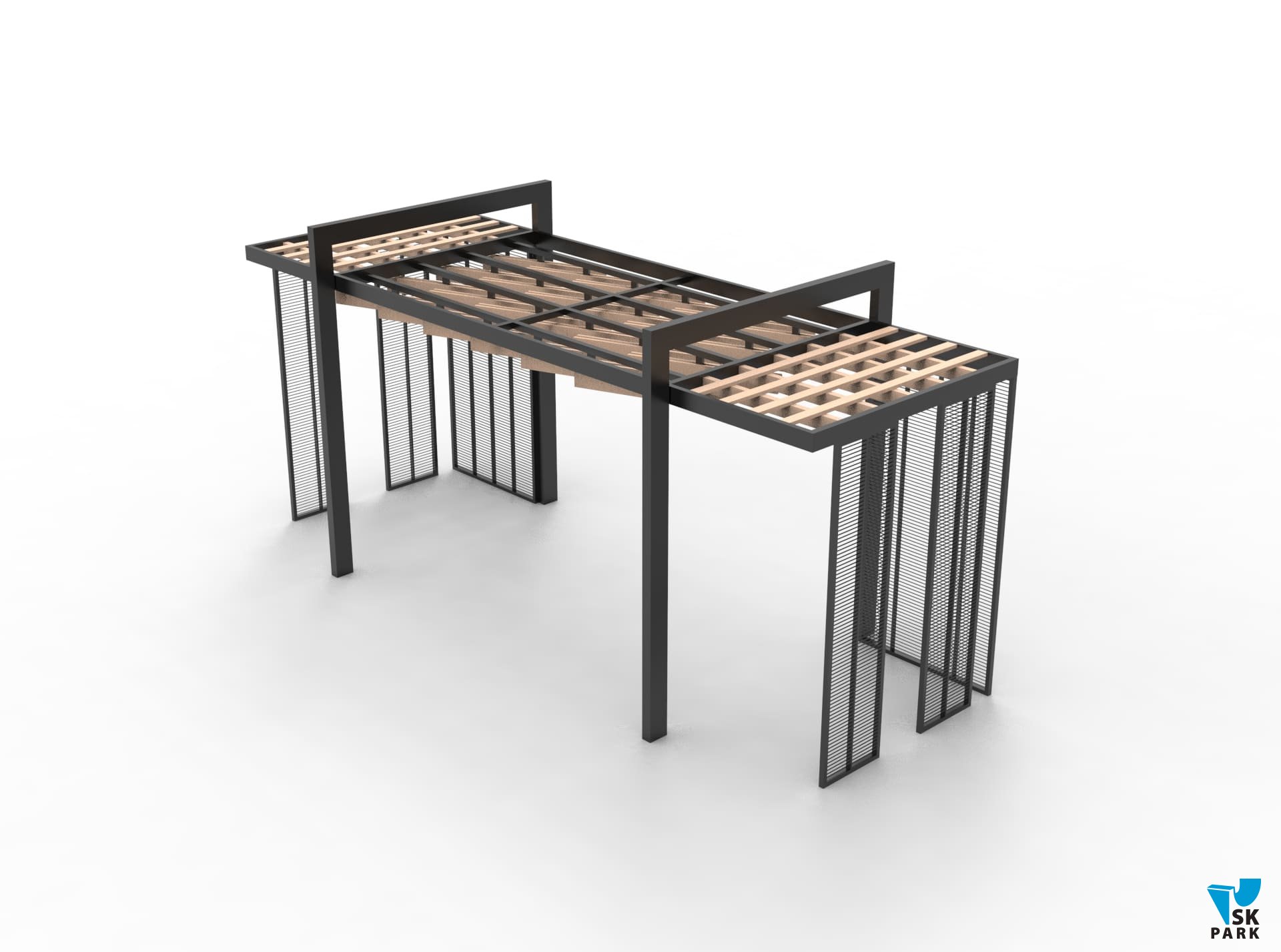 Данная пергола является собственной разработкой компании. Пергола отлично подойдет для размещения современных общественных пространств. По желанию заказчика возможно вносить изменения/дополнения в конструкцию
