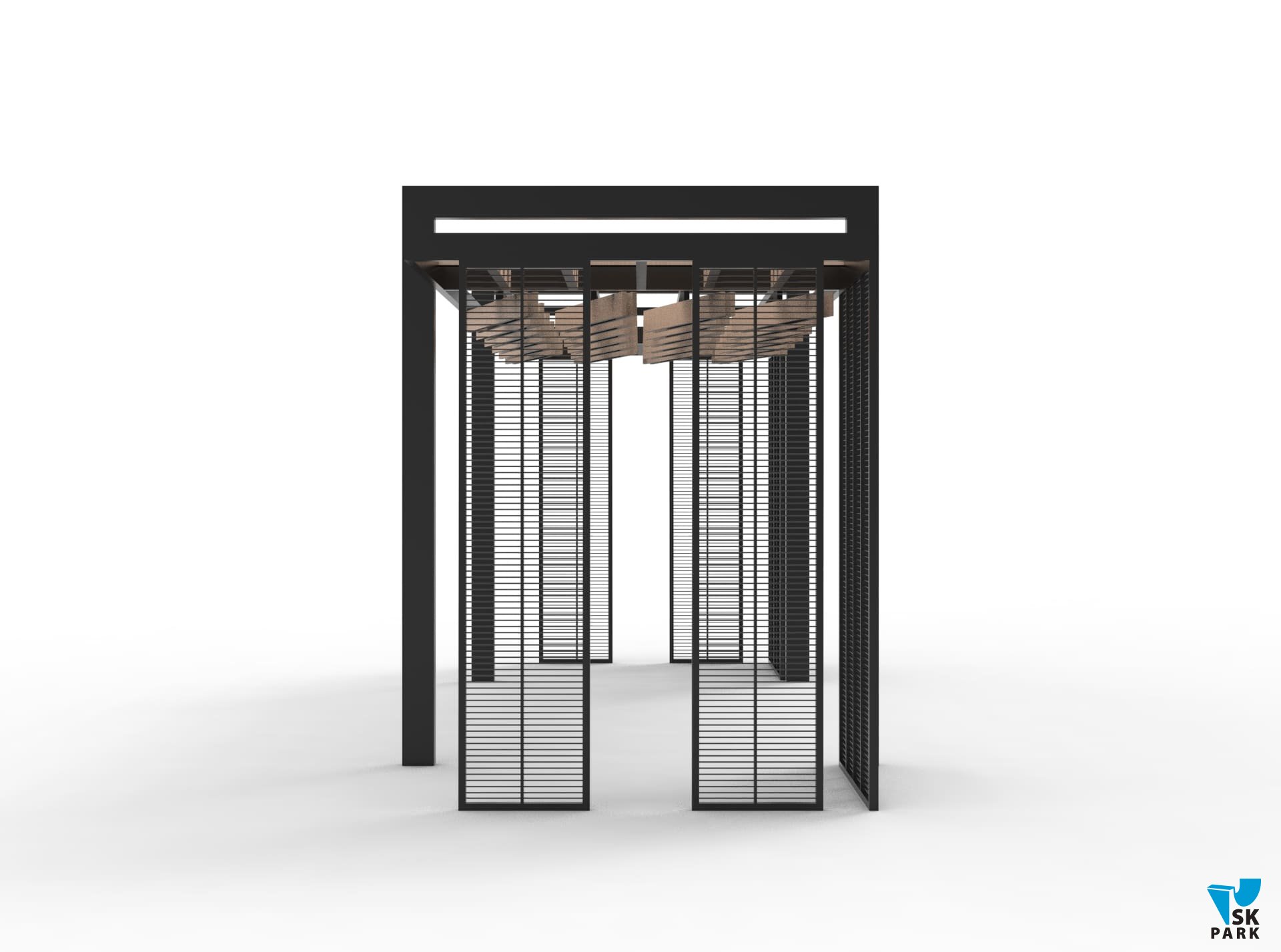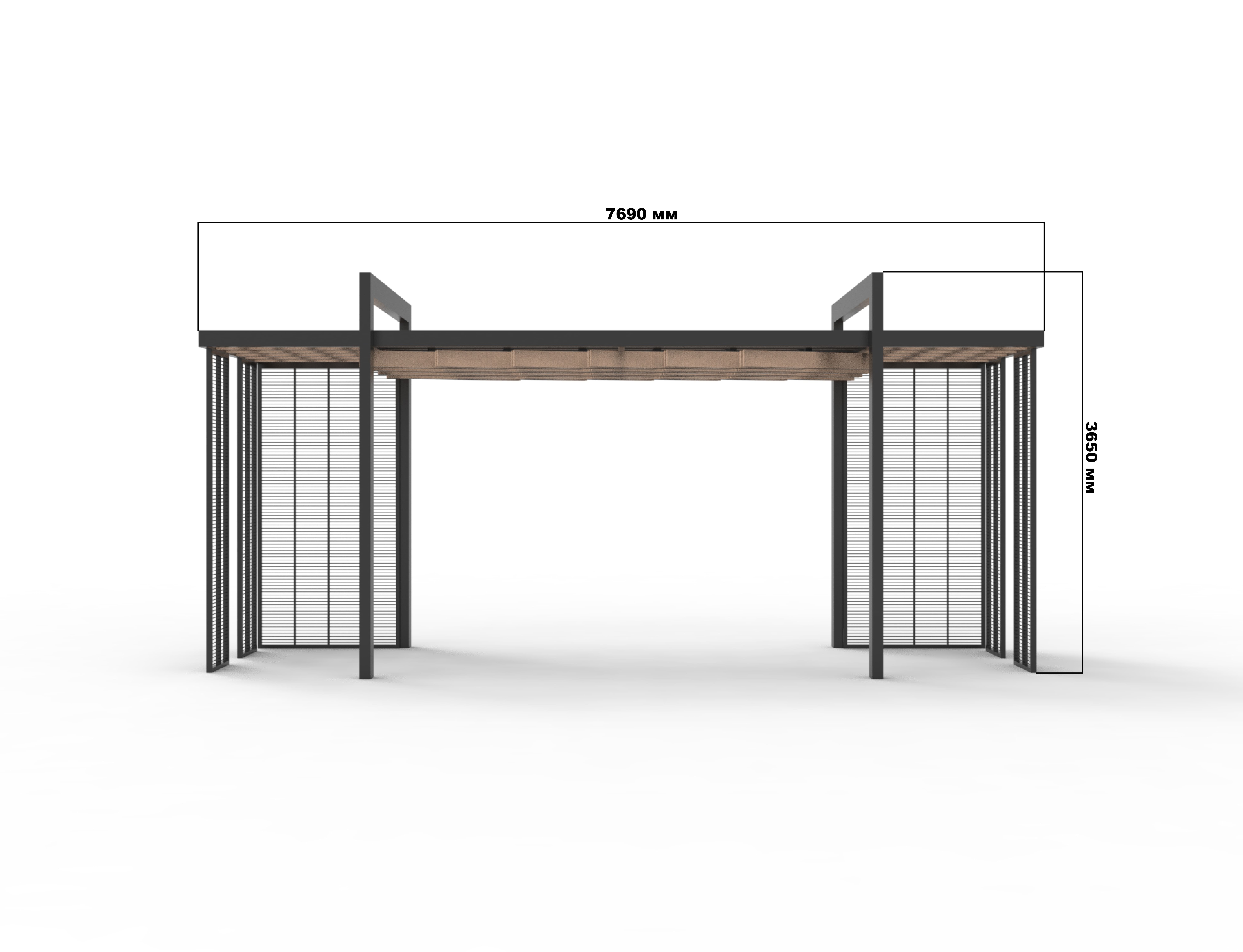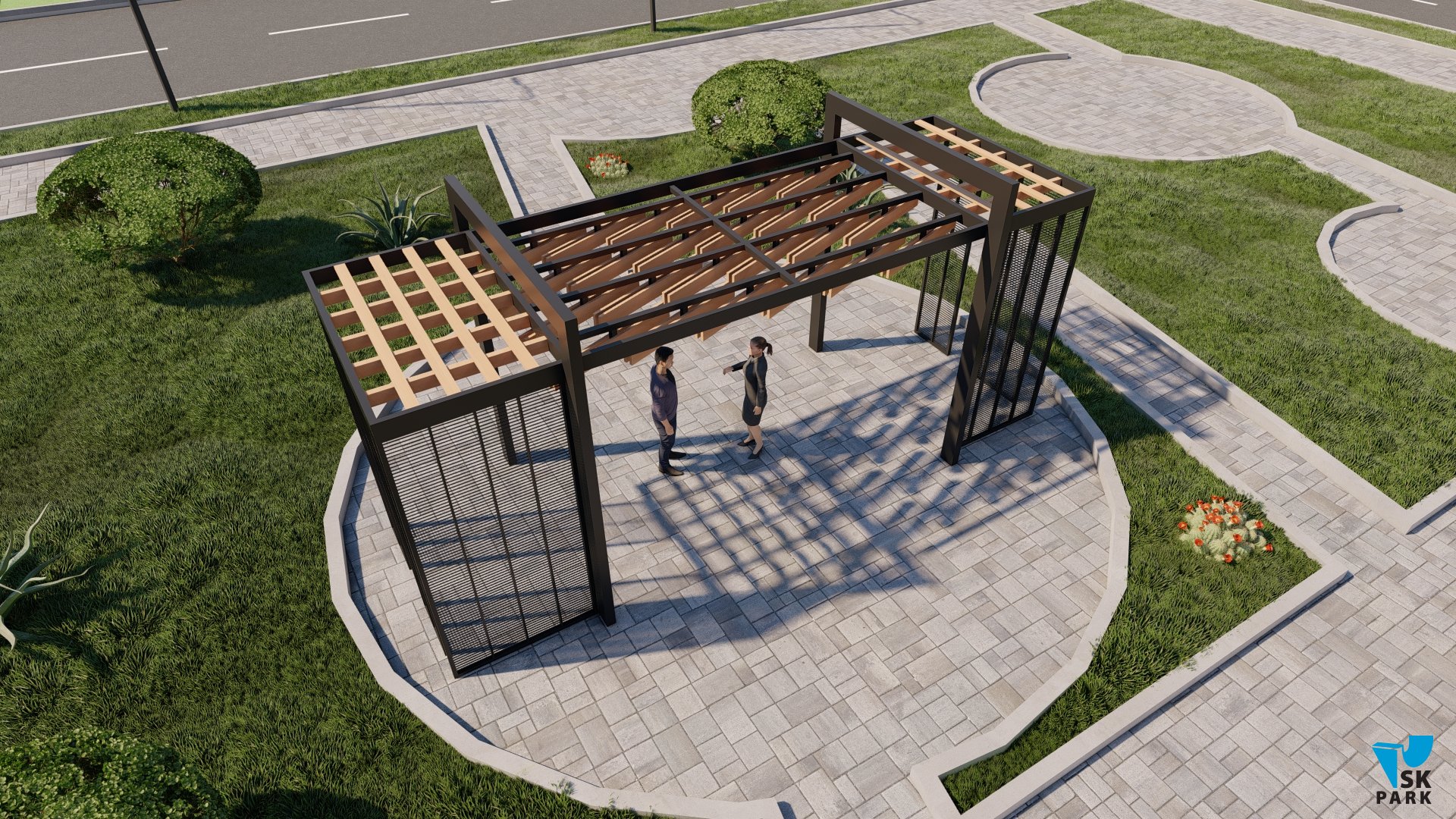 Данная пергола является собственной разработкой компании. Пергола отлично подойдет для размещения современных общественных пространств. По желанию заказчика возможно вносить изменения/дополнения в конструкцию