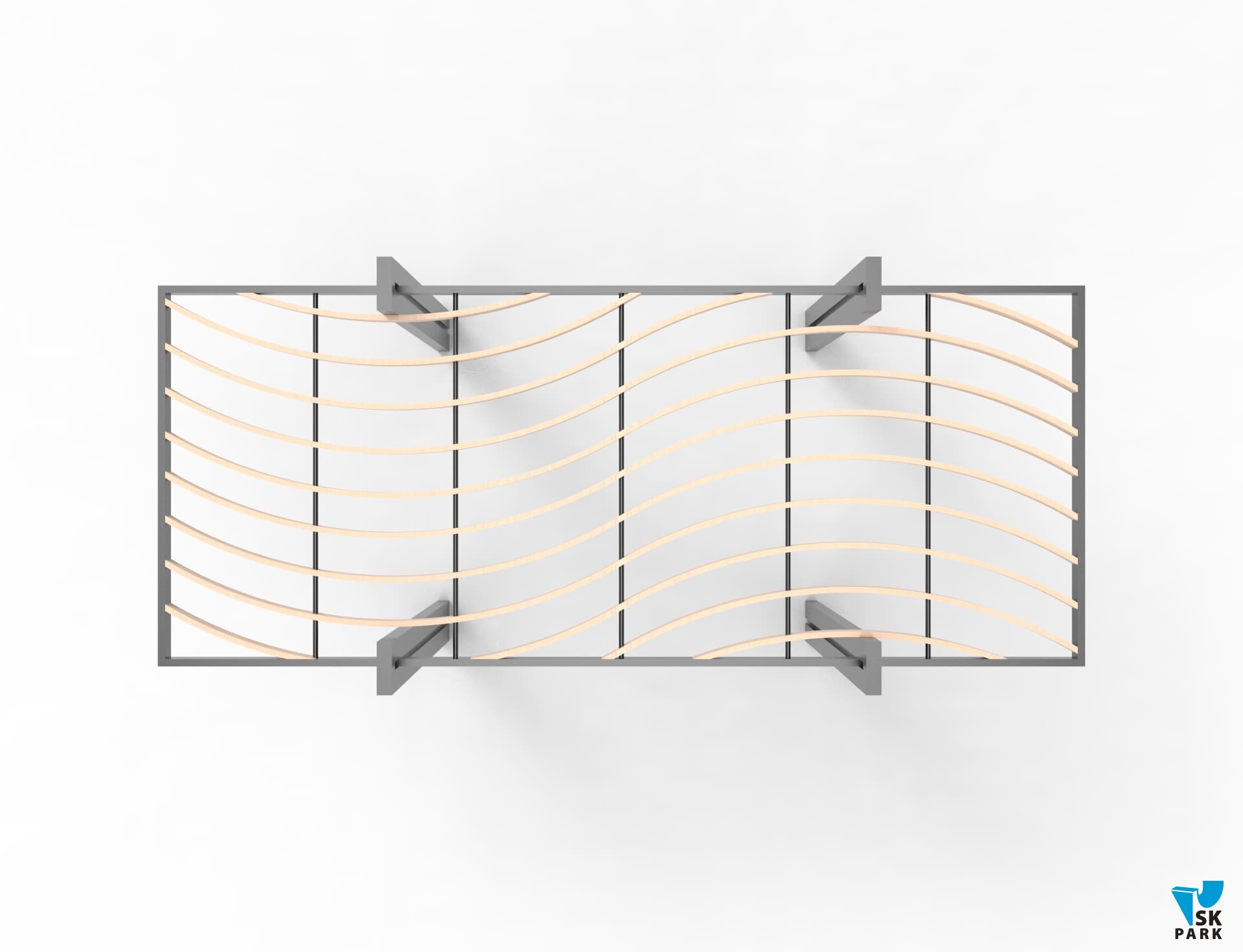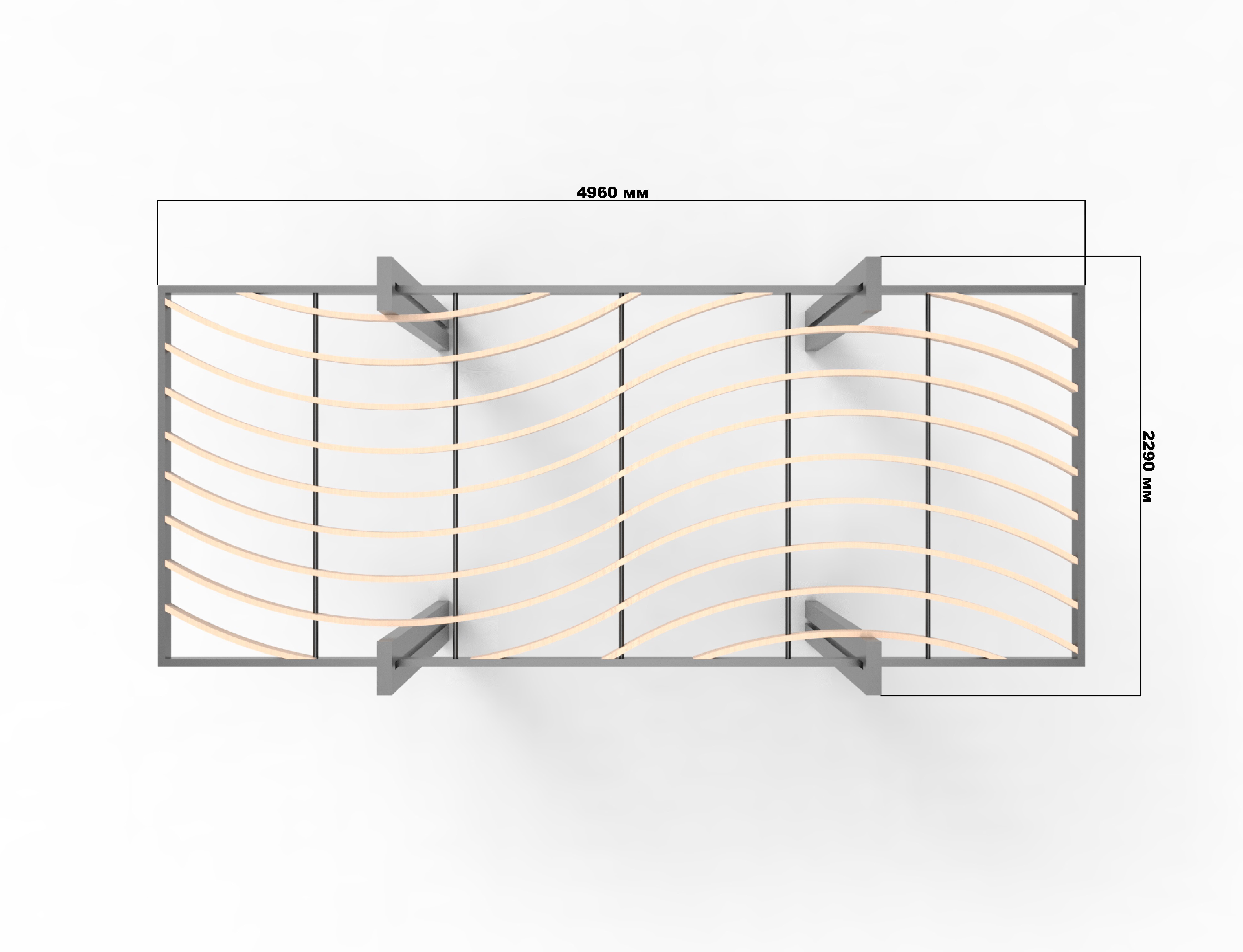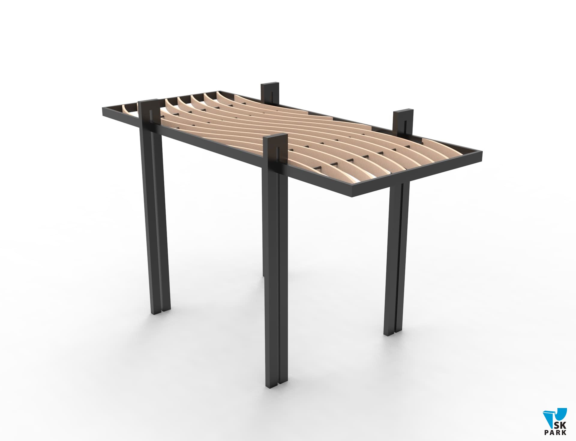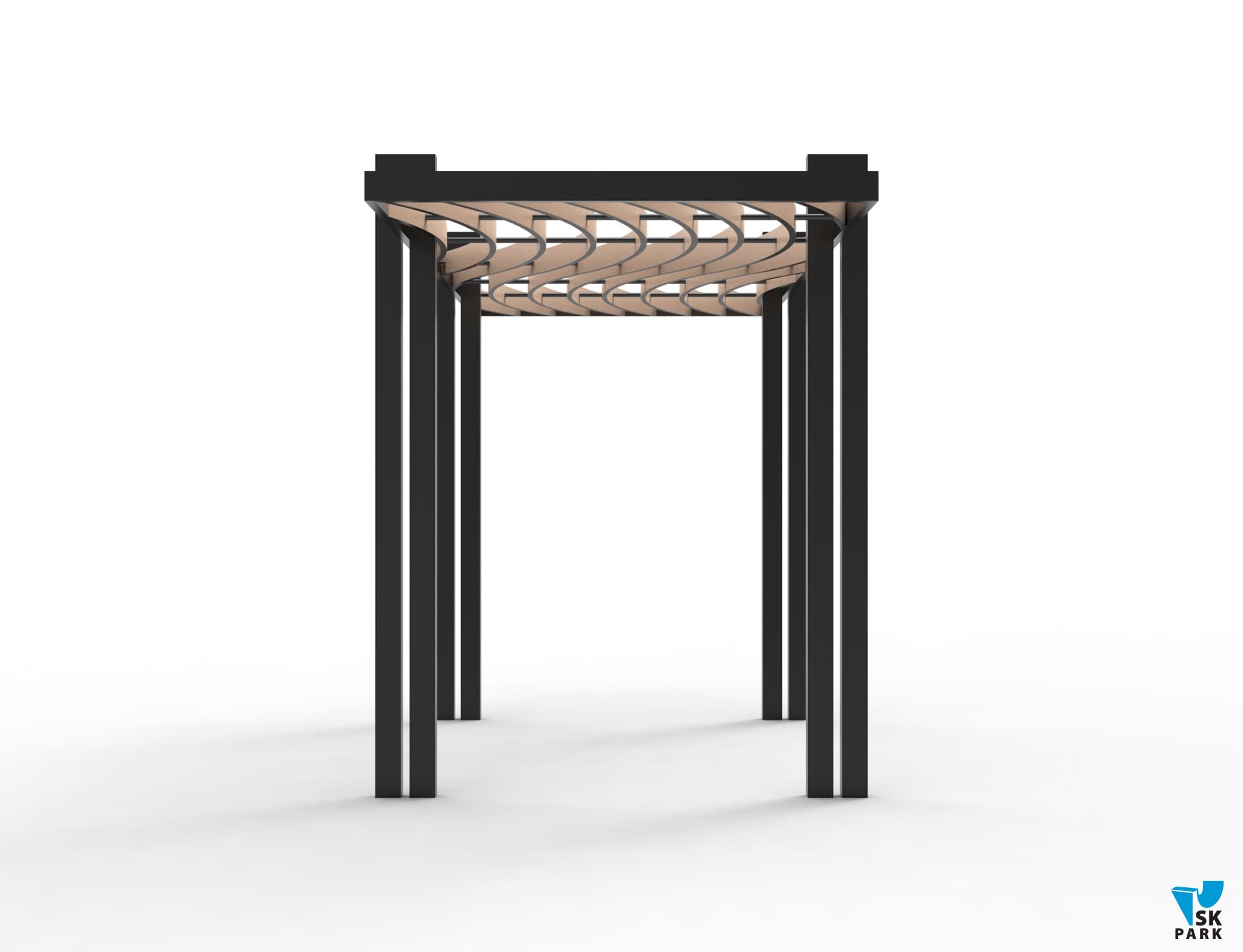 Данная пергола является собственной разработкой компании. Пергола отлично подойдет для размещения в современных общественных пространств. По желанию заказчика возможно вносить изменения/дополнения в конструкцию
