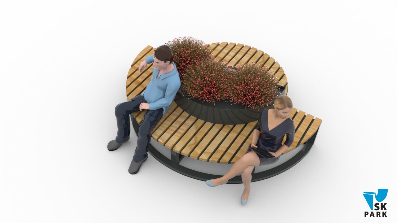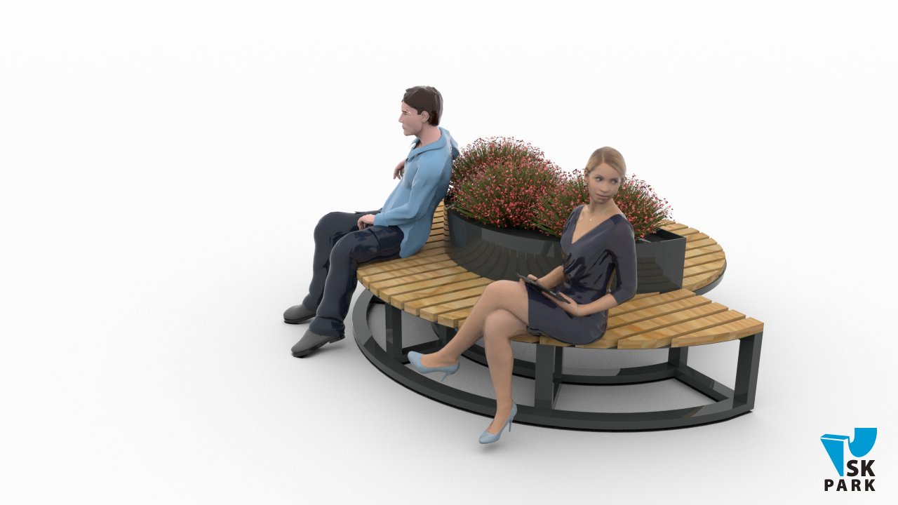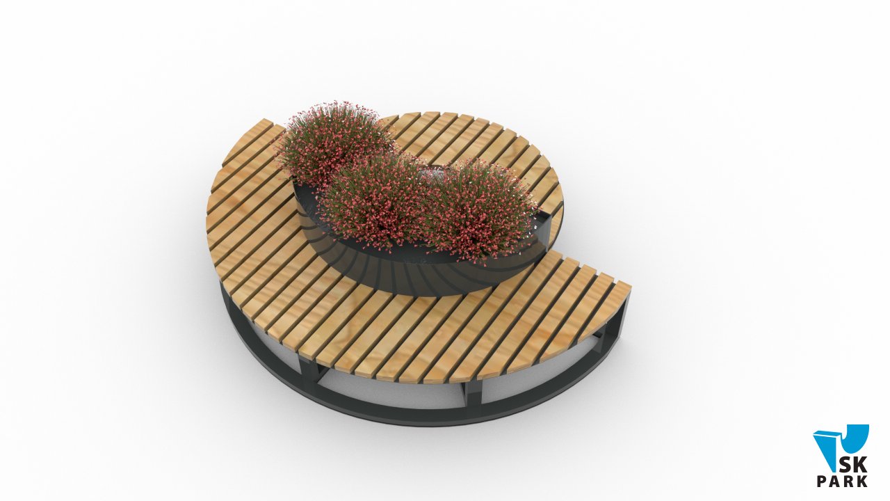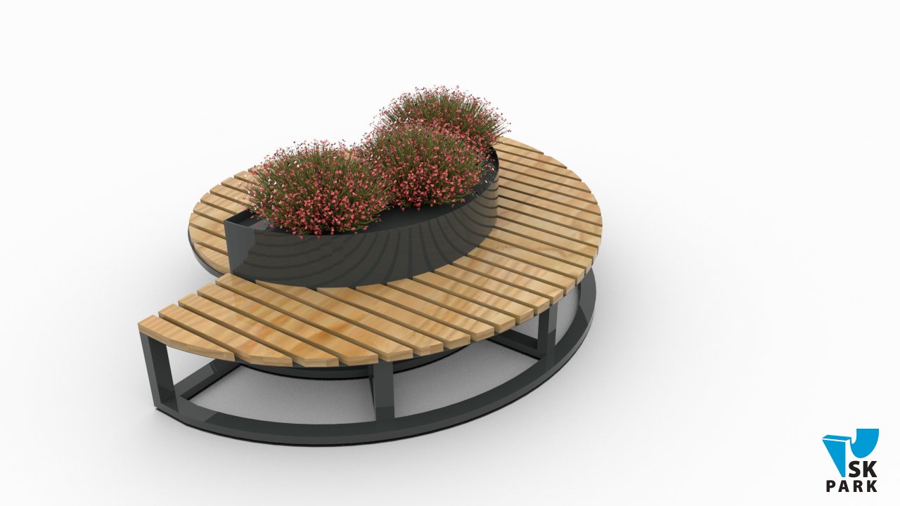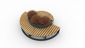 Скамья одновременно является клумбой для растений, что предает ей эстетичный внешний вид.