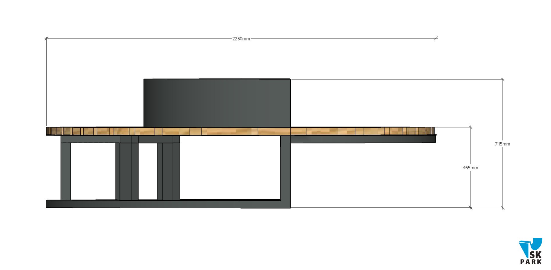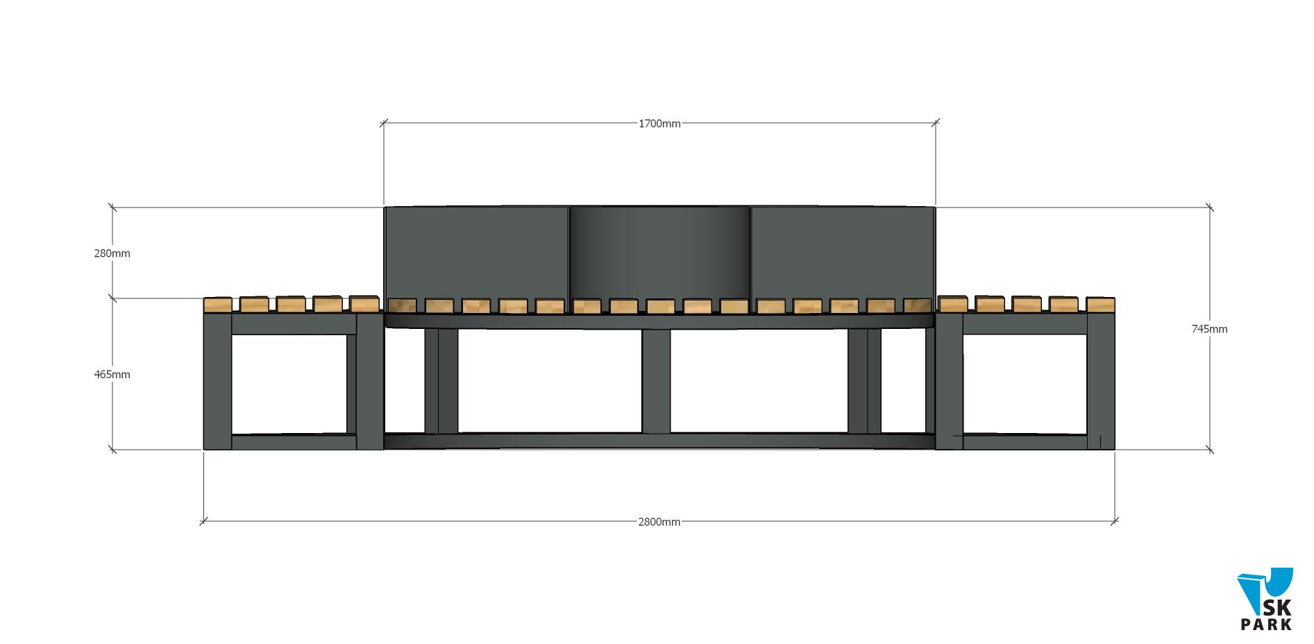 Описание: Конструкция скамьи состоит из металлического каркаса, произведенного из стальной трубы размером 50ммх50мм, короба под вазон, состоящего из металлического каркаса и деревянных досок размером 50ммх40мм.