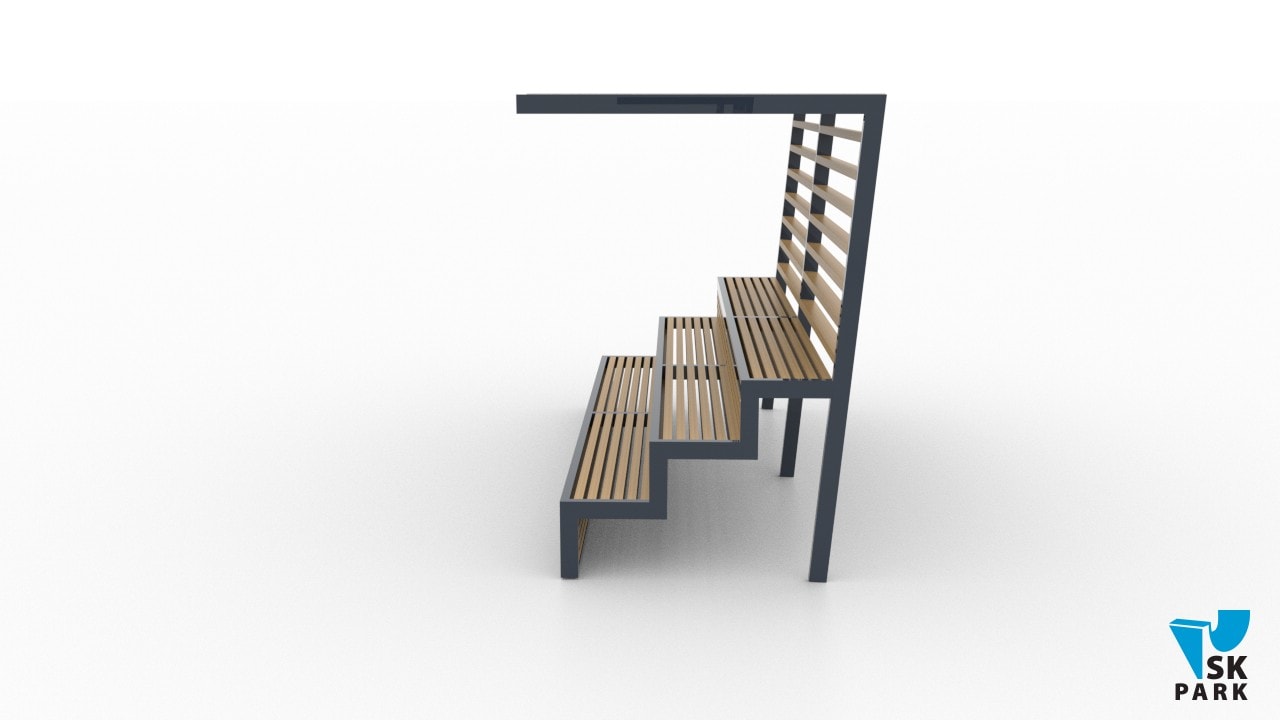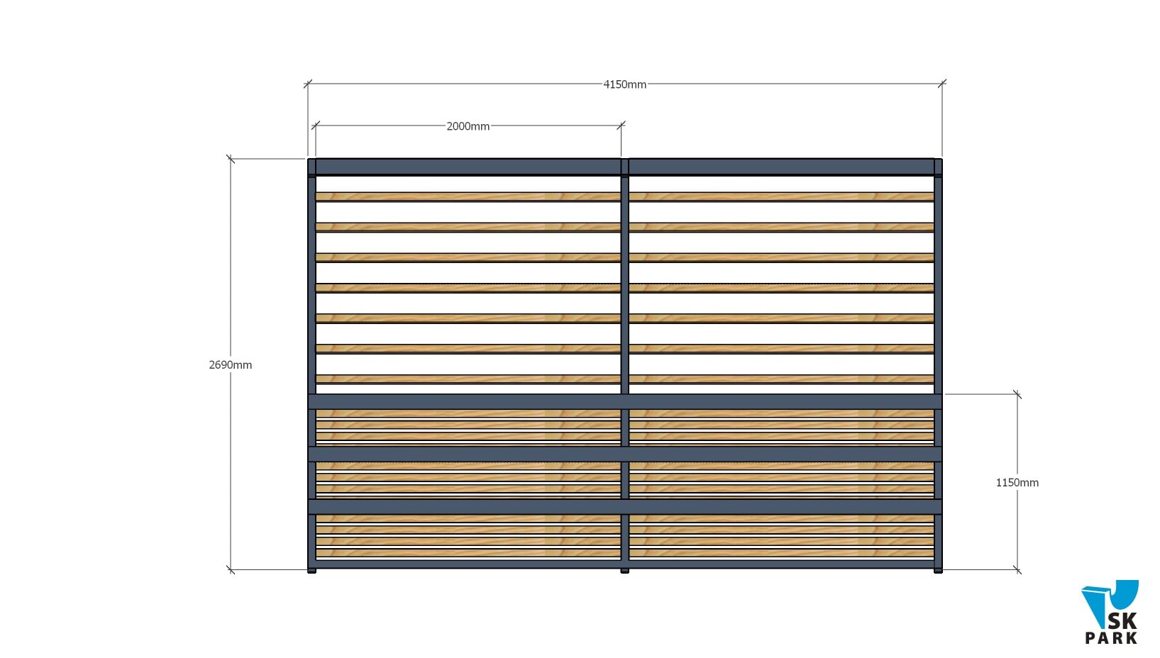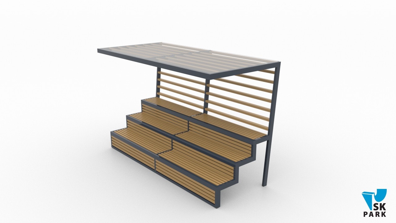 Конструкция навеса состоит из металлического каркаса, произведенного из стальной трубы размером 100ммх50мм, теневого навеса состоящего из металлического каркаса и деревянной решетки, произведенной из досок размером 90мм на 30мм.
