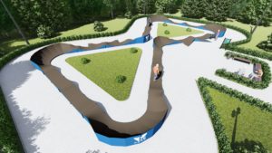 Данный памп трек подходит для среднего уровня райдеров, для обучения детей, а также для улучшения навыков катания профессиональных райдеров в олимпийской дисциплине «BMX race». Памптрек предусматривает 4 поворота на 120 градусов и 2 поворота на 60 градусов. Подходит для проведения соревнований, показательных выступлений и организации школы. Общая длина трассы – 92 метра. Отличное решение для парков отдыха, спортивных объектов, образовательных учреждений, жилых комплексов, а также для любых других объектов обладающих подходящей ПРОЕКТ ПАМП ТРЕКА SKP 30-18 площадью.