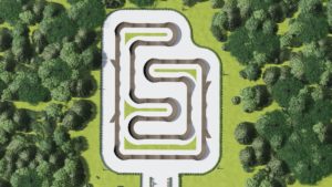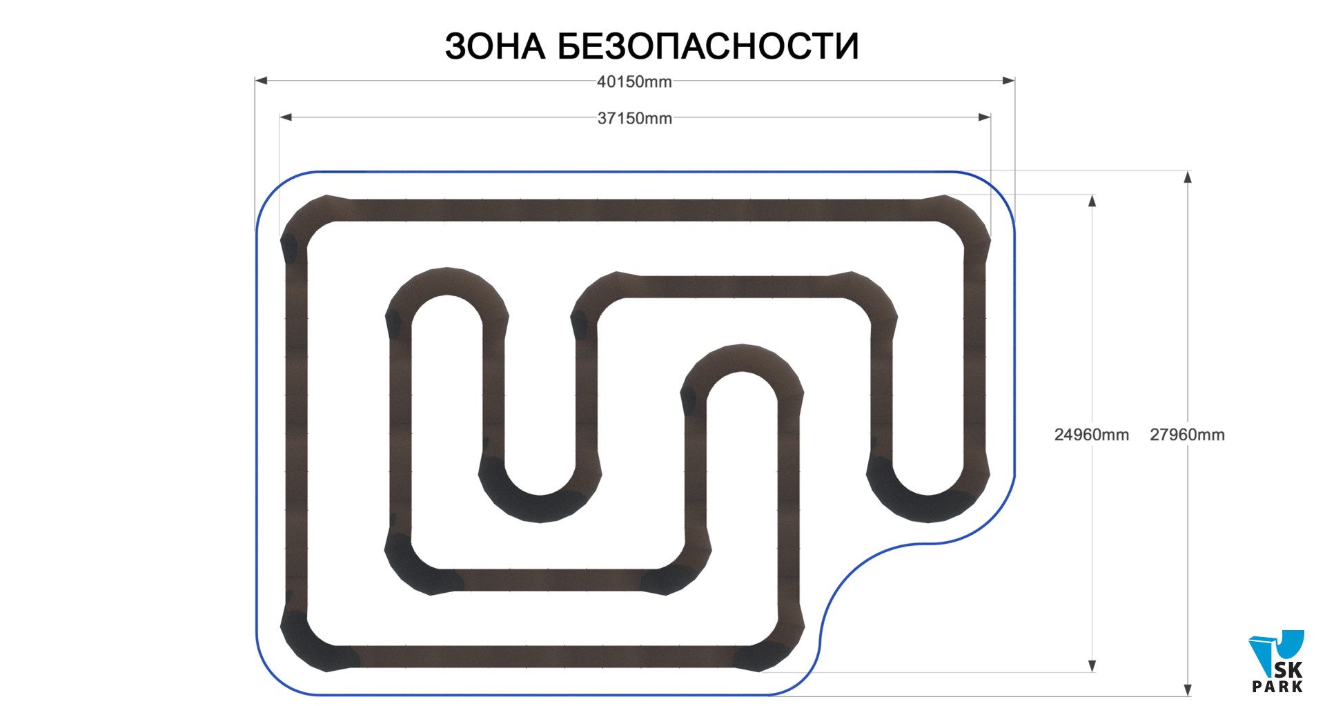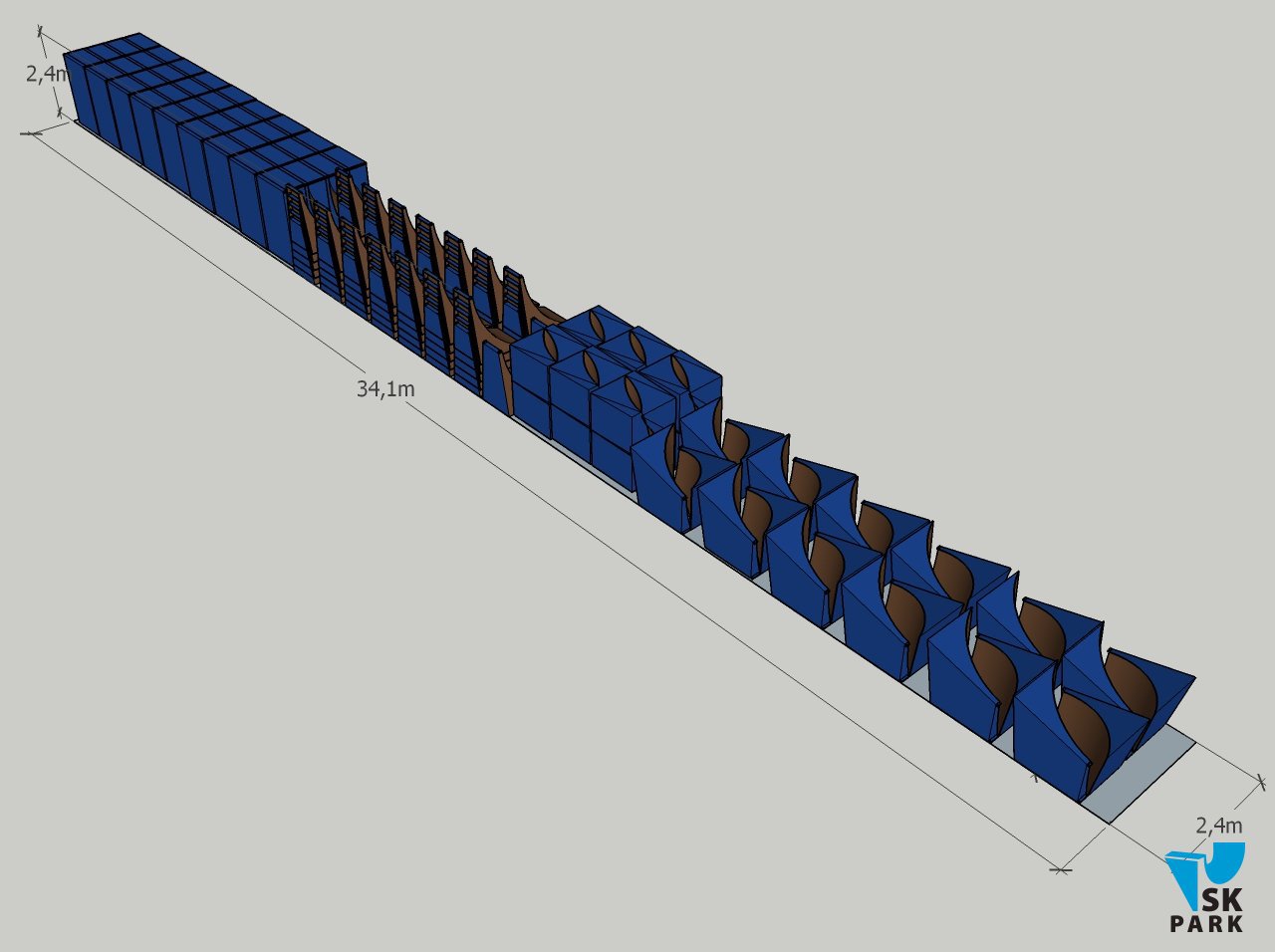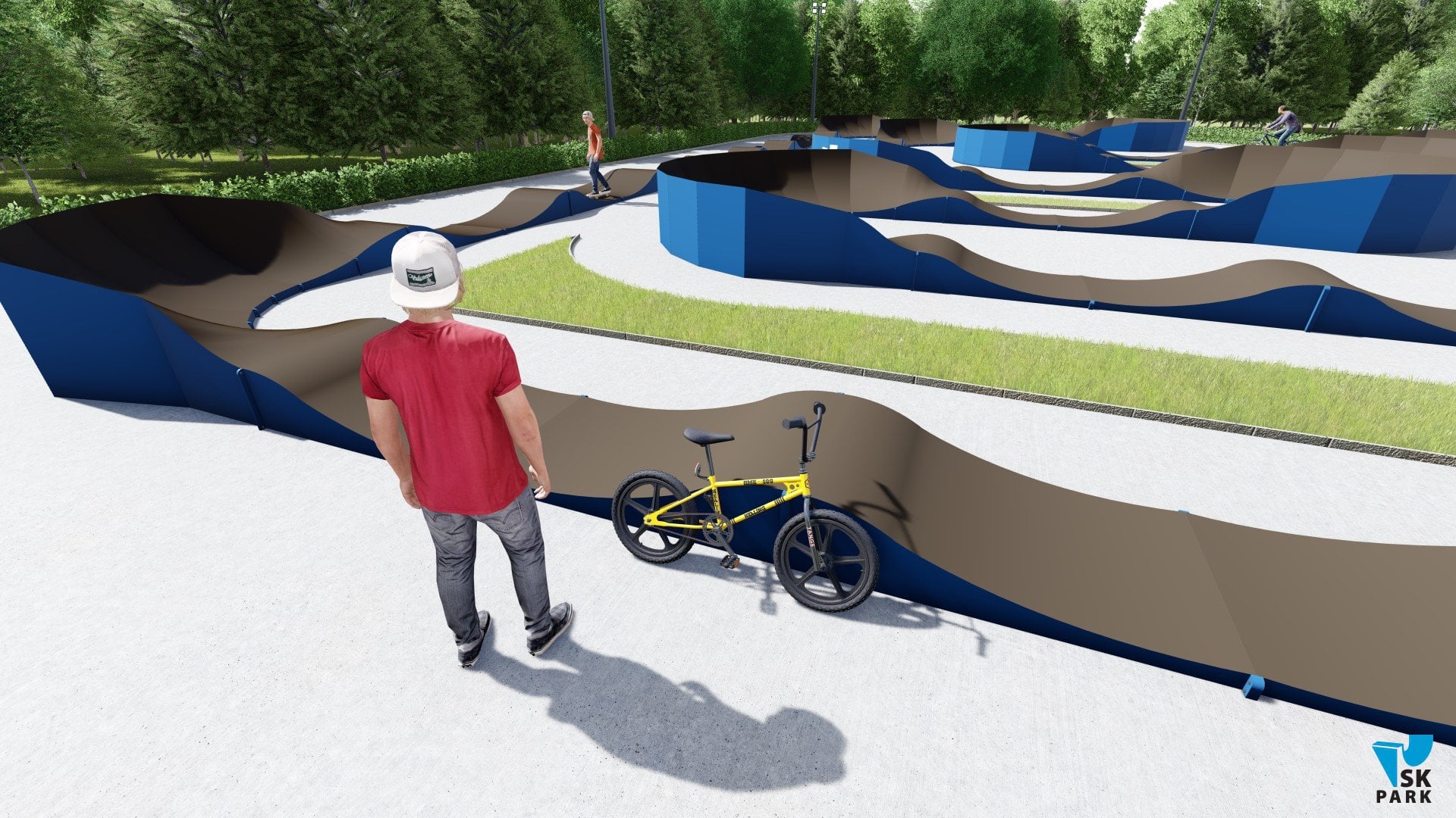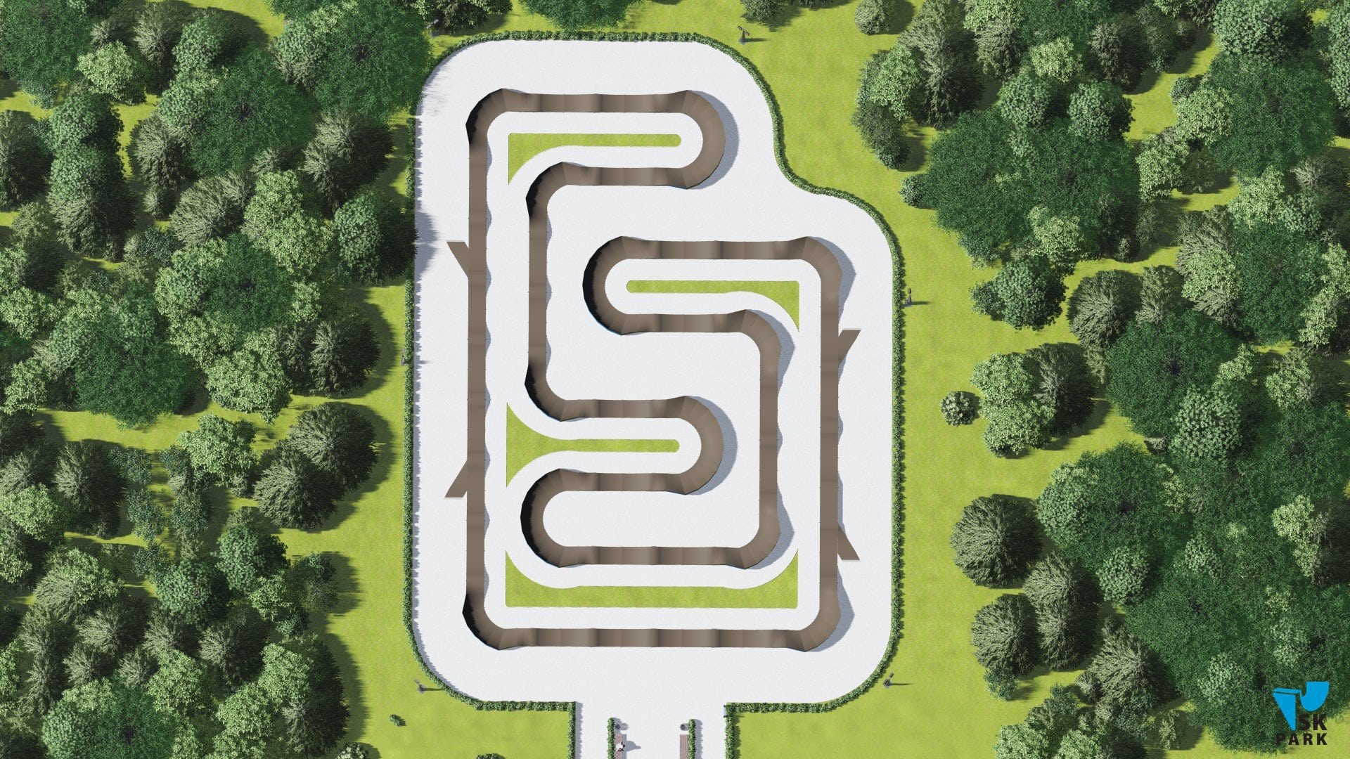 Универсальный памп трек. Подходит для любого уровня райдеров, а также для тренировки спорстменов в олимпийской дисциплине «BMX race». Памптрек предусматривает 4 поворота на 180 градусов и 8 поворотов на 90 градусов. Подходит для проведения соревнований, показательных выступлений и памп-батлов. Общая длина трассы – 216 метров. Отличное решение для спортивных объектов, парков отдыха, образовательных учреждений, жилых комплексов, а также для любых других объектов обладающих подходящей площадью.