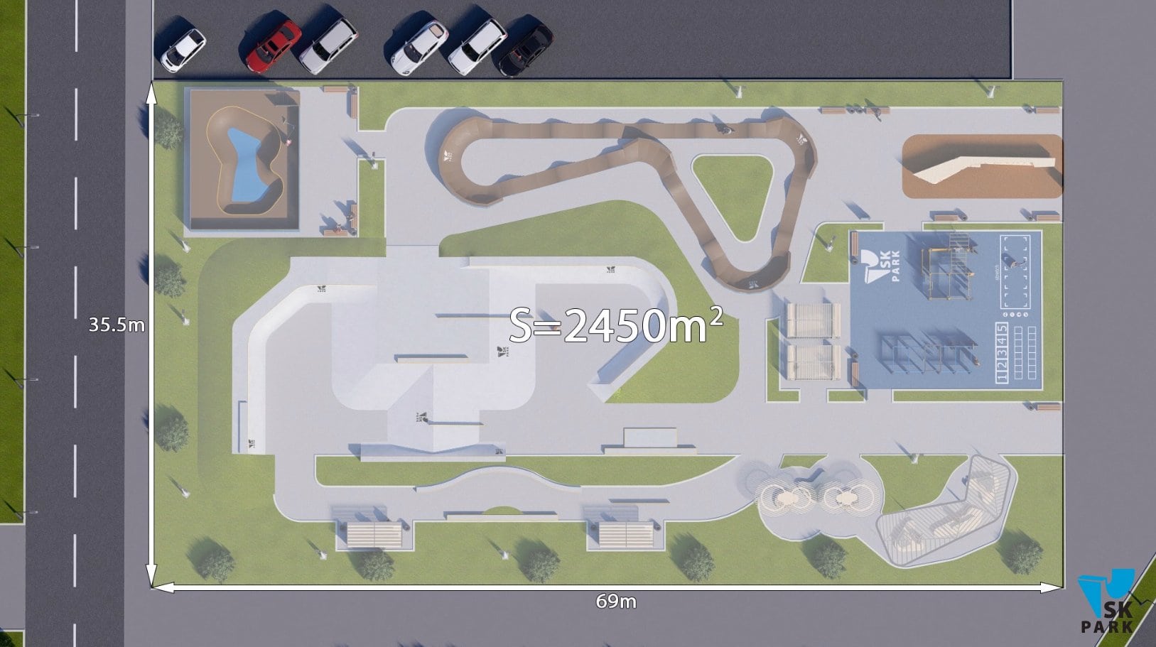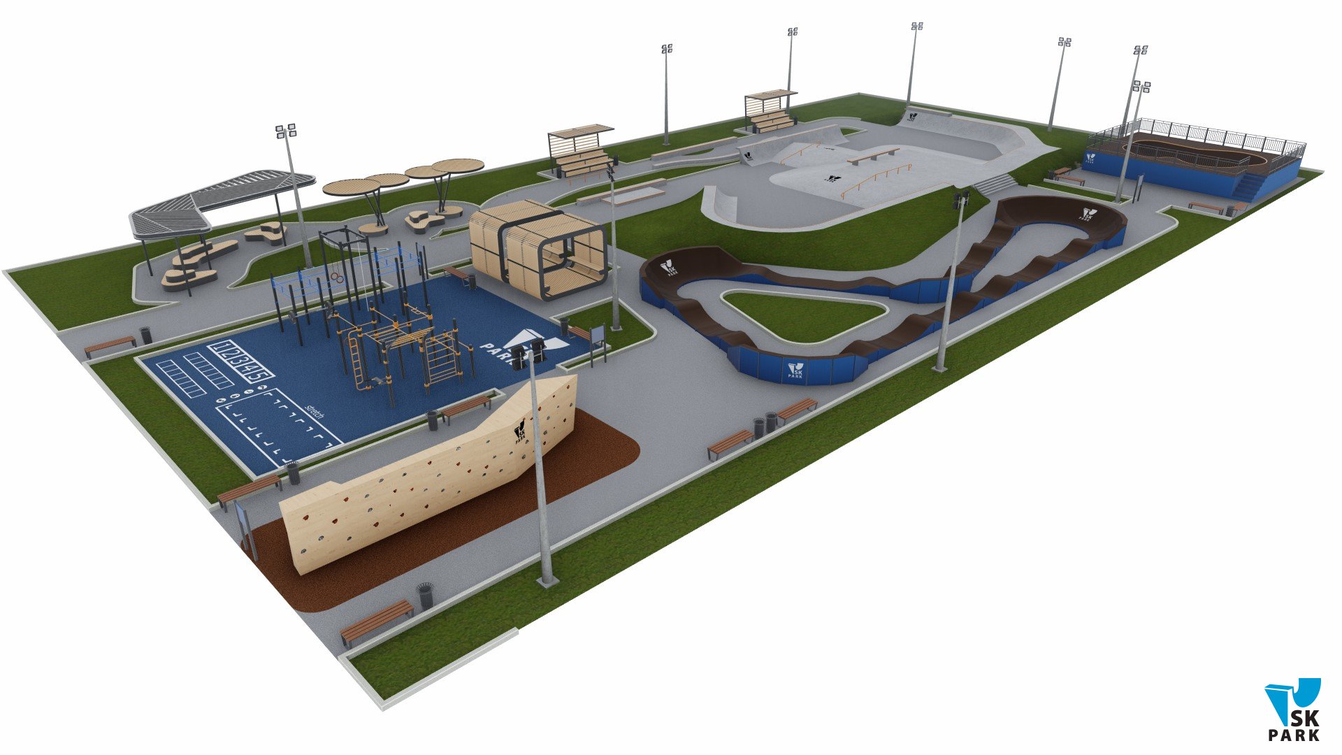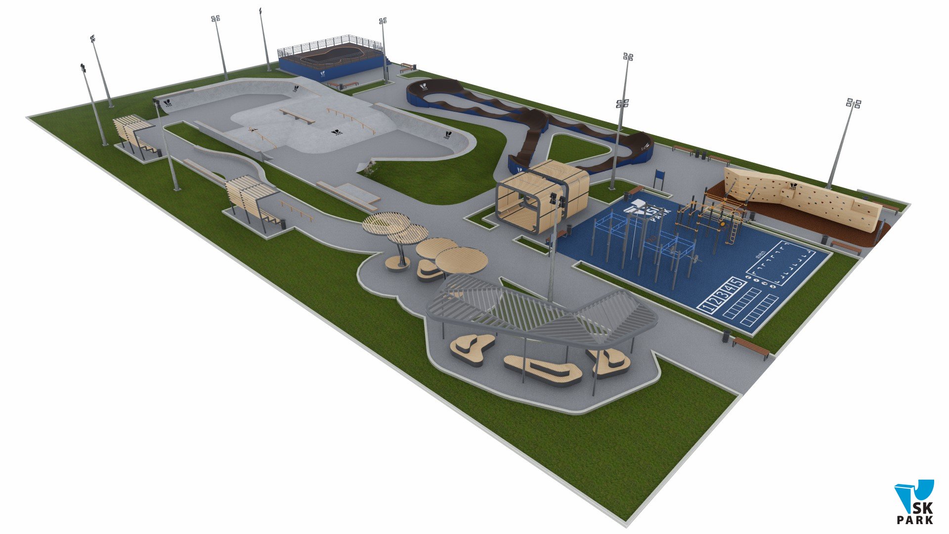Многофункциональный спортивный парк для молодежи, включающий в себя 6зон