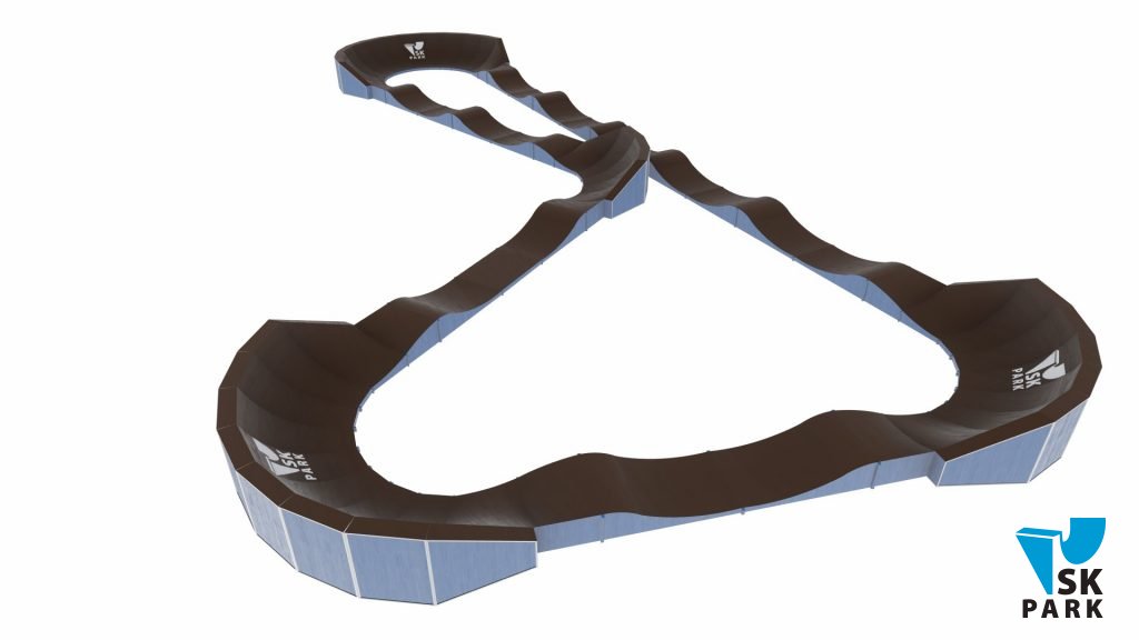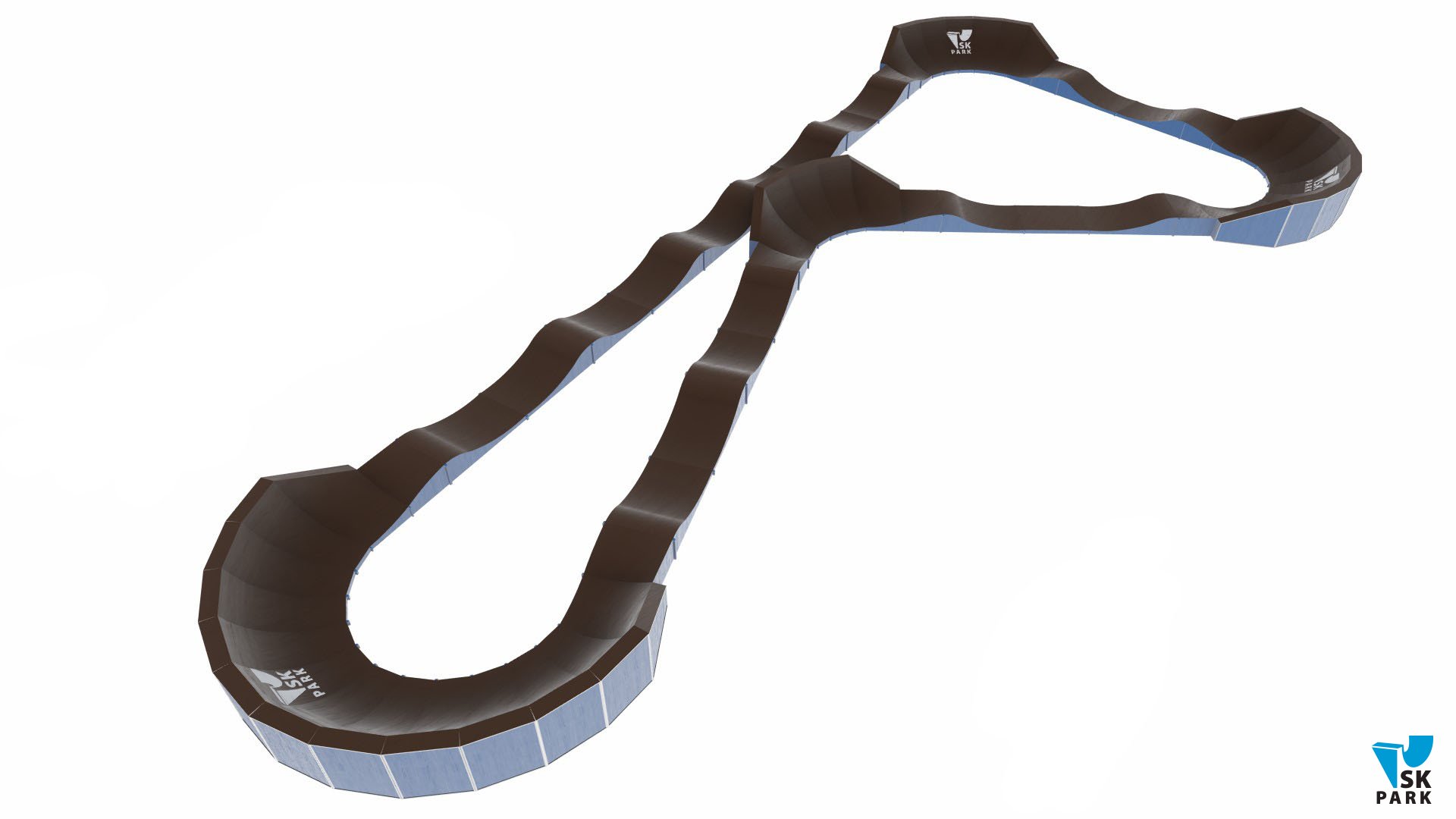 Универсальный модульный памп трек. Подходит для любого уровня райдеров. Включает в себя 4 поворота изменяющих направление движения спортсмена. Памп трек подходит для разового посещения, проведения соревнований, показательных выступлений.