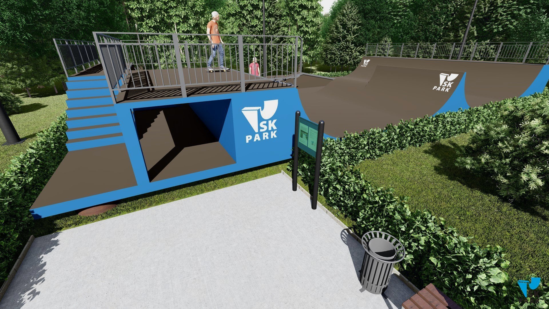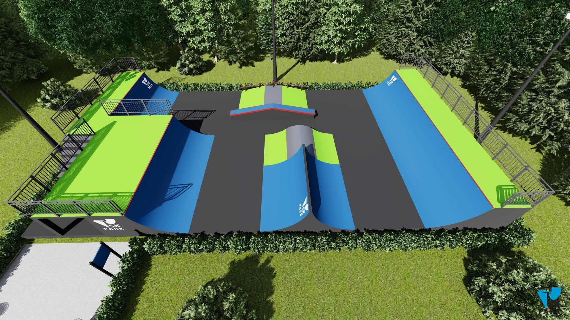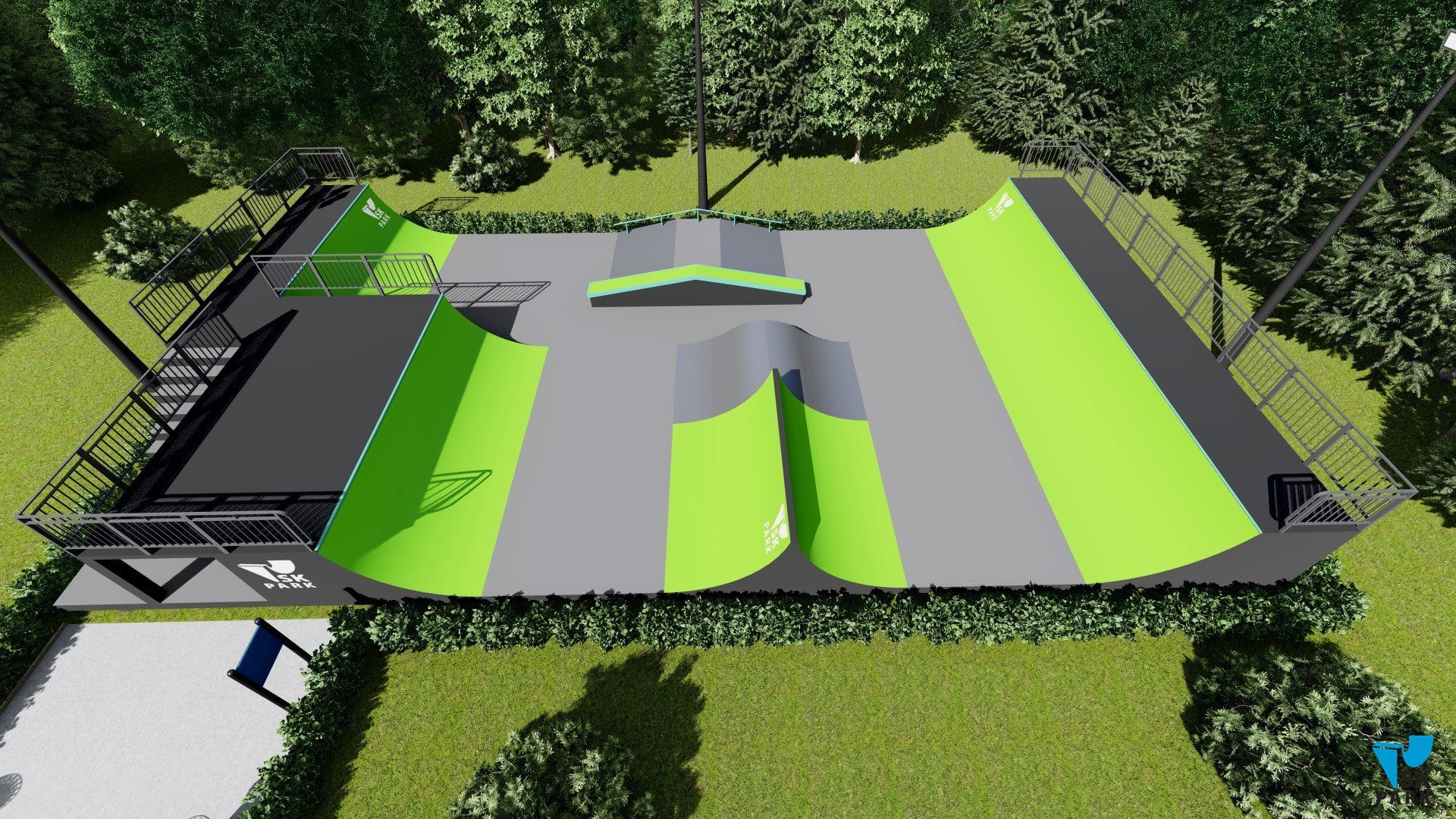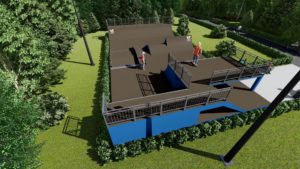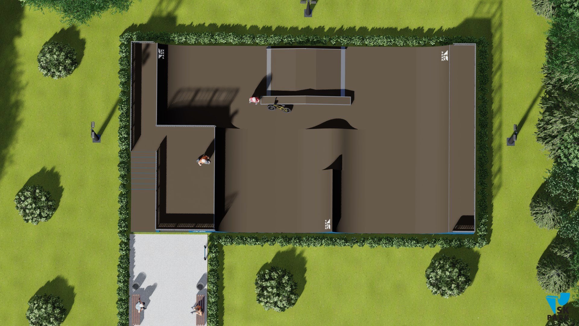Проект ориентирован для катания во всех дисциплинах с начинающим и среднем уровнем катания. В данном проекте предусмотрена двойная минирампа со спайном для тренировок в дисциплине «верт». Также в проекте скейтплазы предусмотрен классический тренировочный фанбокс «Книжка» для отработки базовых навыков по прыжкам и скольжениям.