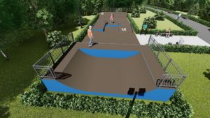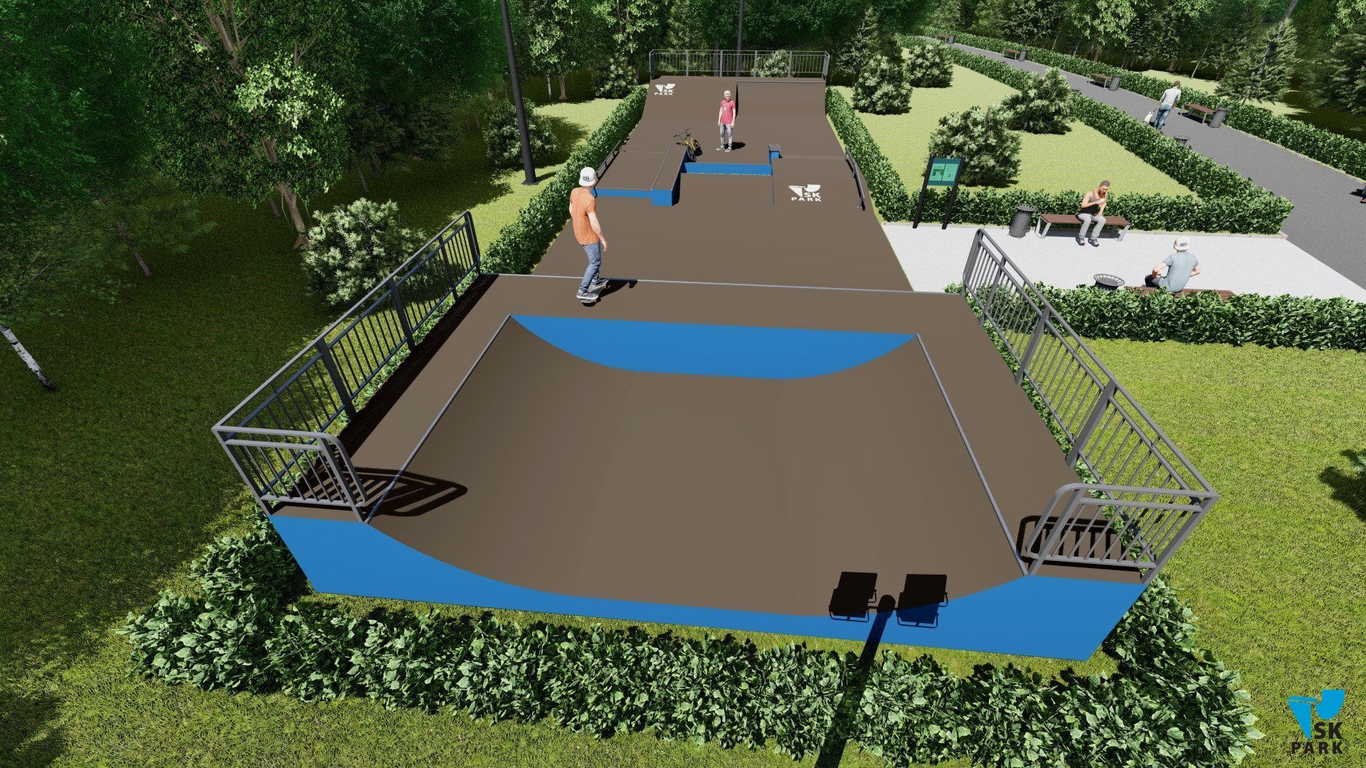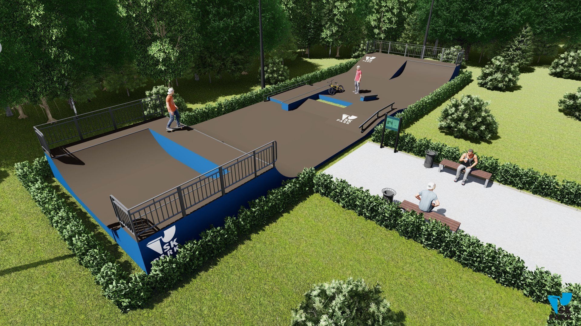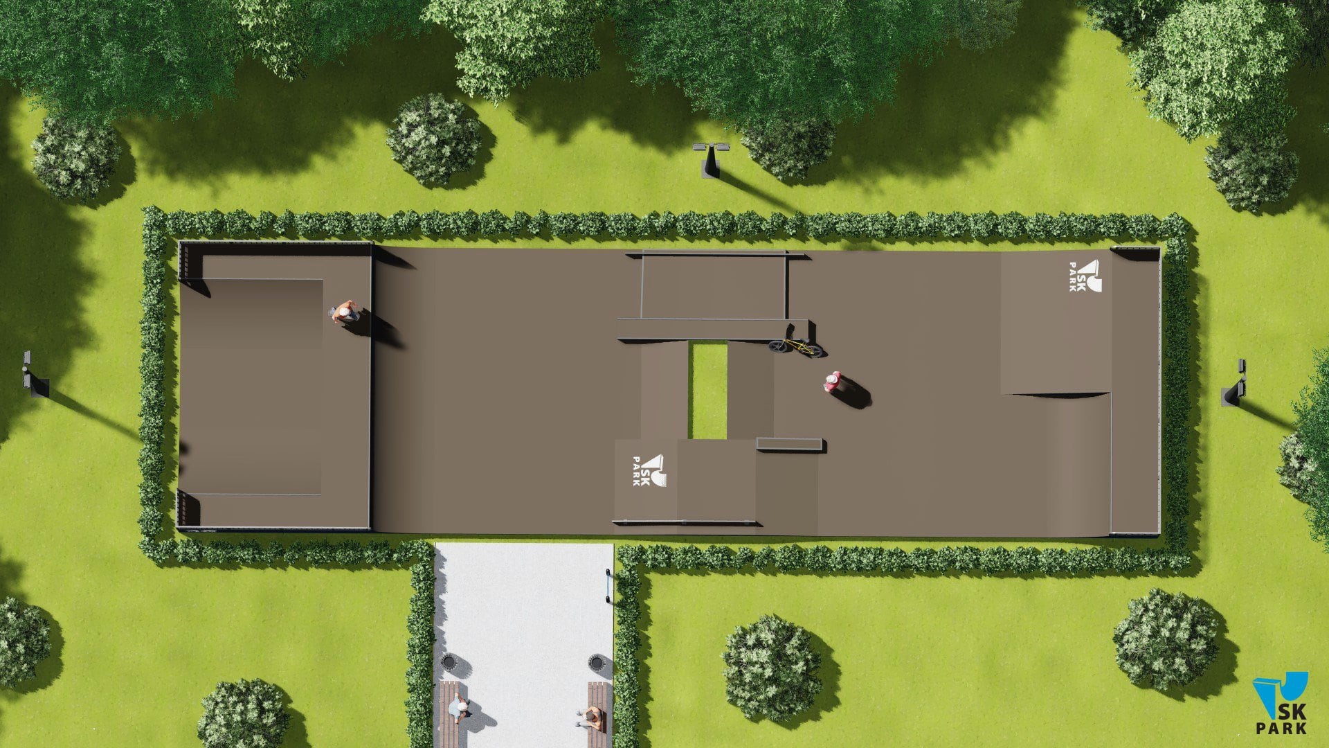 Проект ориентирован преимущественно для катания на скейтборде, для райдеров с начинающим уровнем катания. На скейт плазе предусмотрены фанбокс и мэнуалпэд с грайндбоксом для изучения базовых трюков по прыжкам и скольжениям. Для тренировок в дисциплине верт предусмотрена минирампа шириной - 7,32м и высотой – 1м. Также оборудование для скейтпарка подходит для катания на роликах и кик скутере.