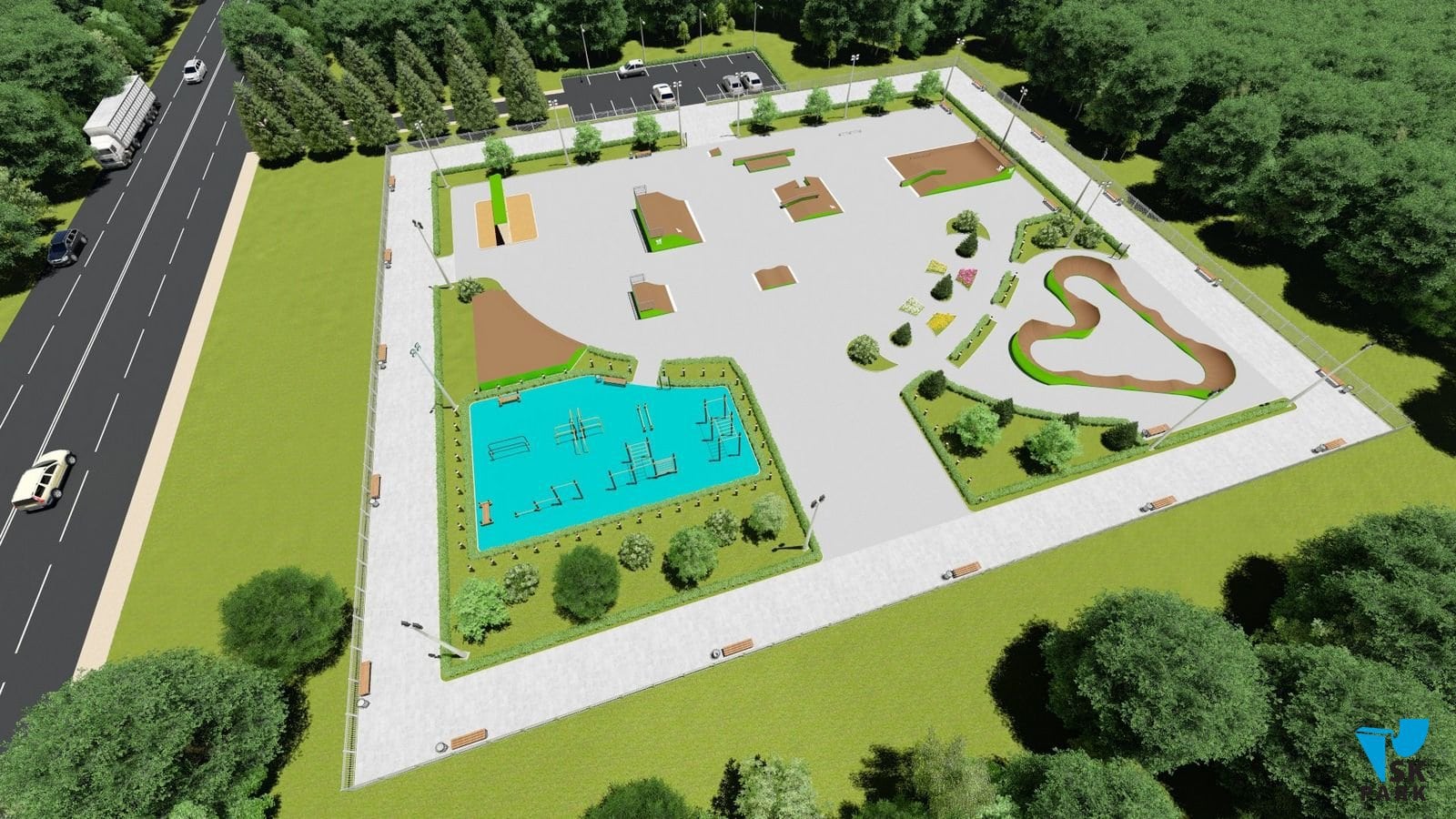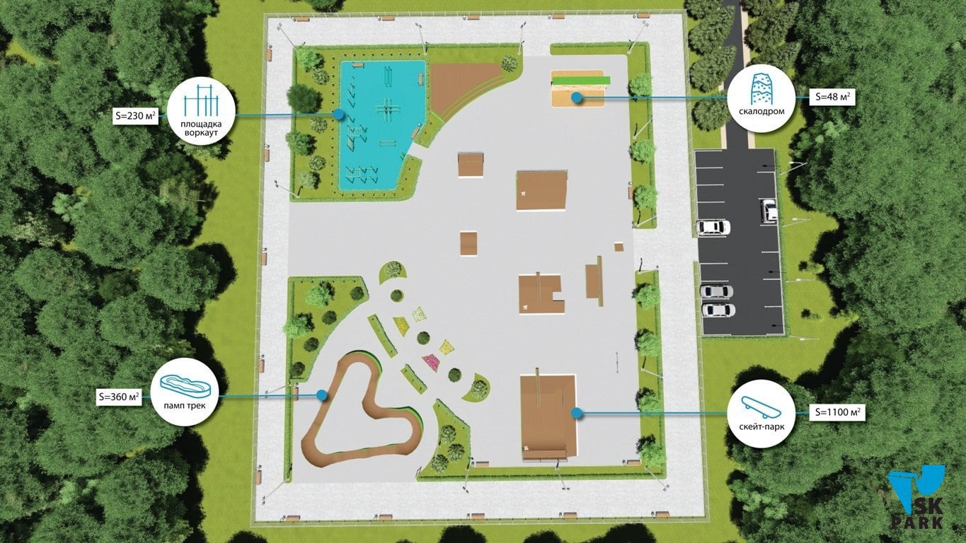 Многофункциональный спортивный парк для молодежи, включающий в себя 4 зоны: