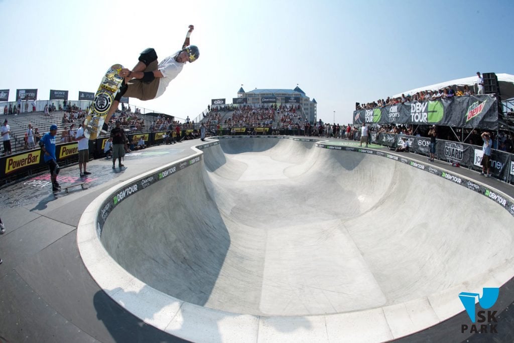 Плюс боула в том, что внутри него можно комбинировать абсолютно все фигуры, которые позволяют делать различные типы трюков. Это и радиусные трюки (стейлы) и скольжения по коупингу, и эир (прыжковые трюки) в радиусах, вылеты из радиусов, трансферы (перемещение из одной чаши в другую). В бассейне могут находиться спайн, вулкан, и даже флайбокс. Въезд в такую конструкцию может стать разнообразнее благодаря конструкции "ролл-ин" - этакого плавного заезда в него без коупинга.