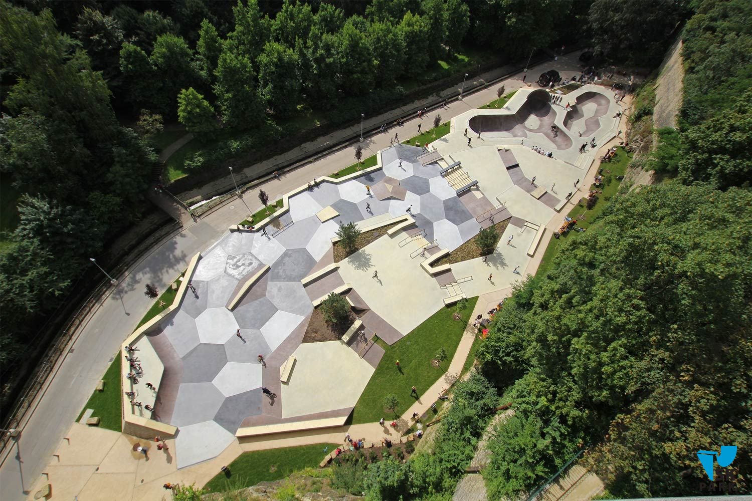 Данный тип скейт-парков, также можно свободно совмещать со стрит секциями (скейт-плазами), флай линиями, боулами и скейк ранами, что также делает их довольно универсальными.