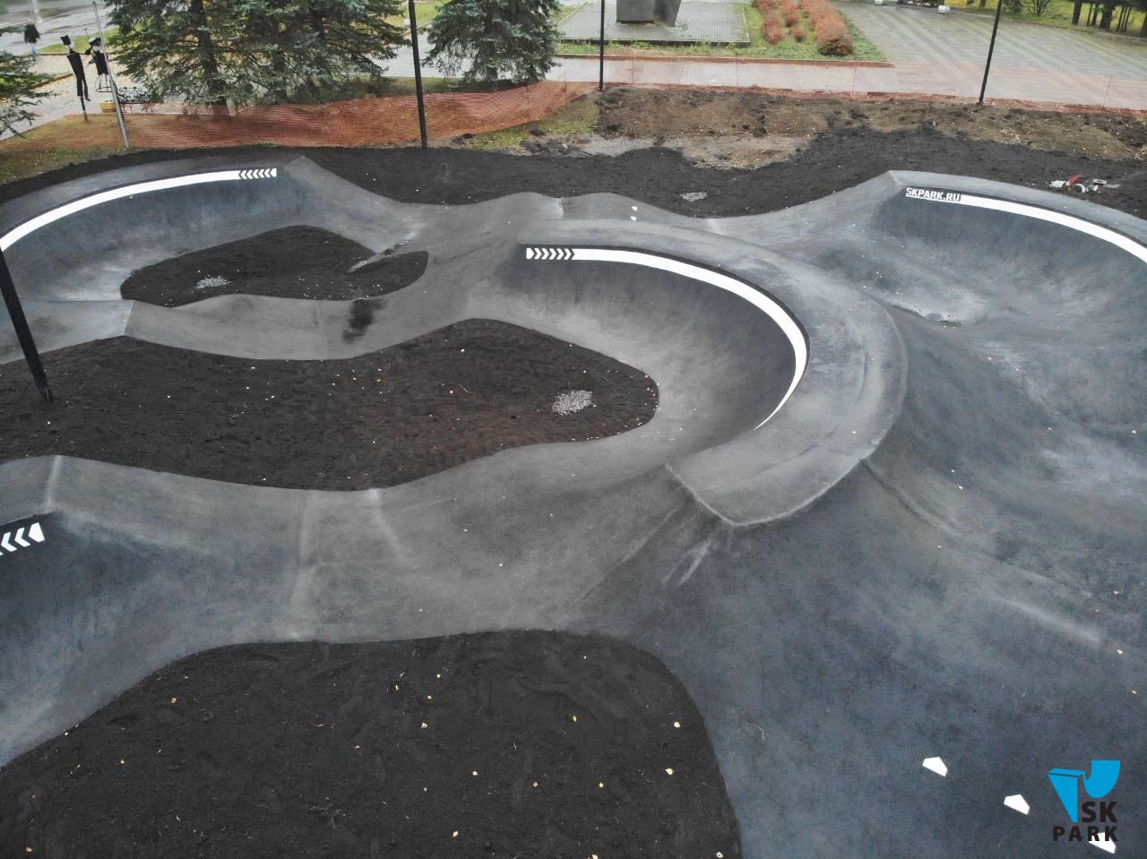 Новый асфальтовый памп-трек находится в границах улиц ул. Космонавтов, ул. Мира и ул. Володина.