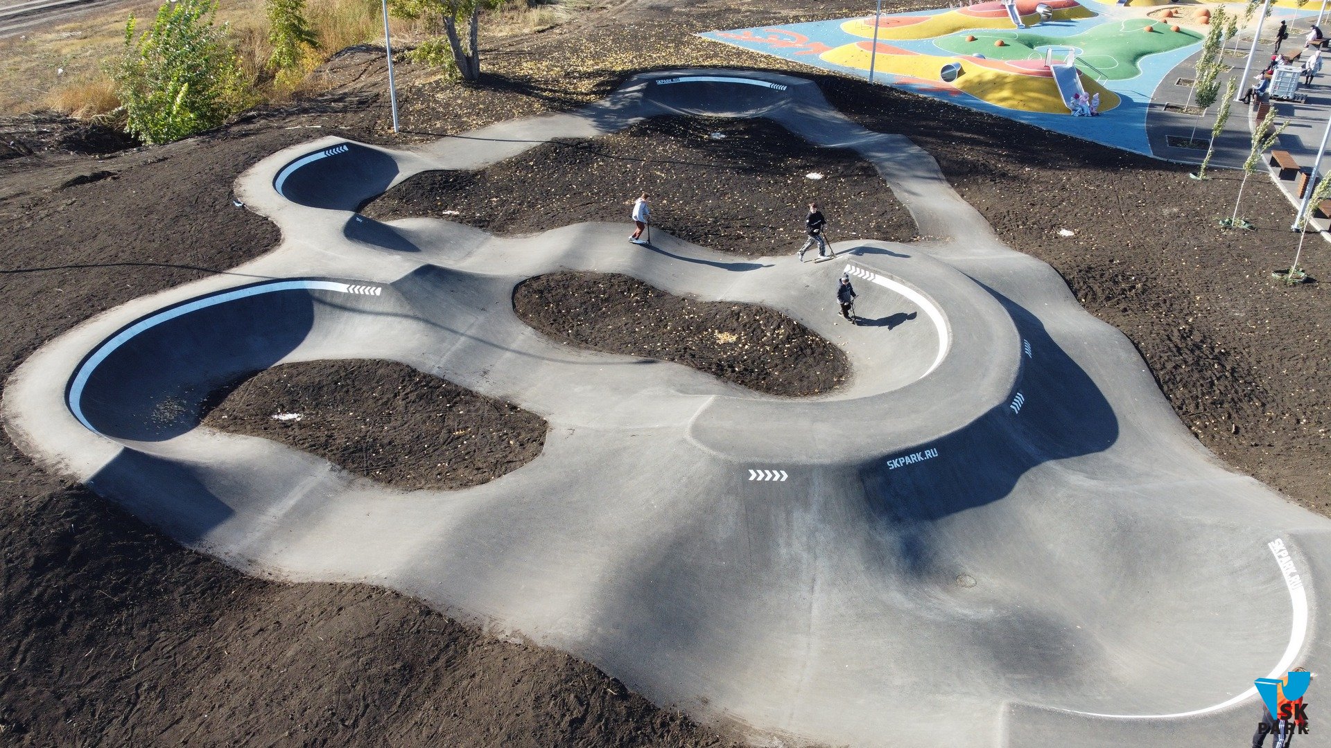 Новый асфальтовый памп-трек в Магнитогорске построен в рамках благоустройства территории в парке «Южный». Специалисты компании SKpark разработали индивидуальный проект, подготовили рабочую документацию стадии “Р” и провели весь комплекс работ "под ключ".