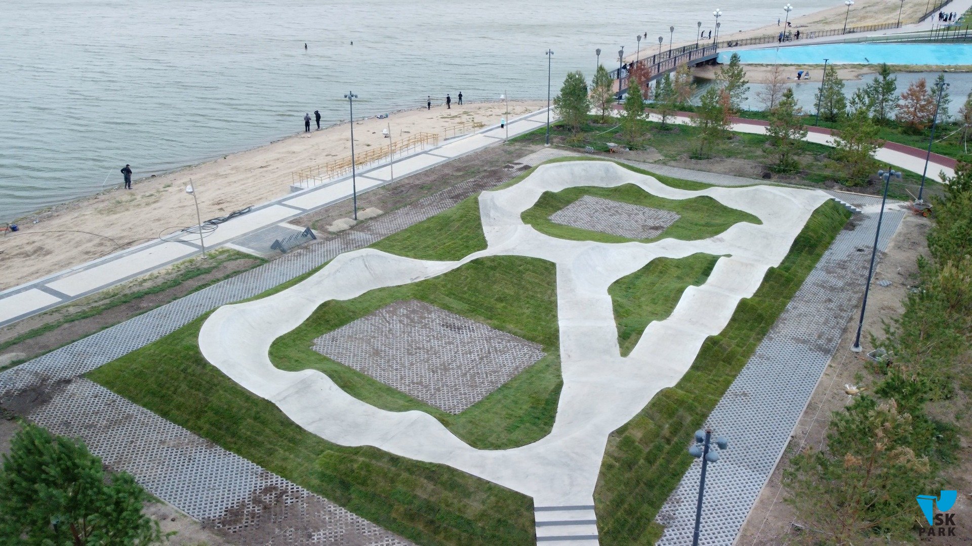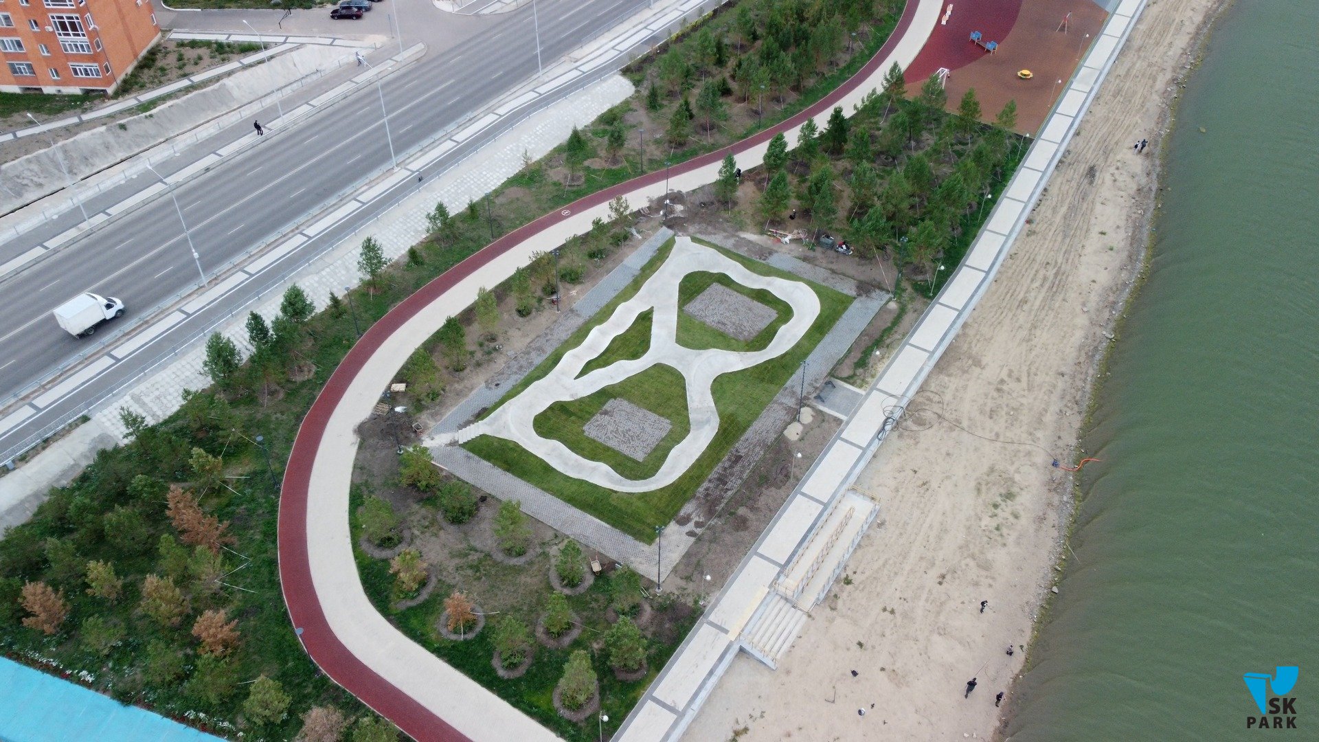 В 2025 году в компанию SKpark обратился представитель Казахстанской компании ТОО “Наш-Двор.kz” c задачей разработки проекта памп трека на территории набережной возле озера Копа в г. Кокшетау. После утверждения концепции и разработки рабочей документации объект был успешно реализован компанией SKpark в 2025 году.