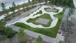 Данный памп-трек — это трасса с кочками, поворотами и контр-уклонами, предназначенная для катания на велосипедах BMX/MTB, скейтборде, роликах, самокате, для райдеров всех уровней, и подходит для индивидуальных тренировок, групповых занятий и локальных соревнований.