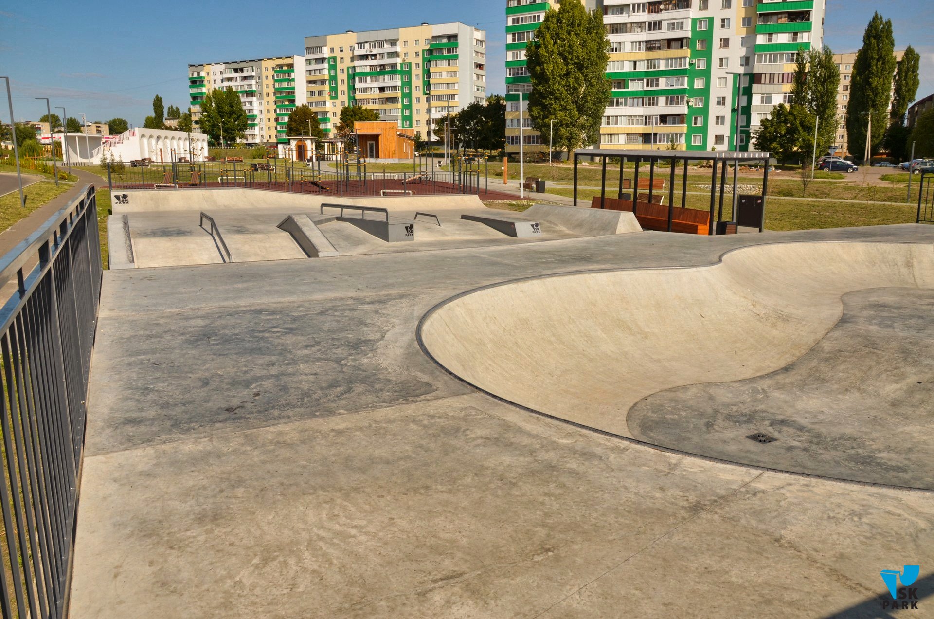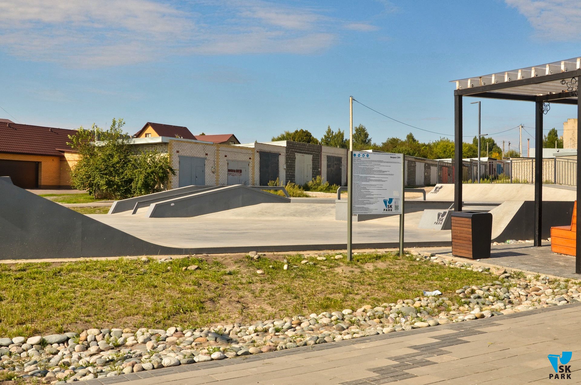 Скейт парк площадью 650 кв.м. состоит из двух зон — это боул и сектор для катания в дисциплине "Стрит". Двухуровневый боул сам по себе является полноценной скейт площадкой и ориентирован на катание в дисциплине скейтбординг "парк". Наличие плавного въезда позволяет новичкам осваивать базовые навыки, а более опытные райдеры могут оттачивать связки трюков ограничиваясь лишь собственной фантазией и уровнем мастерства. Двухуровневая Стрит-зона оснащена базовыми фигурами для катания в стиле "стрит", а также малой и средней хаббами.