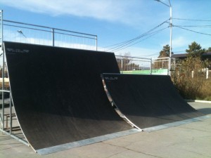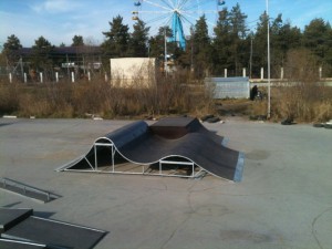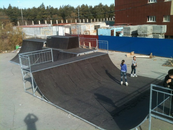 Индивидуальный проек тпарка, включает в себя 8 фигур: Квотер с Воллрайдом, Флай-бокс с губой, Двухуровневый квотер, мини халф-пайп, серия мэнуал боксов, рейл, грайнд-бокс, квотер