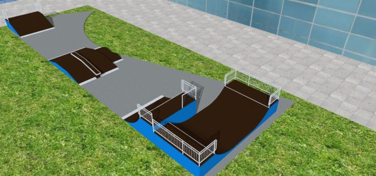 Территория скейт парка может вместить в себя одновременно до 15 человек. Скейтборд площадка понравится экстремалам начинающего и среднего уровня. Райдеры на скейтборде, роликах, кик скутере могут отточить уже приобретенные навыки, а также попробовать что-то новое, более сложное. В скейт парке есть все базовые фигуры: разгонный бэнк, фанбокс с прямым и наклонным грайнд боксом, две волны для различных трансферов, квотер, а также минирампа, которую можно использовать и в качестве мэнуал пада. Данный объект создан по индивидуальному проекту и адаптирован под нестандартную площадь. По желанию заказчика оборудование было изготовлено на деревянном каркасе(стационарный вариант).