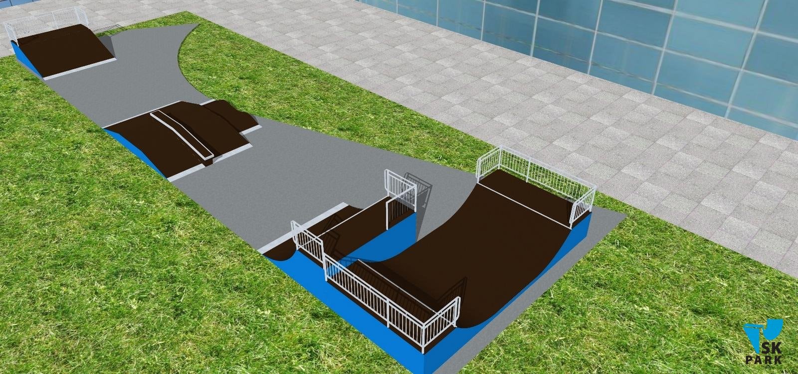 Размер скейт площадки: 30м х 12м