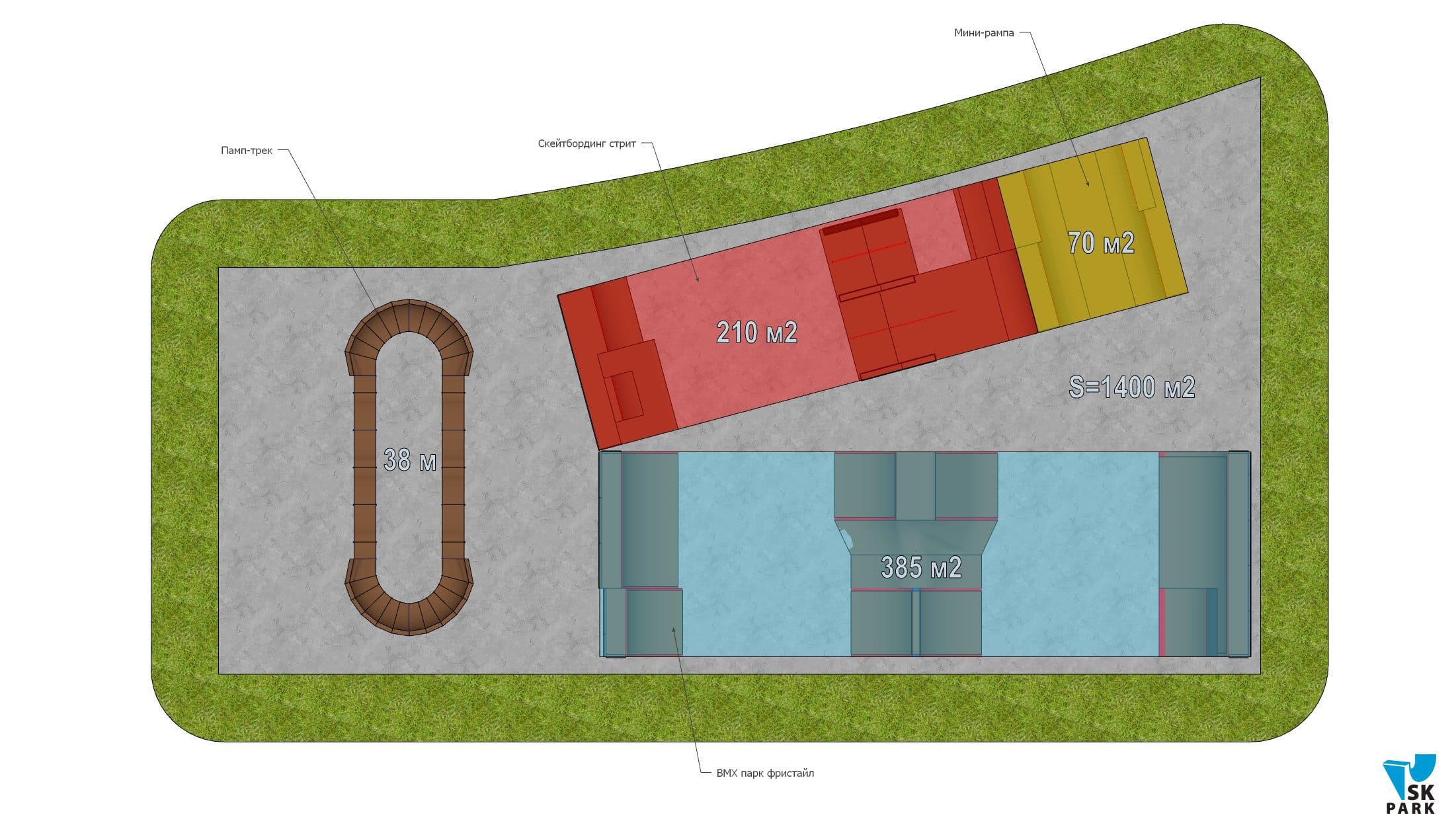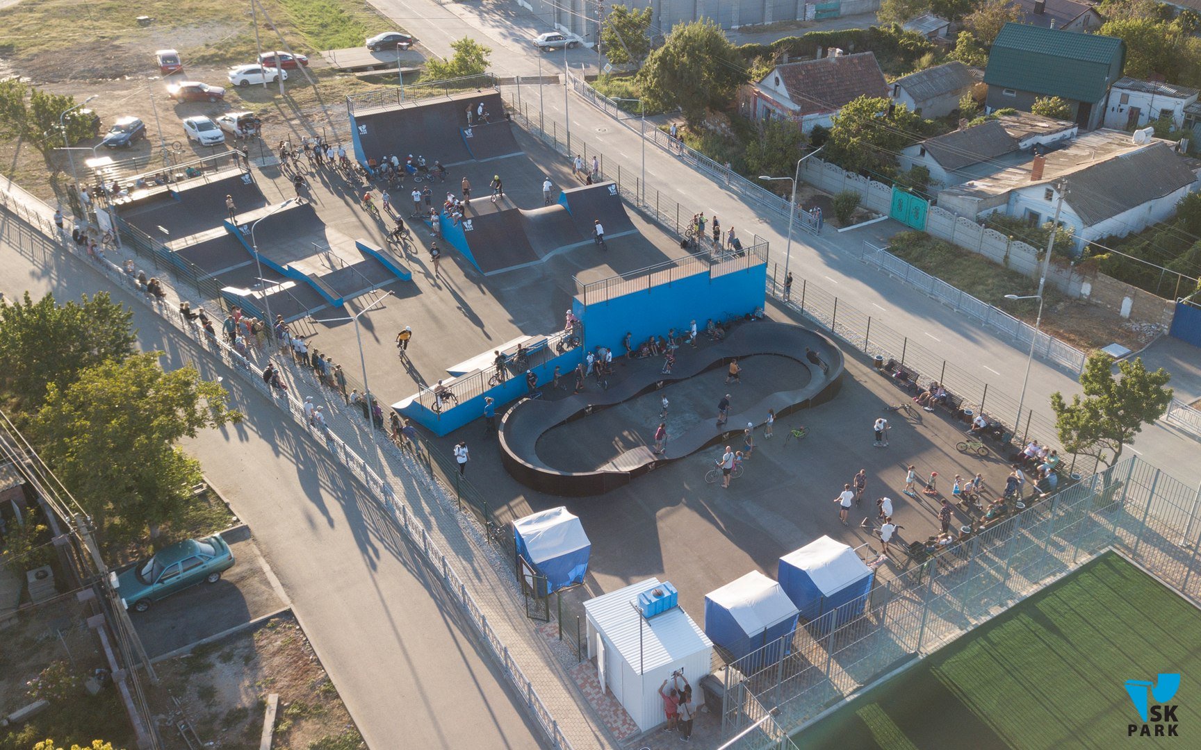 В крымском городе Саки компания SK PARK завершила монтаж парка для экстремальных видов спорта с зоной для велосипедных дисциплин и зоной для скейтбординга, а также памп трека.