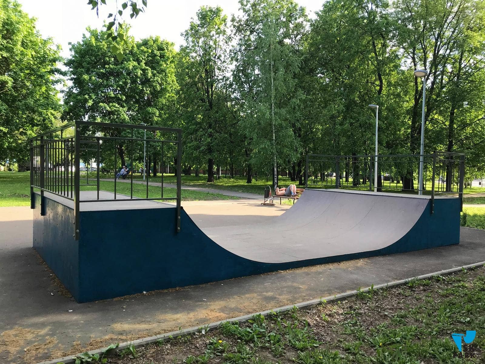 Райдеры начинающего уровня оценят небольшую рампу, окруженную аллеями, деревьями и лавочками для отдыха. Конструкция подходит для экстремалов, катающихся на скейтборде, роликах, кик скутере. Оборудование изготовлено на деревянном каркасе собственного производства компании.