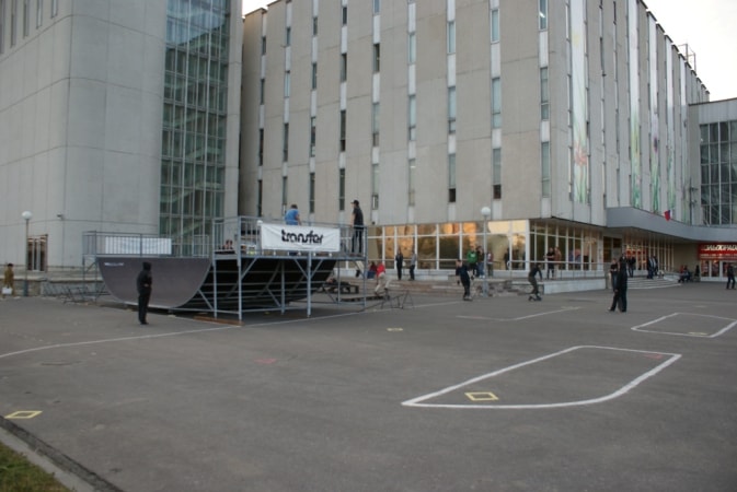 Оборудование стоит у ЦУМ Северодвинска, в котором находится скейтшоп “Трансфершоп”.
