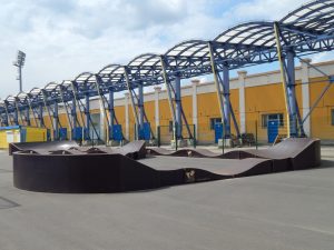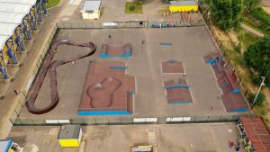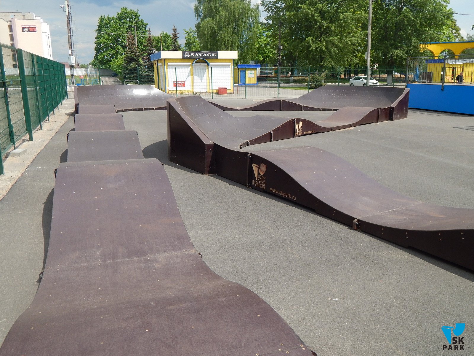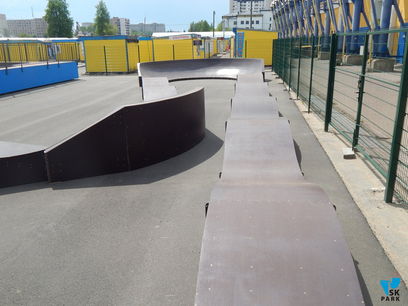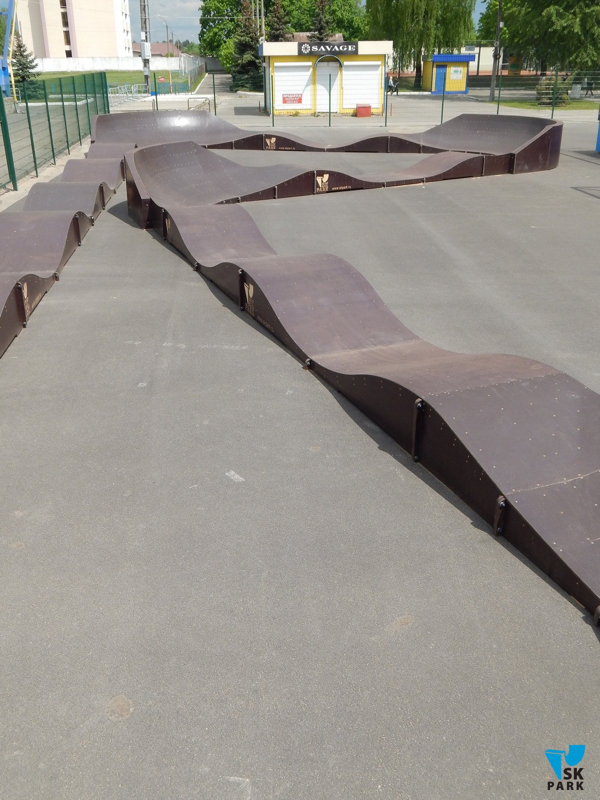 федерации. В 2019-м году к нам обратился представитель Отдела спорта и туризма Борисовского районного исполнительного комитета (респ. Беларусь) с предложением о сотрудничестве в рамках благоустройства территории городского стадиона. Ранее, на территории прилегающей к стадиону компанией SKPARK было начато строительство крупного, многофункционального комплекса площадью 800 кв. м., осуществляемого в несколько этапов. В порядке второй очереди, было принято решение дополнить уже существующий скейт парк памп-треком (SKP 29-13) и мини-рампой (М2) из нашего каталога.