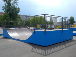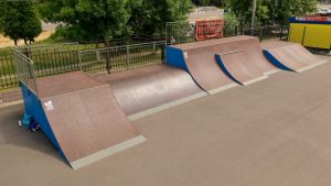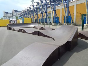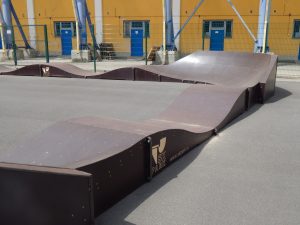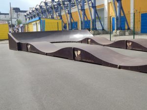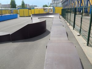 К уже ранее установленному нами скейт парку, площадка была дополнена памп треком и мини рамппой.