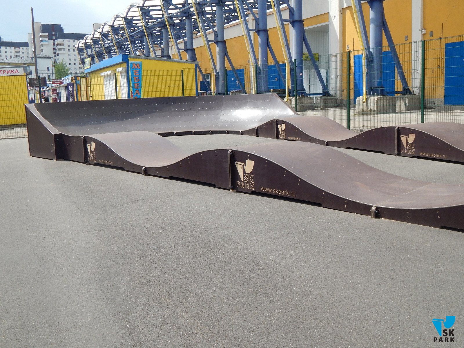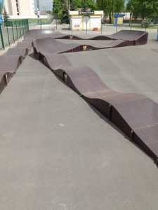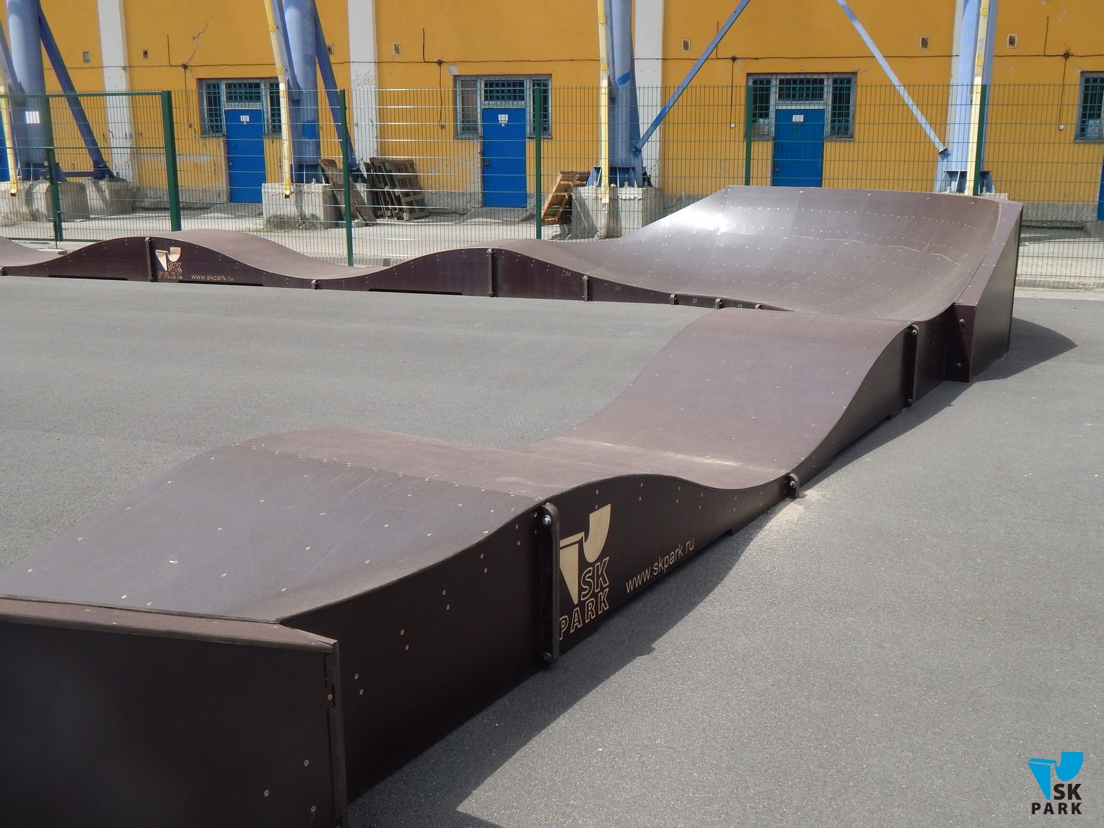 Памп-трек, как и минирампа предназначены для катания на скейтборде, роликах, кик скутере и BMX и вмещают до 8 райдеров начального и среднего уровня.