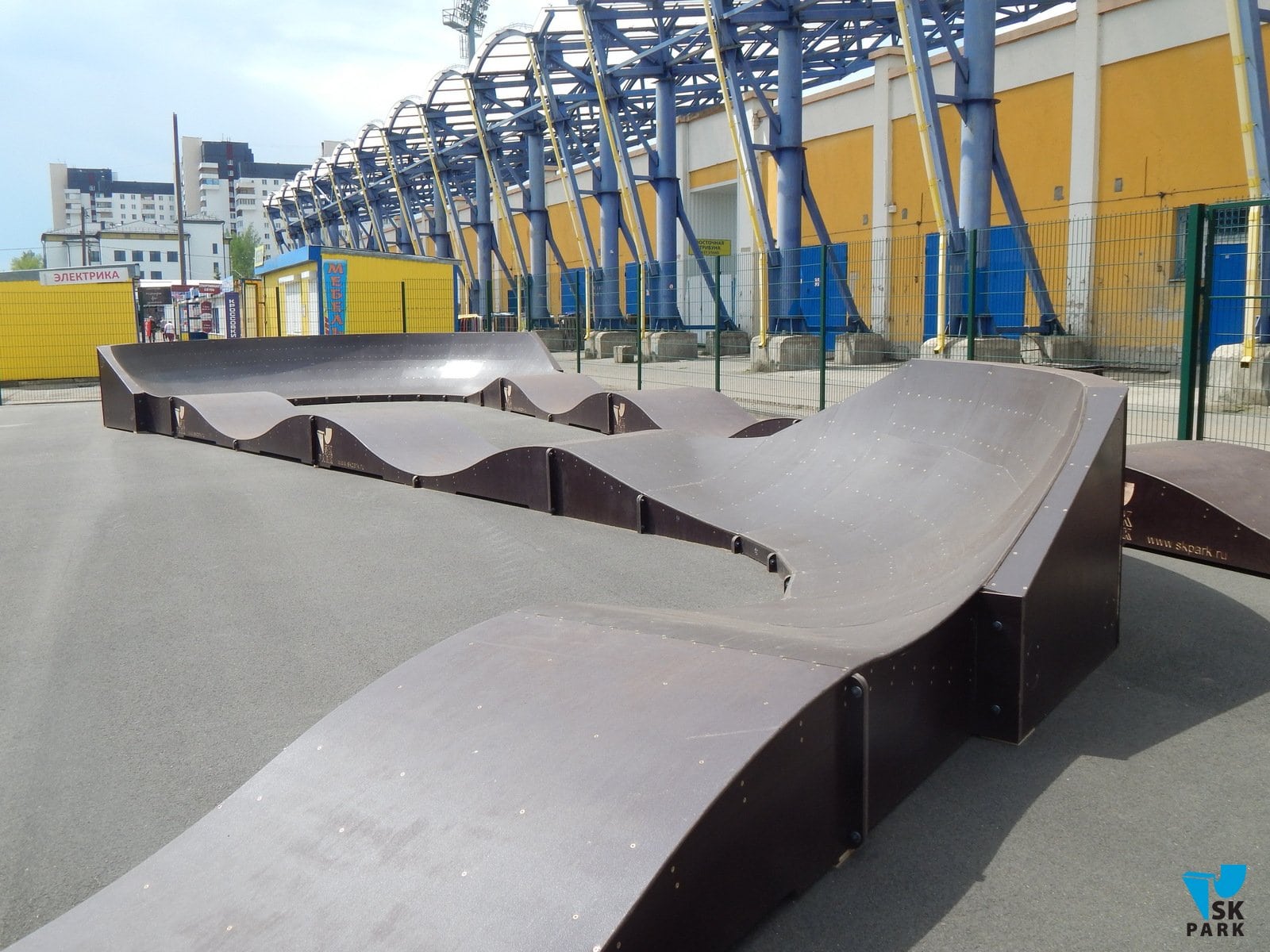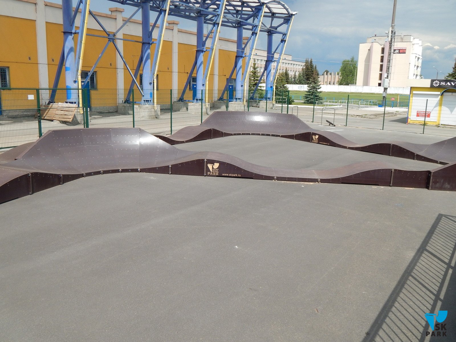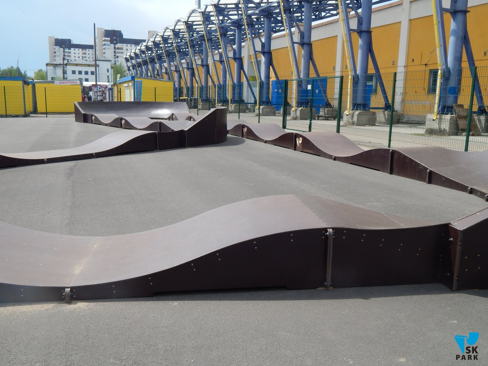 Компания SKPARK осуществила разработку проекта, а так же обеспечила производство, поставку и сборку памп-трека и мини-рампы.