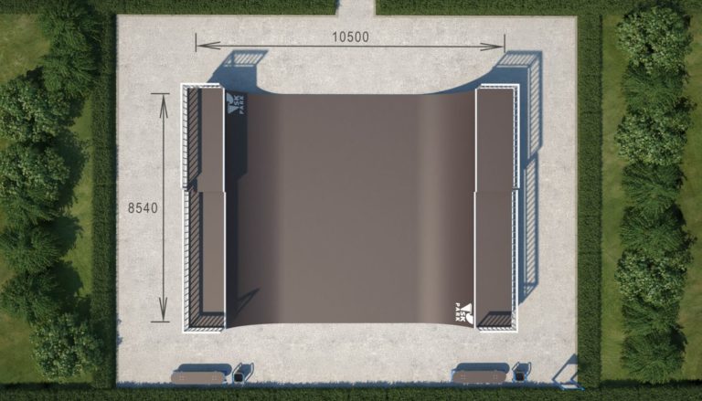 На объекте не было запланировано подготовки твердого основания в виде асфальтированной площадки или бетонного пола, поэтому установка двухуровневой мини рампы стала идеальным решением, ведь её конструкция может быть размещена на любой ровной поверхности.