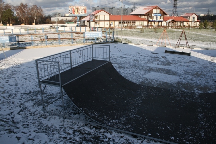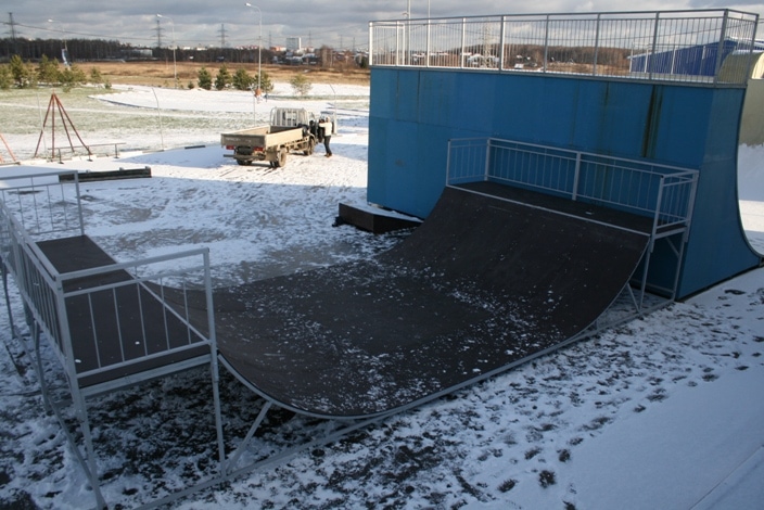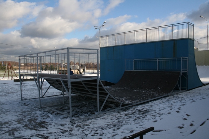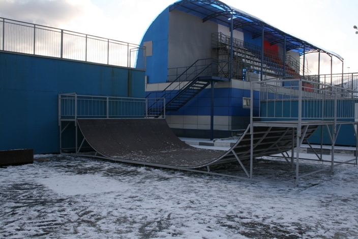 В середине ноября 2011 г. наша компания изготовила и установила мини-рампу на территории УДО «Русская горнолыжная школа-Столица».Мини рампа изготовлена из металлического каркаса, обшитого финской ламинированной фанерой.