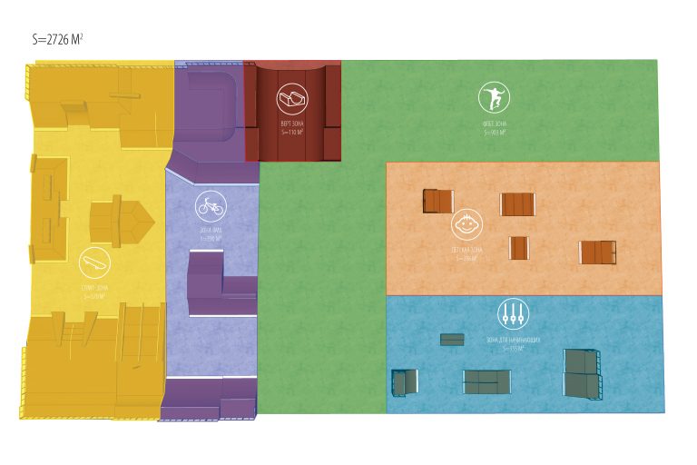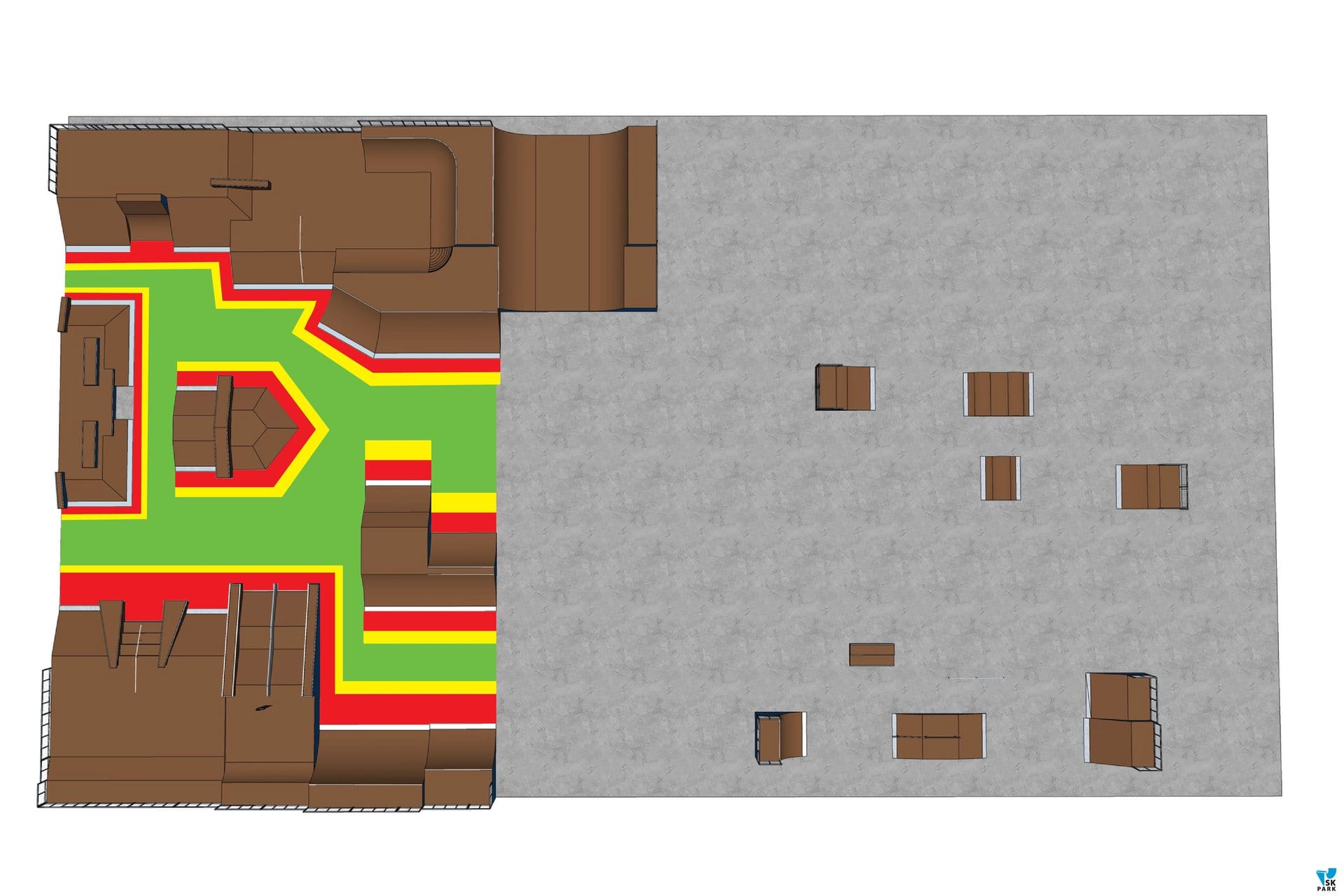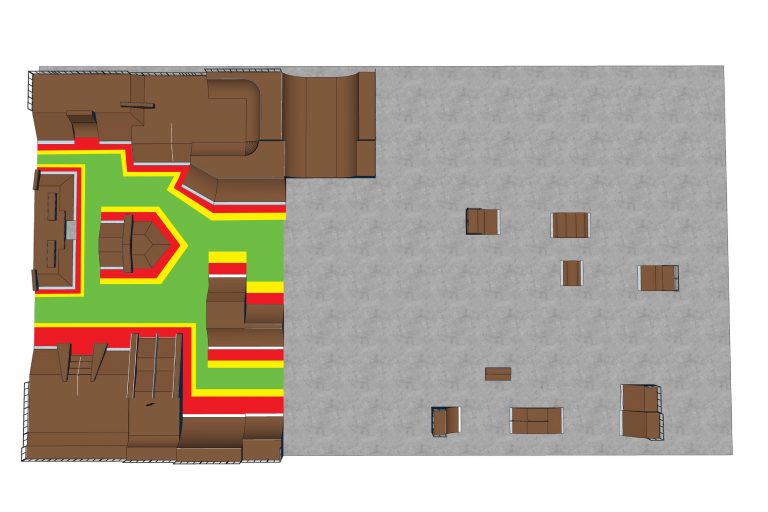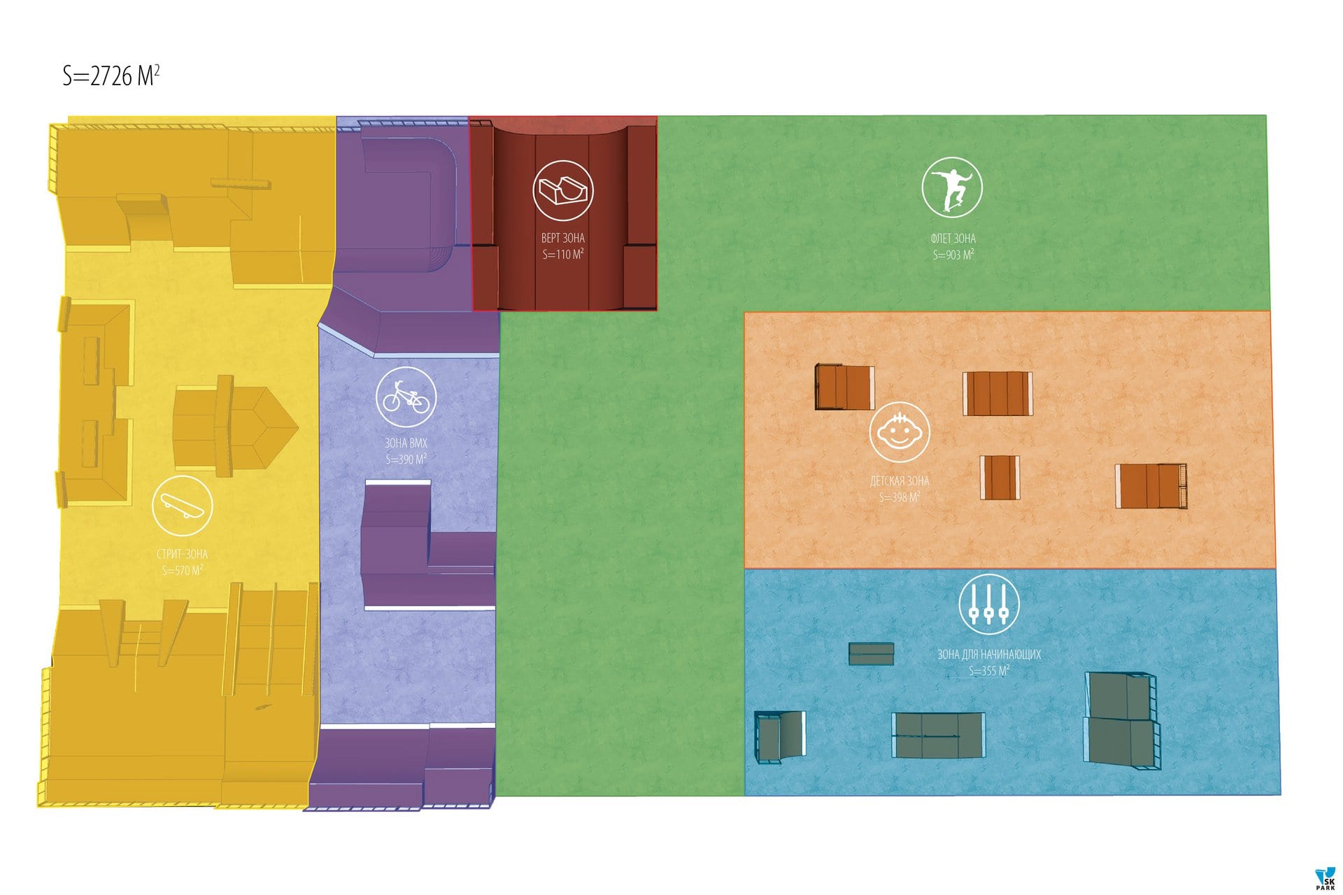 Дополнительно можно выделить флэт-зону площадью 903 кв. м., где можно кататься на BMX в дисциплине «Флэтлэнд», или разучивать трюки на ровной поверхности на скейтборде, кик скутере, роликах, не мешая при этом остальным райдерам.