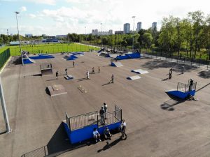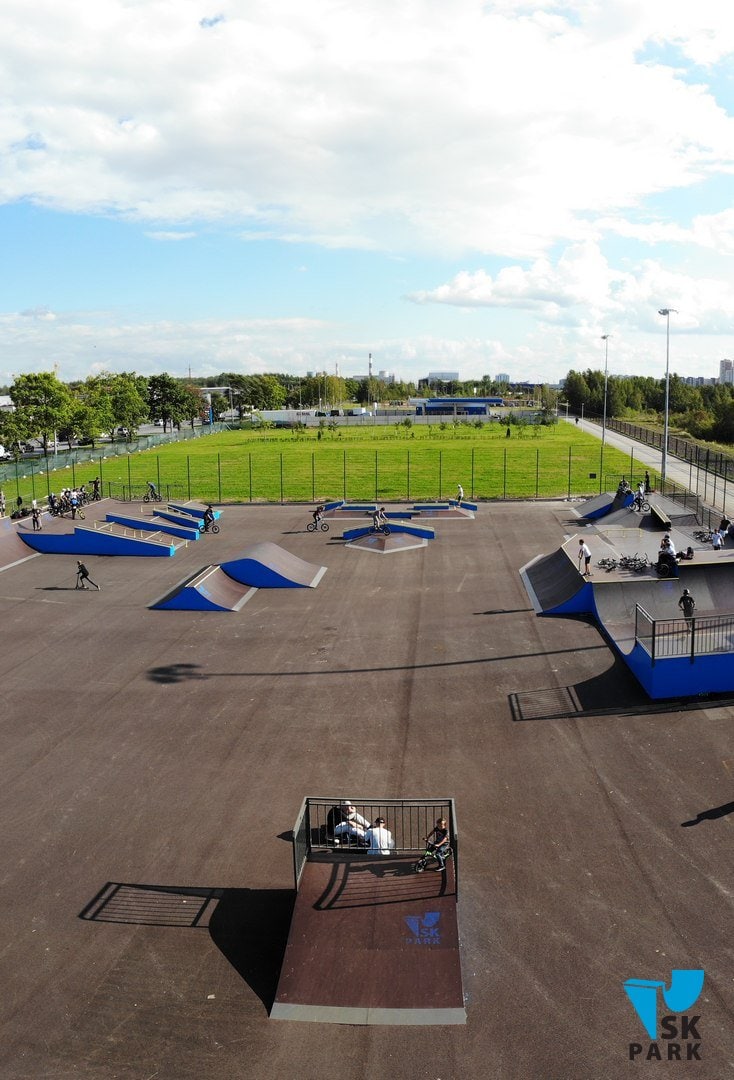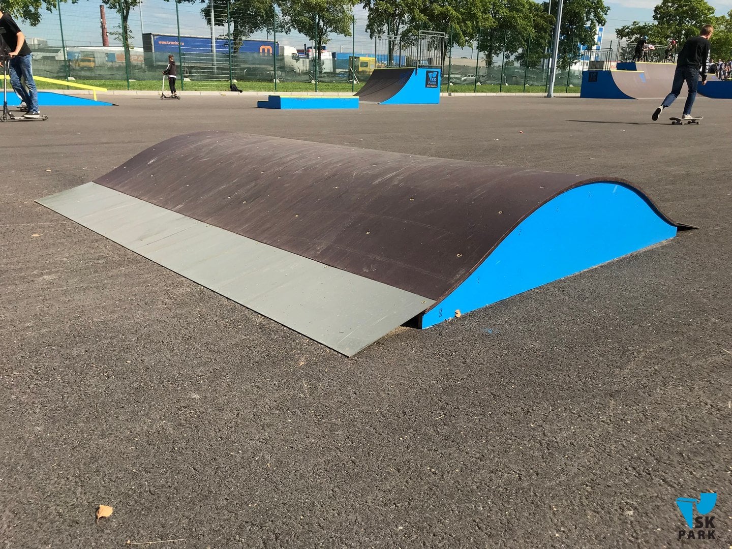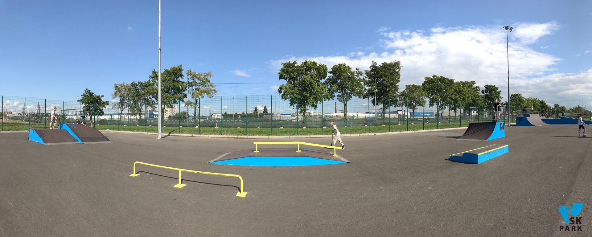 Скейт парк, расположенный на 2700 кв. м. создан для таких дисциплин как скейтбординг, ролики, кик скутер, BMX/MTB и вмещает до 60 одновременно катающихся райдеров, начального и среднего уровня, но предусмотрена зона и для тех, кто желает попробовать себя в экстремальном спорте впервые. Все оборудование соответствует мировым стандартам безопасности и создано для максимально комфортной эксплуатации. Основу большинства фигур скейт парка составляет деревянный каркас, обшитый финской ламинированной фанерой, на рабочую плоскость фигур нанесено рифление, по периметру всей площадки установлено металлическое ограждение.
