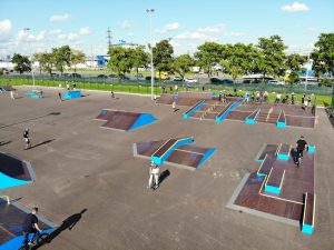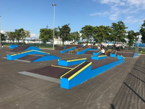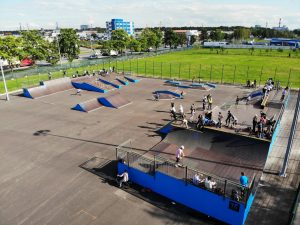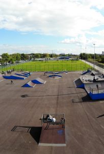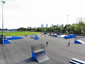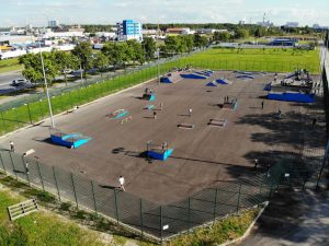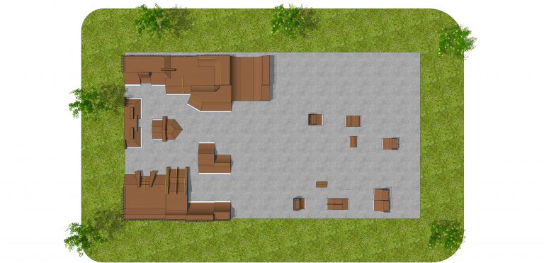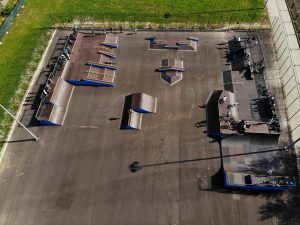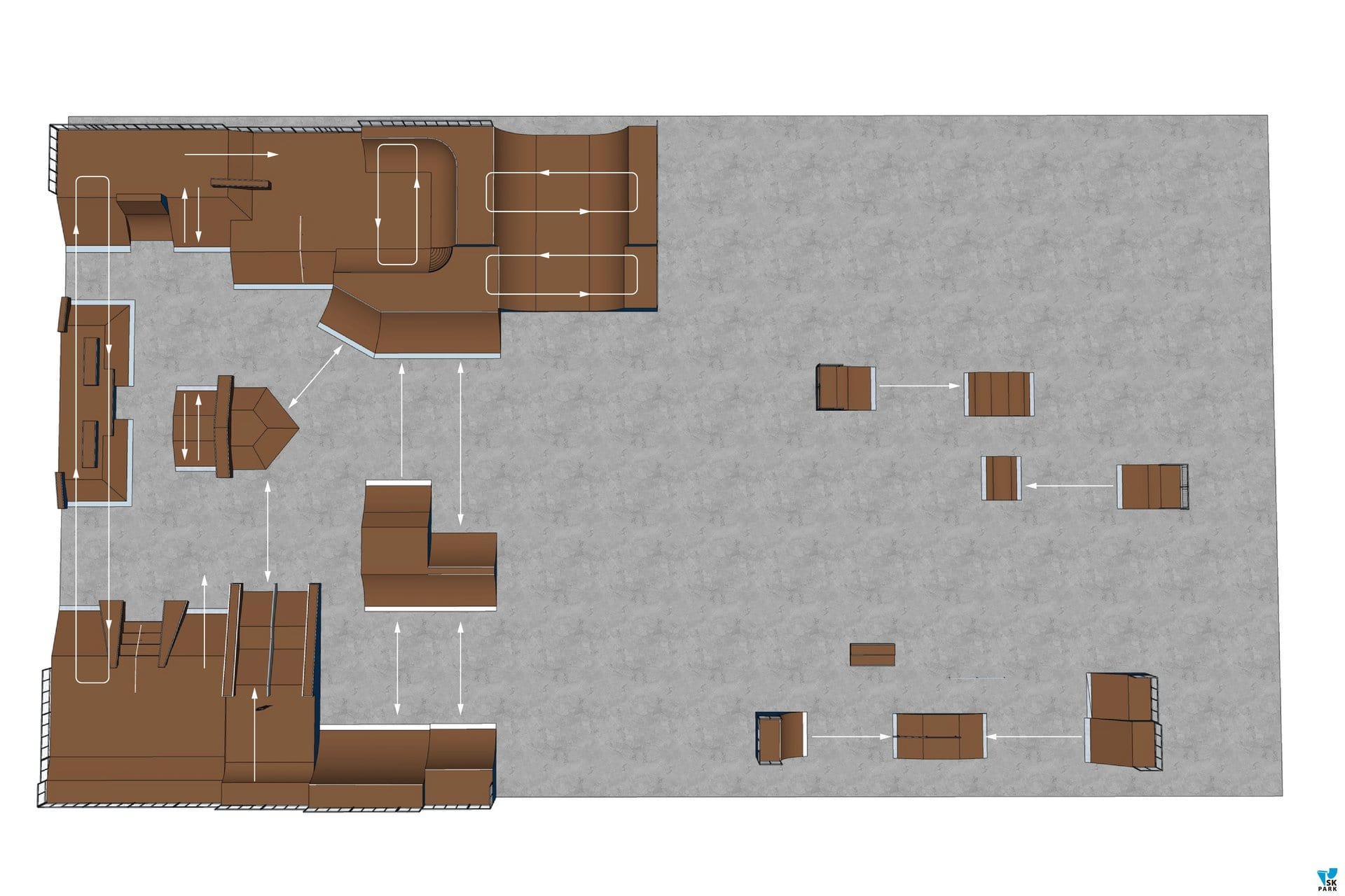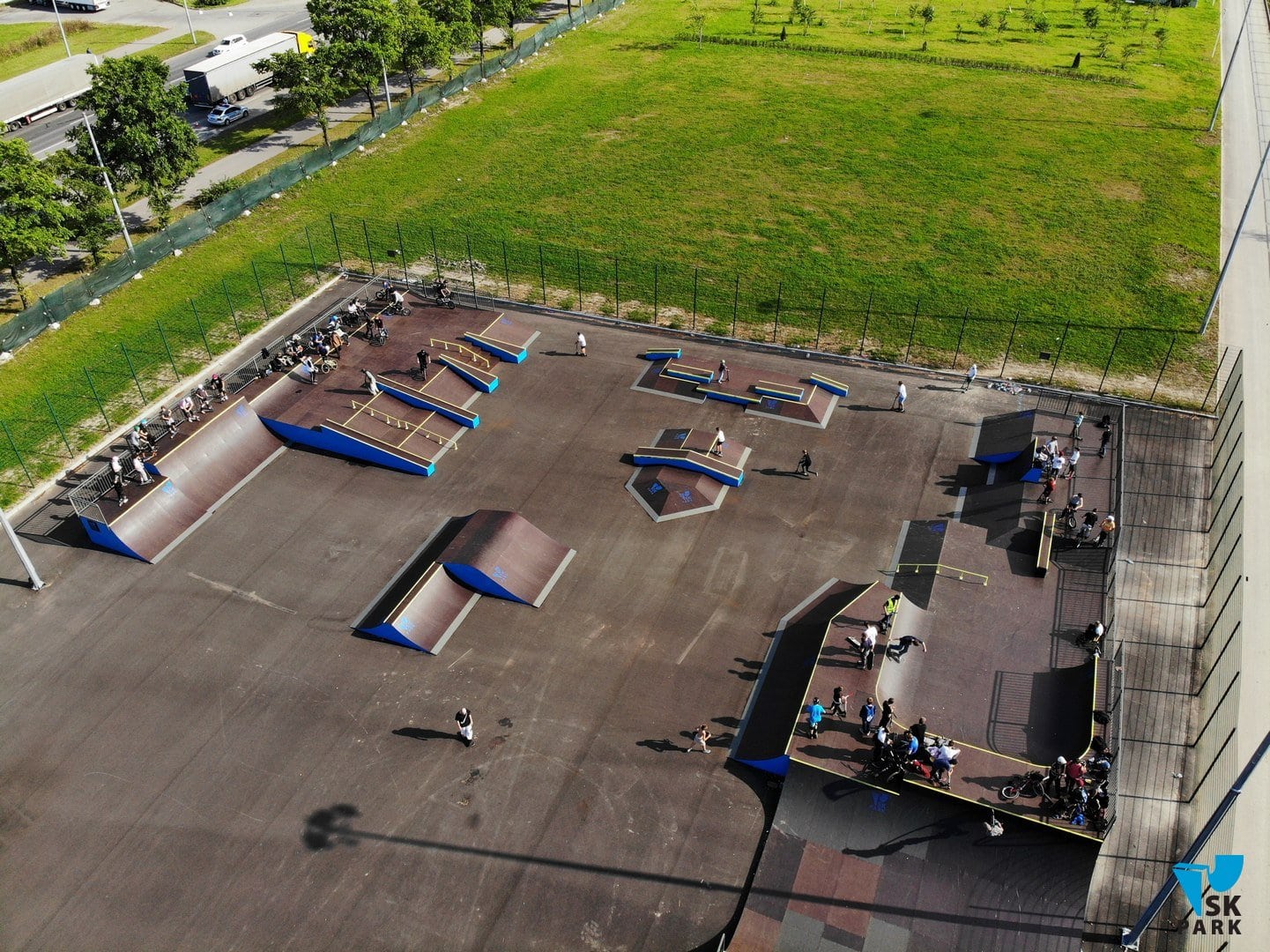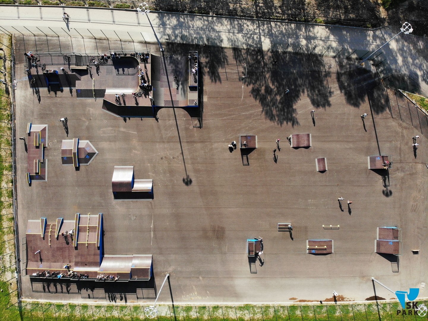 Скейт парк, расположенный на 2700 кв. м. создан для таких дисциплин как скейтбординг, ролики, кик скутер, BMX/MTB и вмещает до 60 одновременно катающихся райдеров, начального и среднего уровня, но предусмотрена зона и для тех, кто желает попробовать себя в экстремальном спорте впервые. Все оборудование соответствует мировым стандартам безопасности и создано для максимально комфортной эксплуатации. Основу большинства фигур скейт парка составляет деревянный каркас, обшитый финской ламинированной фанерой, на рабочую плоскость фигур нанесено рифление, по периметру всей площадки установлено металлическое ограждение.